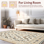 Ultra Soft Area Rug, Non Slip, Stain Resistant, Washable Area Rugs for Living Room, Bedroom, Beige Boho with Diamond(Beige) Overview: