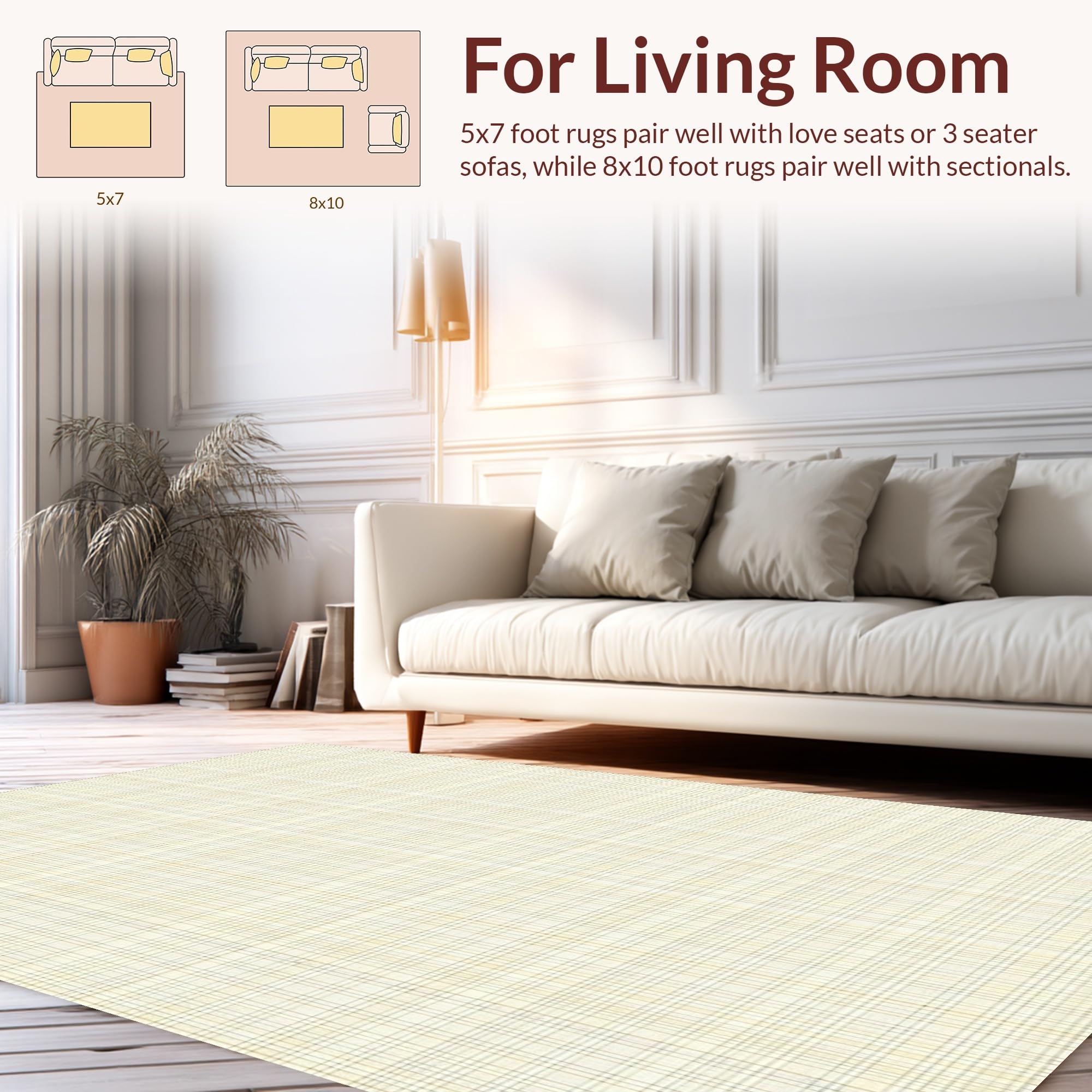 Ultra Soft Area Rug, Non Slip, Stain Resistant, Washable Area Rugs for Living Room, Bedroom, Beige Checkered Classic Geometric Squares For Interior Decor(Beige) Overview: