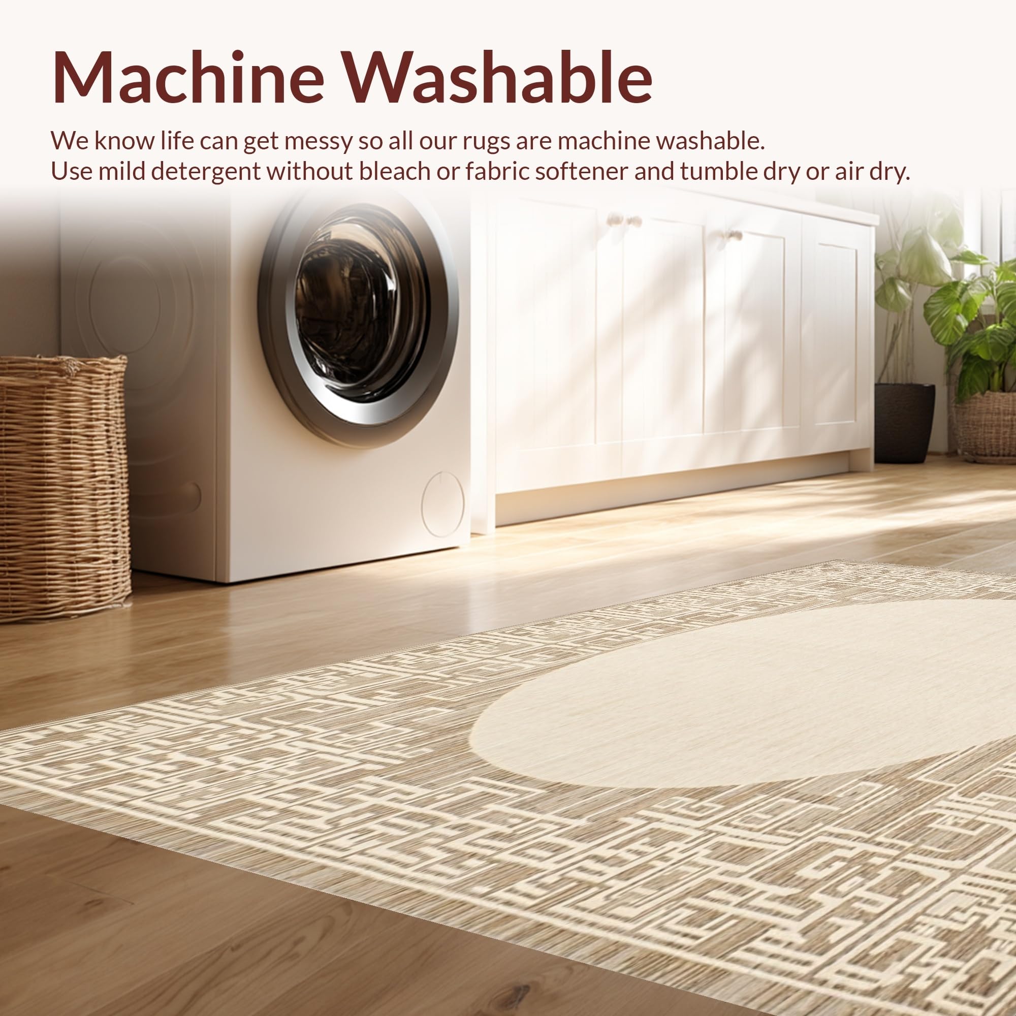 Ultra Soft Area Rug, Non Slip, Stain Resistant, Washable Area Rugs for Living Room, Bedroom, Beige Circle Hand Woven Design(Beige) Overview: