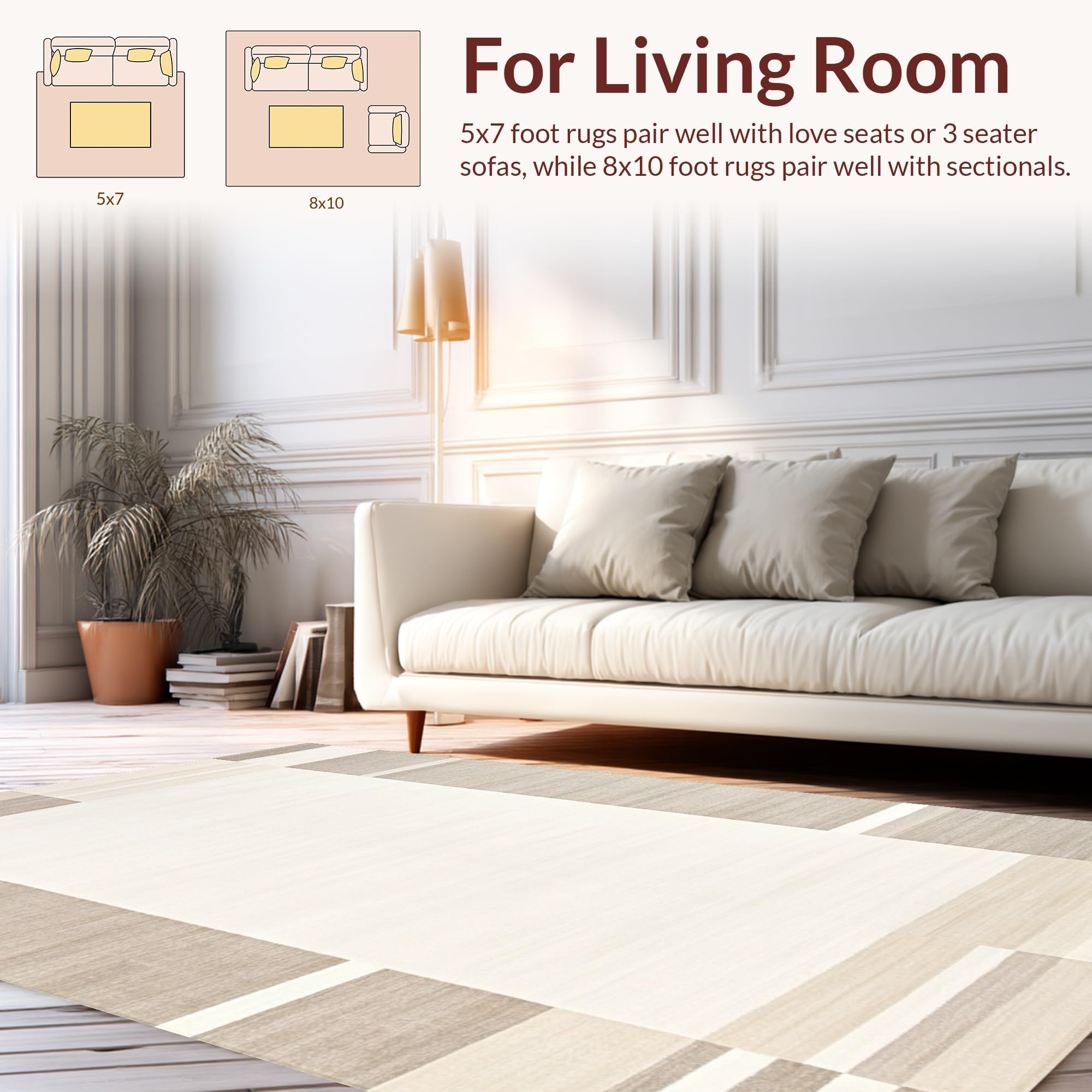 Ultra Soft Area Rug, Non Slip, Stain Resistant, Washable Area Rugs for Living Room, Bedroom, Beige & Cream Area Modern Minimalist Design(Beige) Overview: