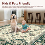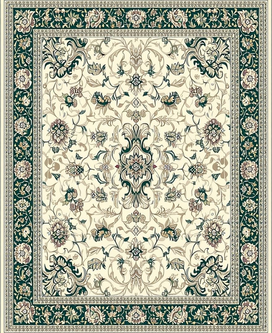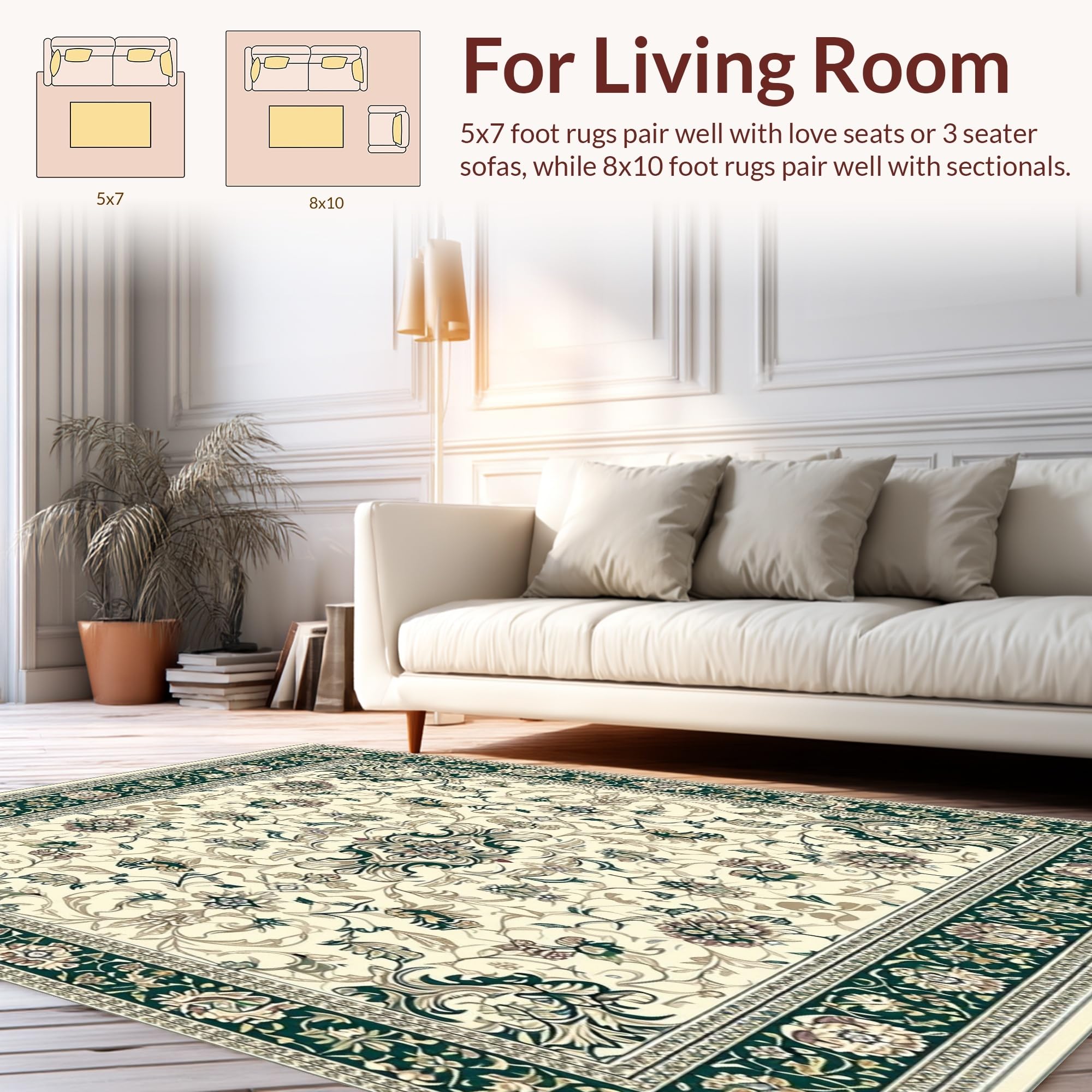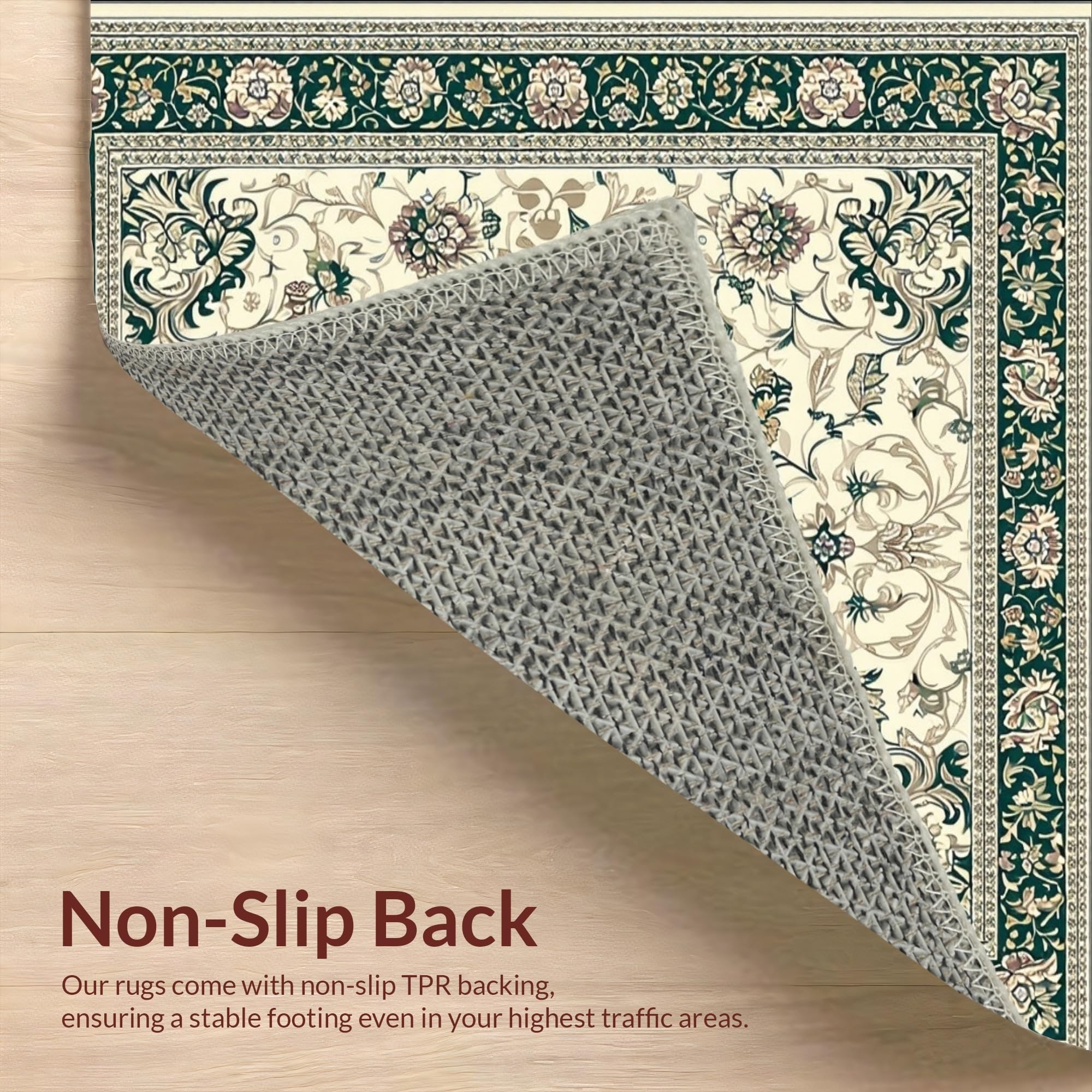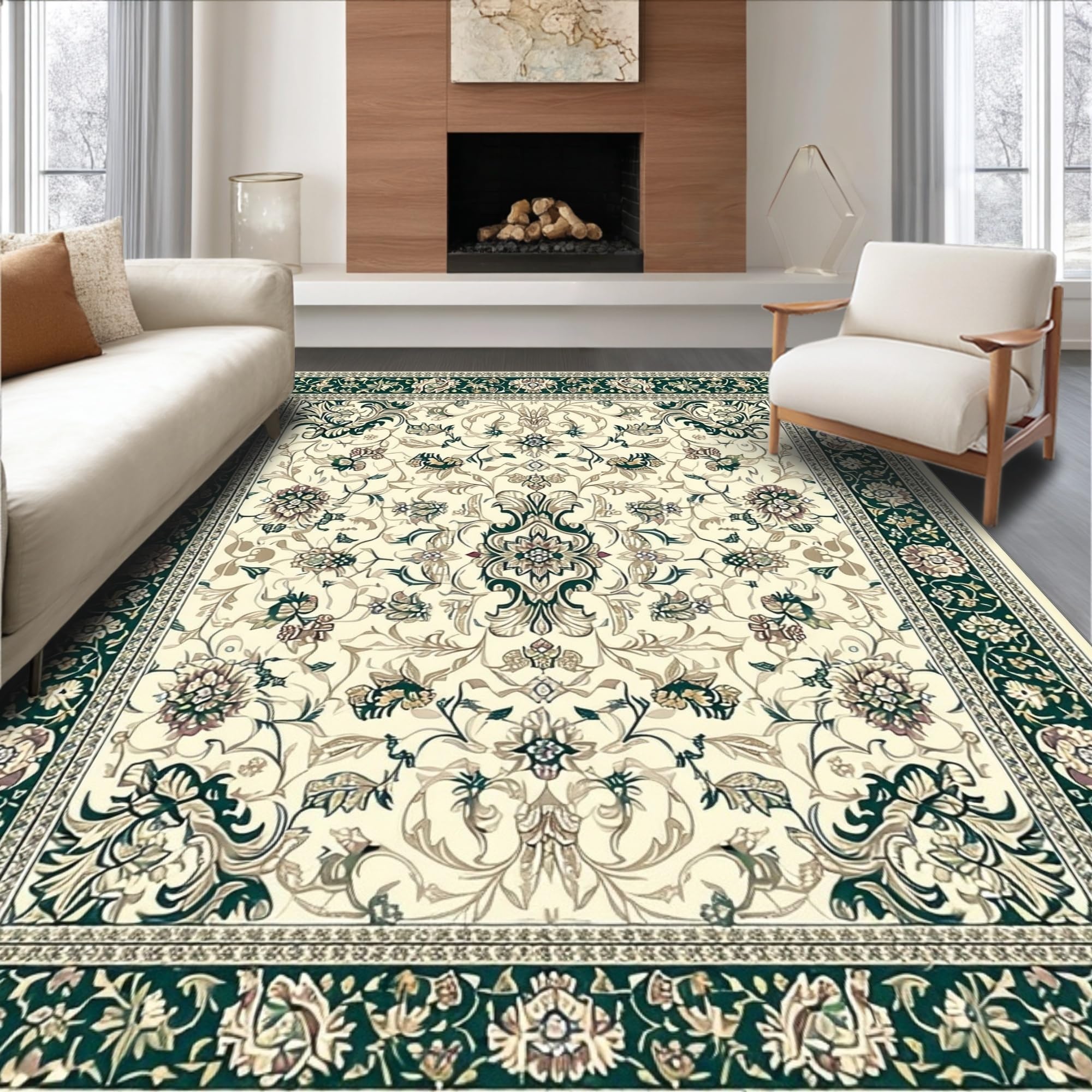 Ultra Soft Area Rug, Non Slip, Stain Resistant, Washable Area Rugs for Living Room, Bedroom, Beige Faux Rabbit Fur Area Ornate Intricate Motifs with Deep Green Accents(Beige) Overview: