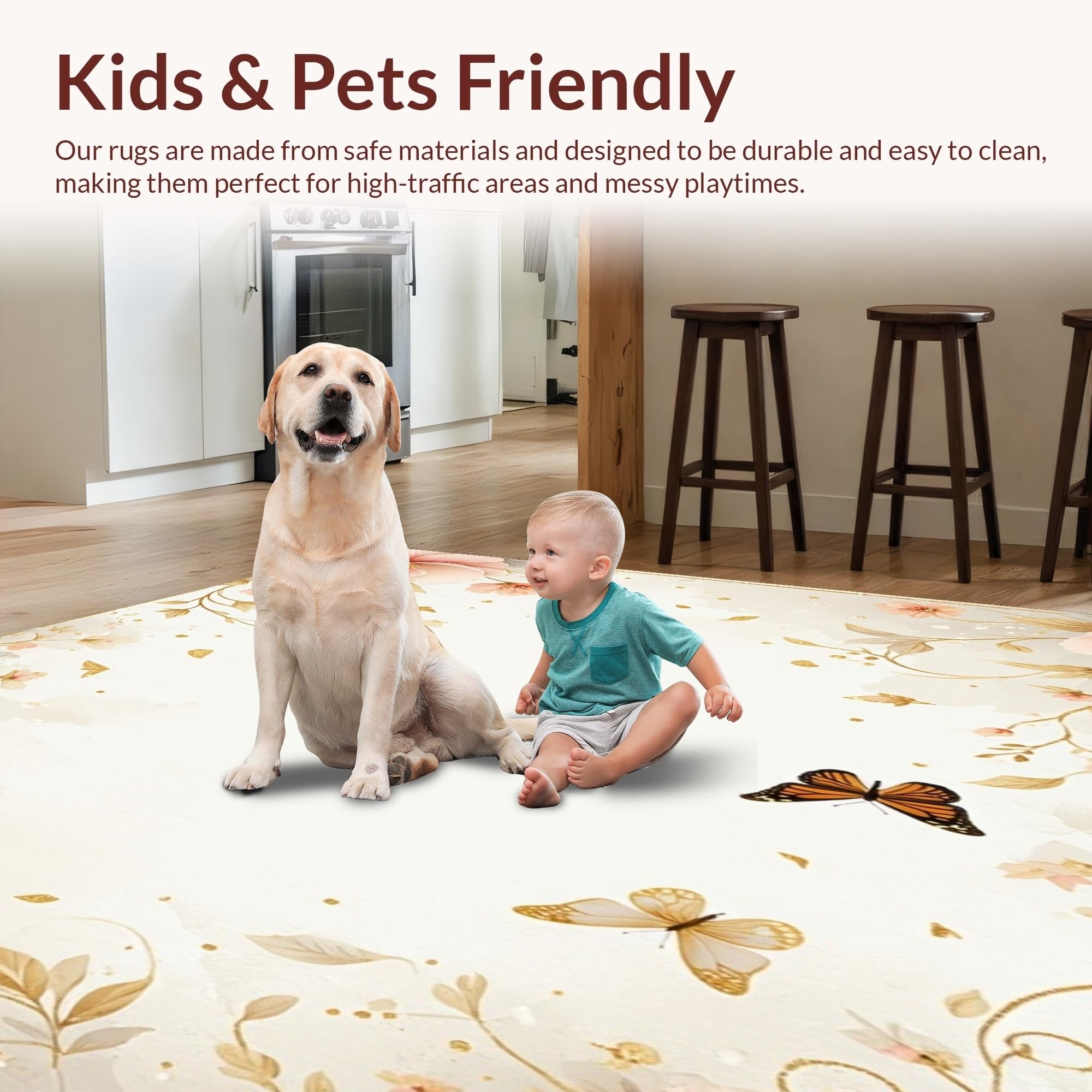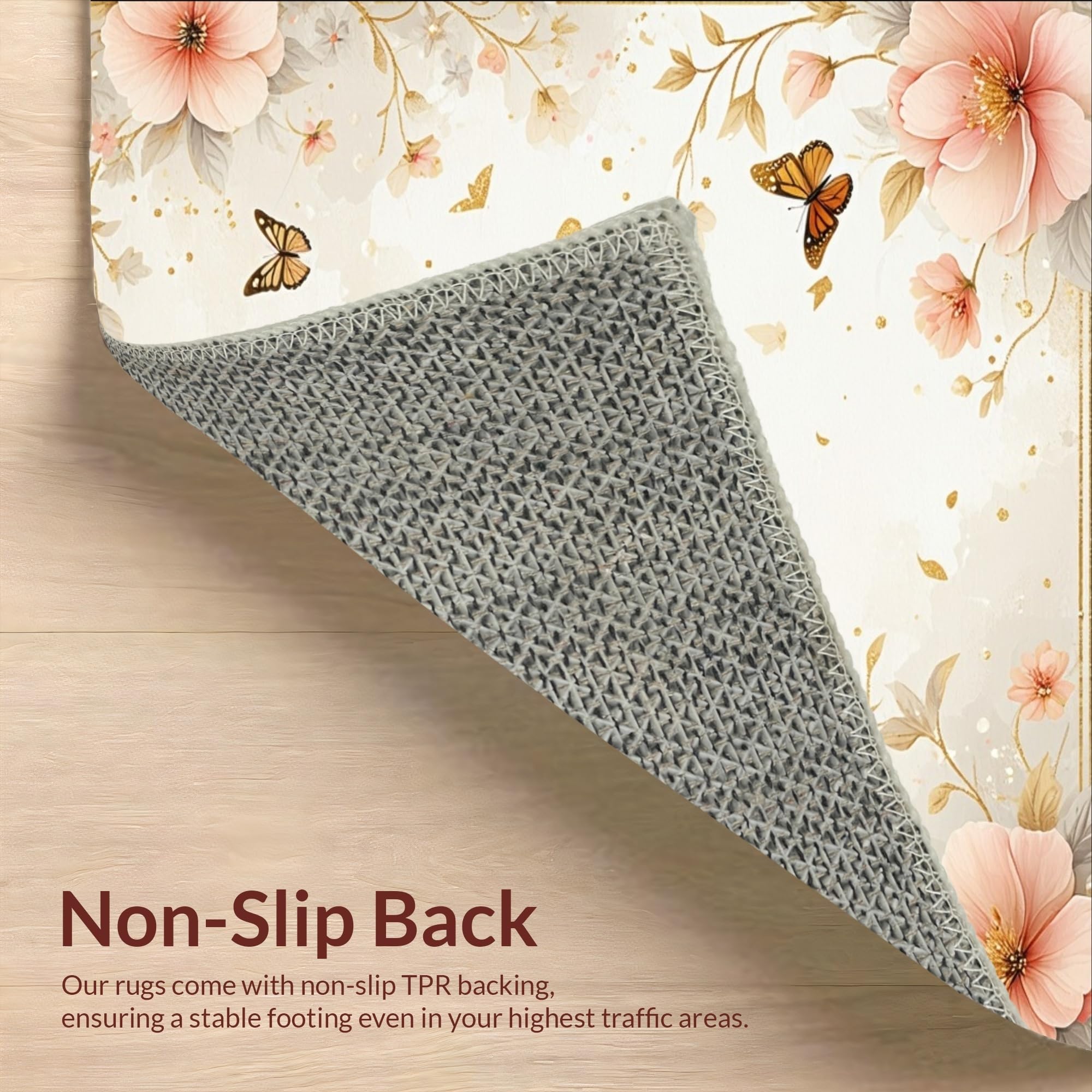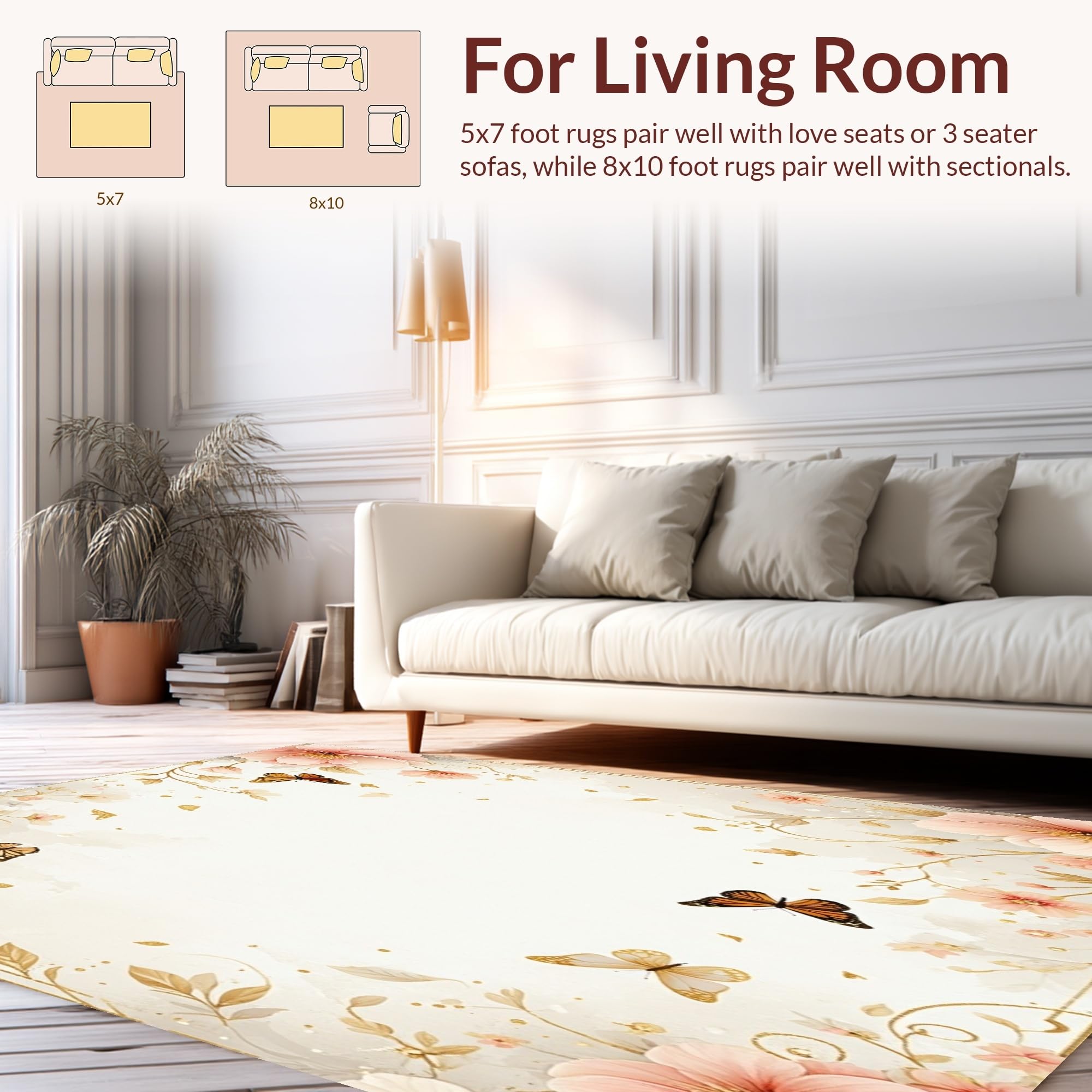 Ultra Soft Area Rug, Non Slip, Stain Resistant, Washable Area Rugs for Living Room, Bedroom, Beige Floral Bloom Area Elegant Butterfly Motif Floor(Beige) Overview:
