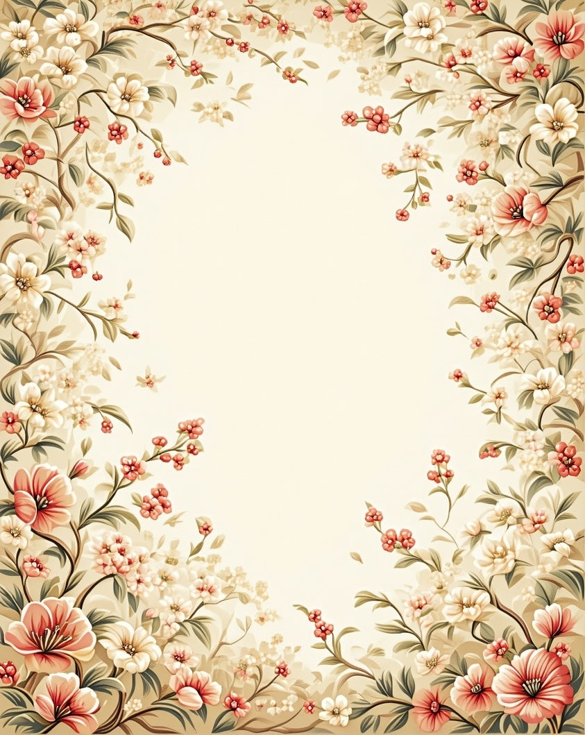 Beige Floral Low Pile Spring Bloom Design(Beige)