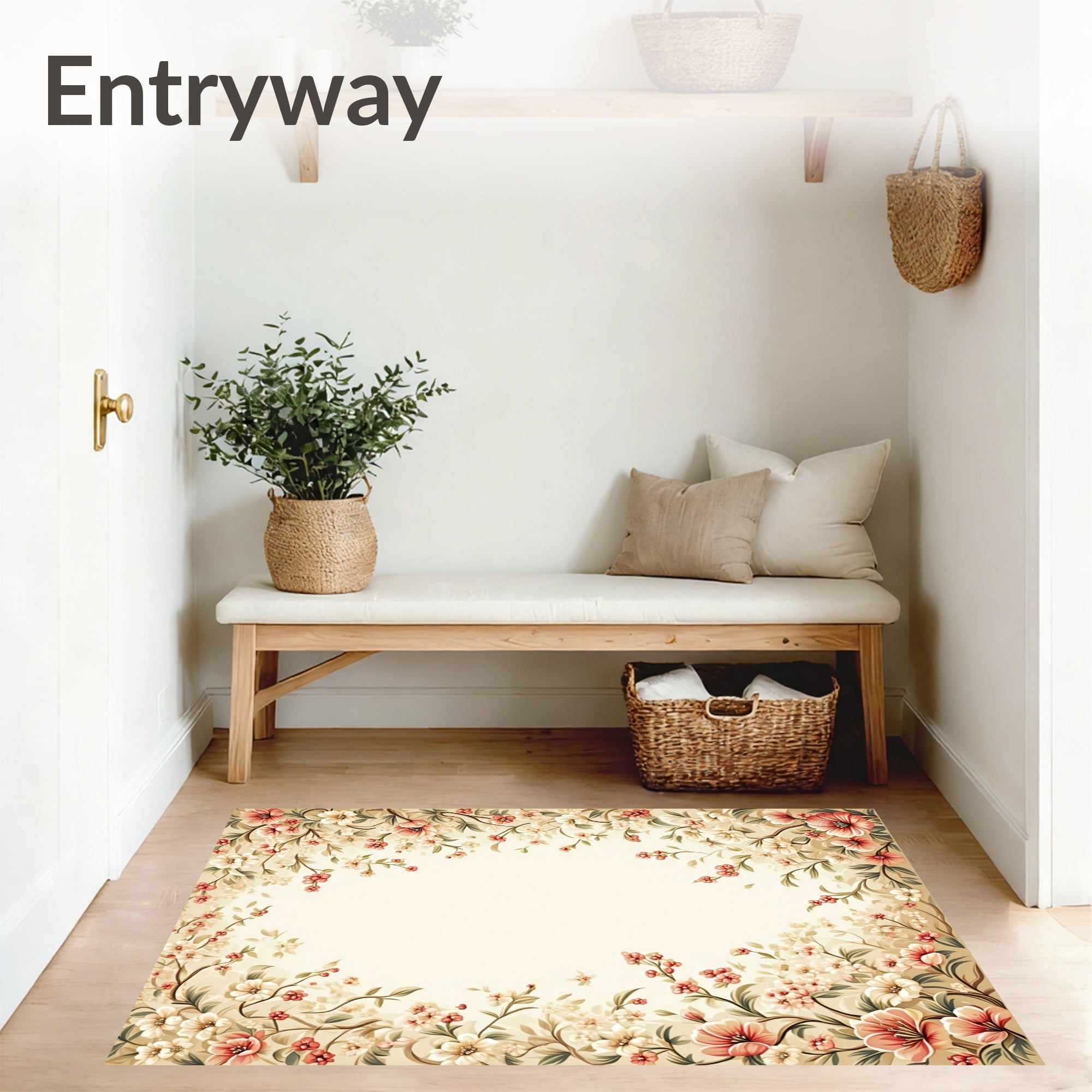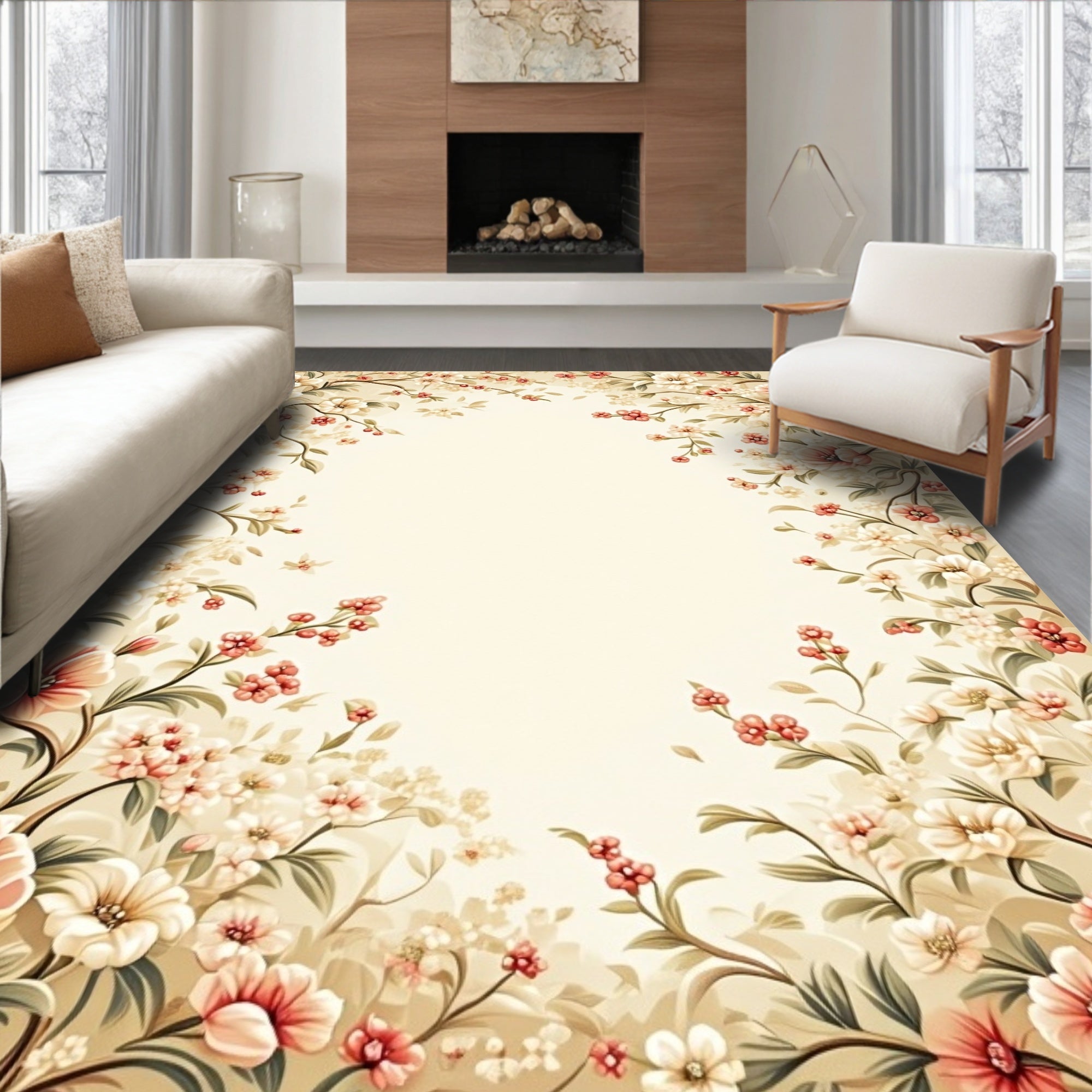 Flatwoven High Traffic Area Rug, Beige Floral Low Pile Spring Bloom Design, Non Slip, Stain Resistant, Washable Area Rugs for Living Room, Bedroom (Beige) Overview: