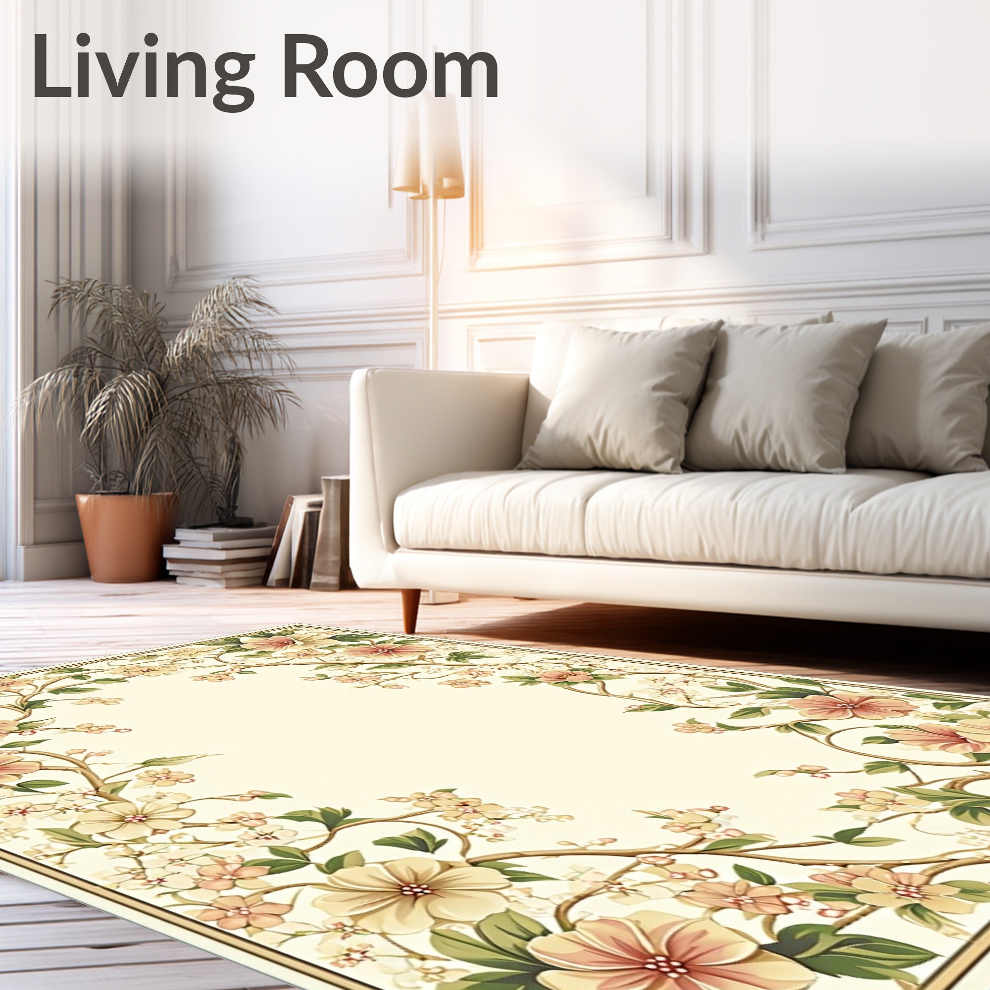 Flatwoven High Traffic Area Rug, Beige Garden, Non Slip, Stain Resistant, Washable Area Rugs for Living Room, Bedroom (Beige) Overview: