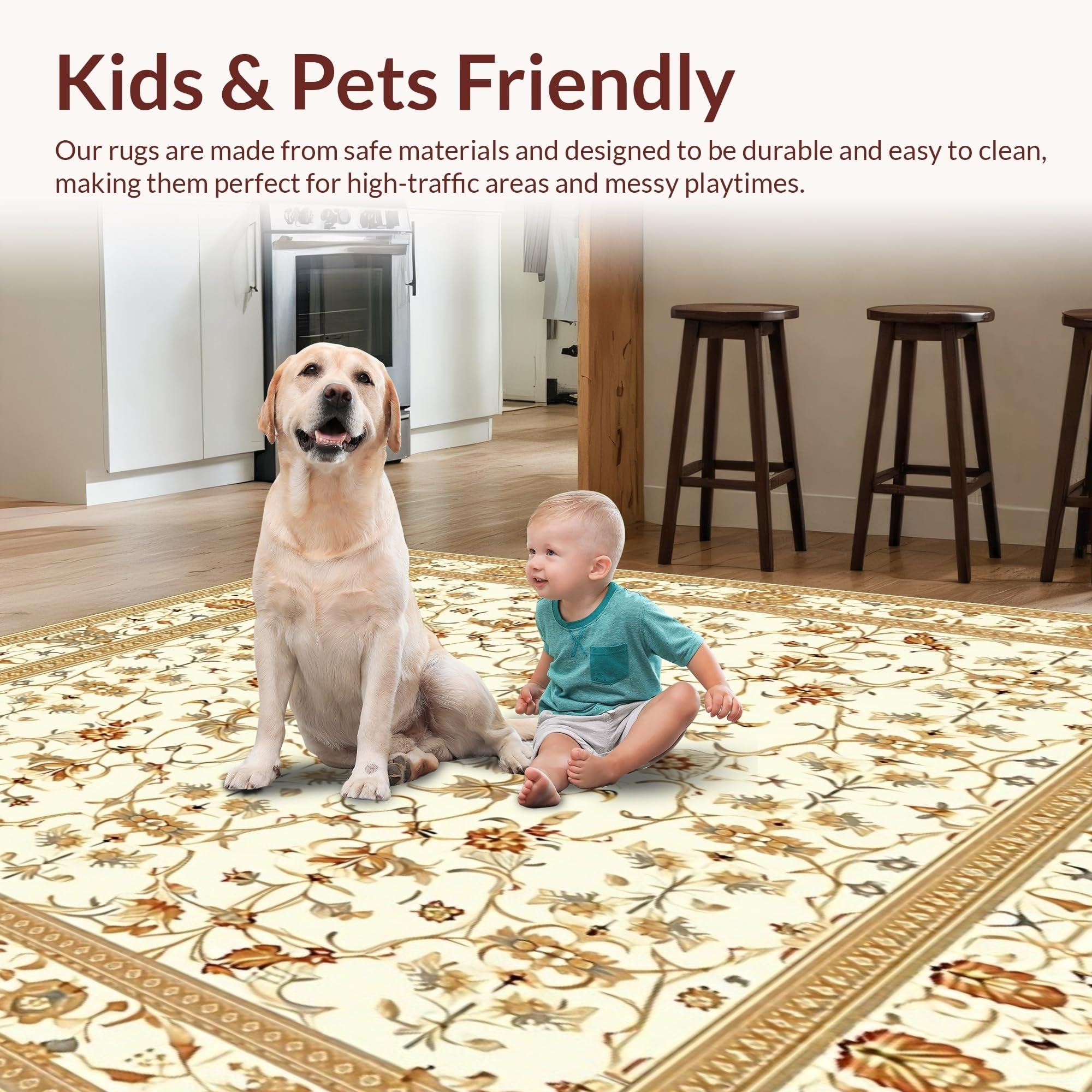 Ultra Soft Area Rug, Non Slip, Stain Resistant, Washable Area Rugs for Living Room, Bedroom, Beige Geometric Modern Boho Artistry(Ivory) Overview:
