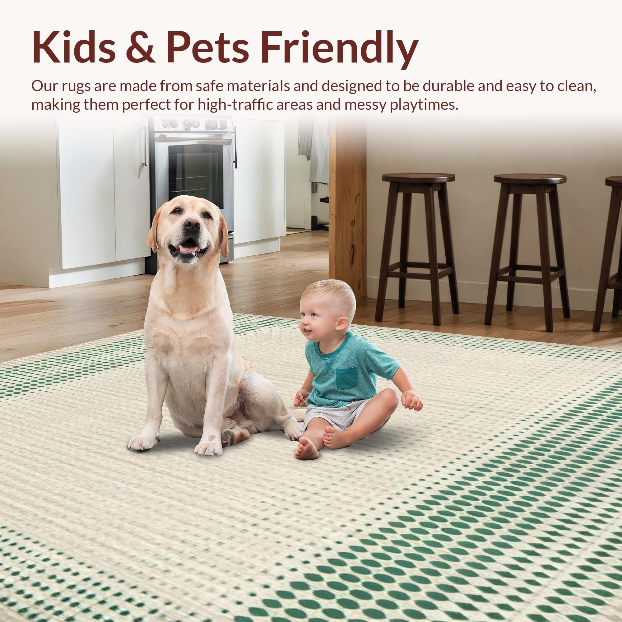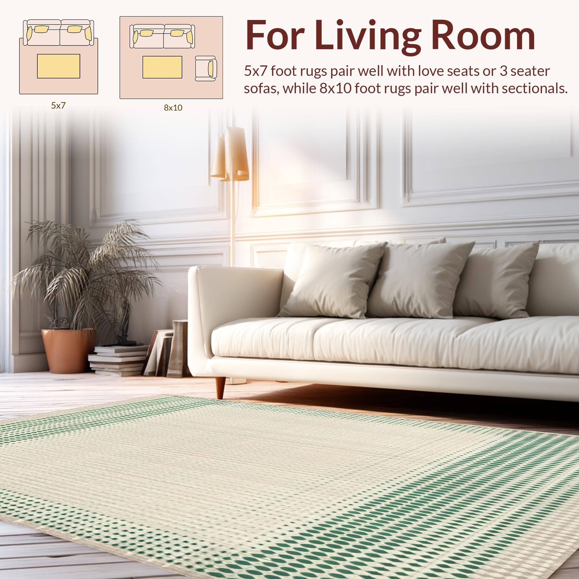 Ultra Soft Area Rug, Non Slip, Stain Resistant, Washable Area Rugs for Living Room, Bedroom, Beige & Green Geo Patio(Beige) Overview: