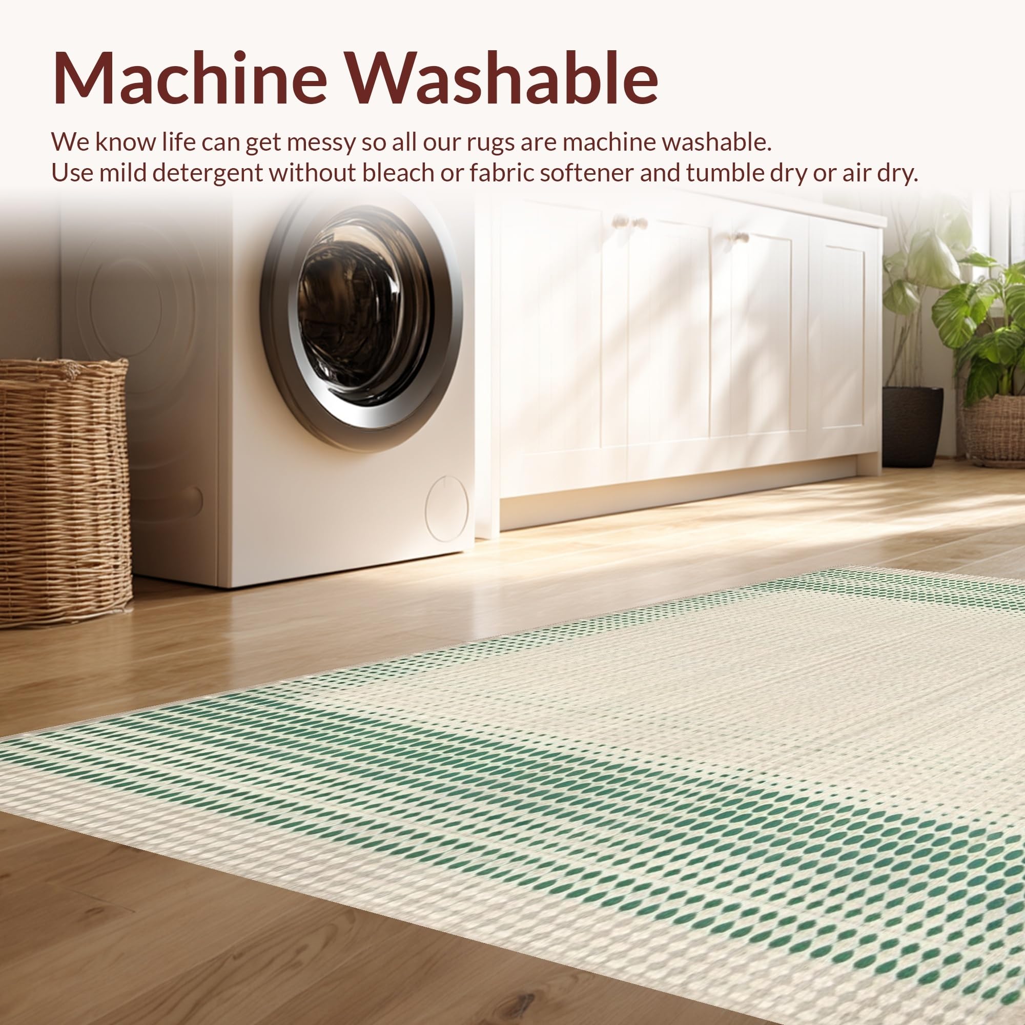 - Machine Washable: Our rugs can be easily thrown in the wash machine.
