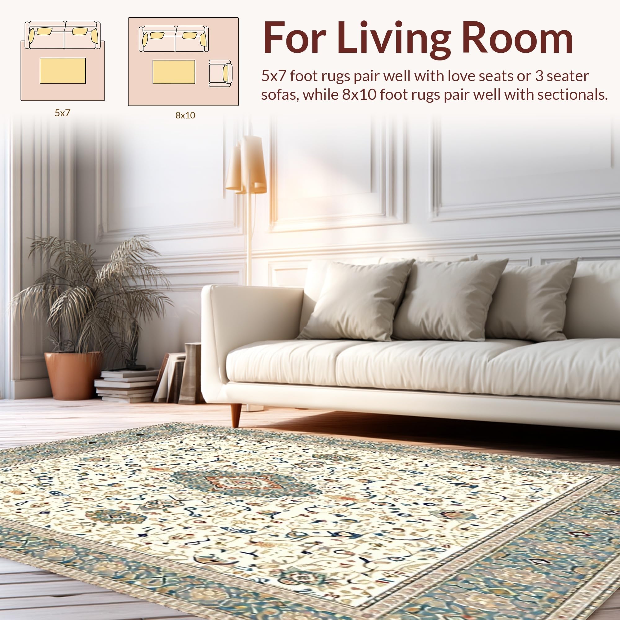 Ultra Soft Area Rug, Non Slip, Stain Resistant, Washable Area Rugs for Living Room, Bedroom, Beige Medallion Area Circular Ivory Patterned(Beige) Overview: