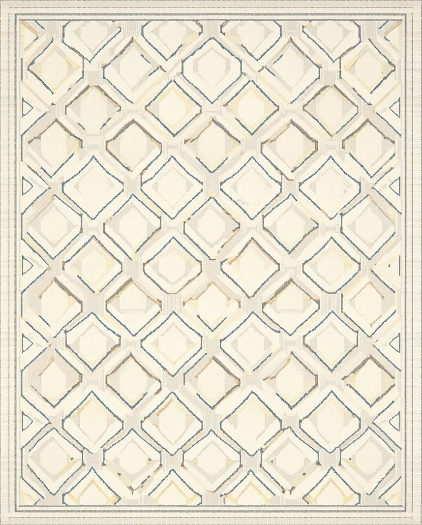 Ultra Soft Area Rug, Non Slip, Stain Resistant, Washable Area Rugs for Living Room, Bedroom, Beige Neutral Trellis Featuring Layered Low Profile Diamond Motifs(Beige) Overview: