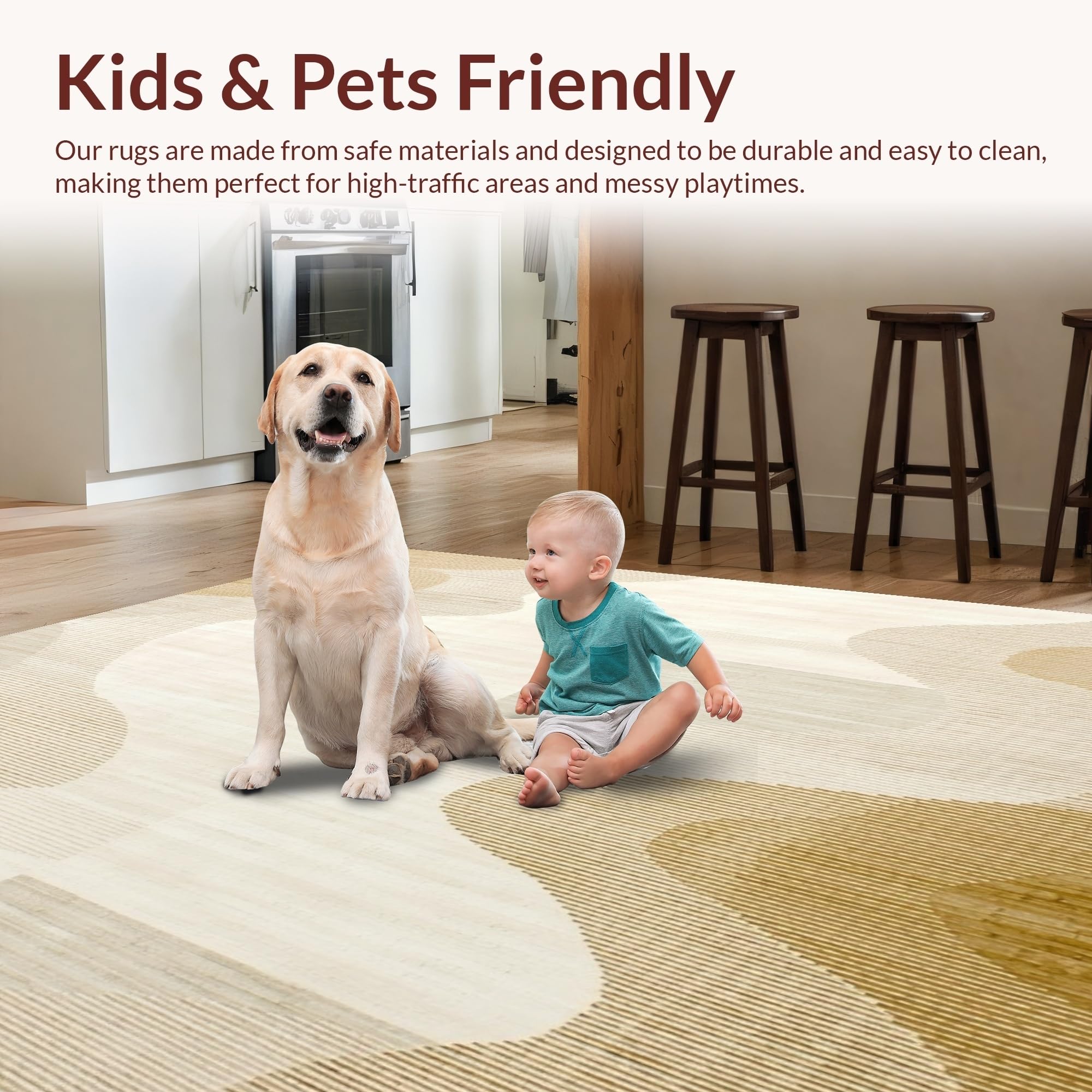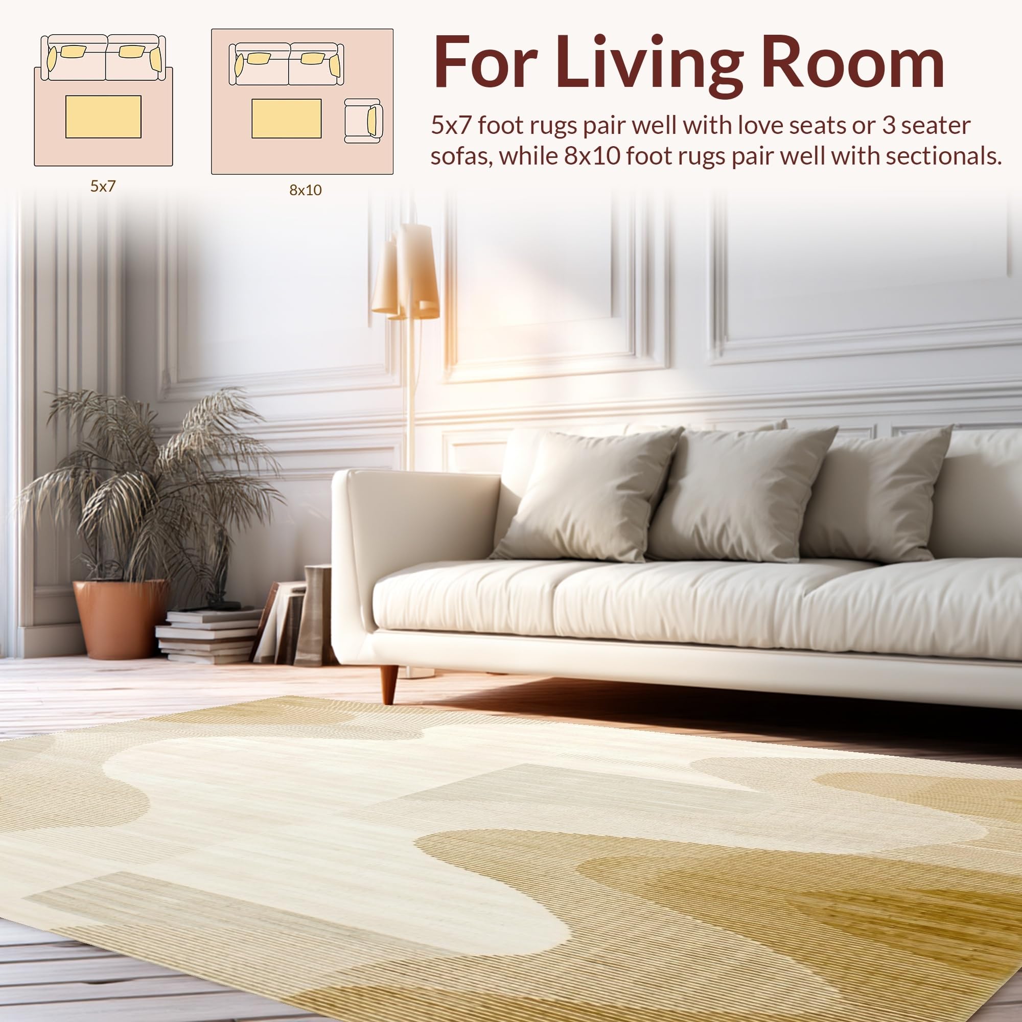 Ultra Soft Area Rug, Non Slip, Stain Resistant, Washable Area Rugs for Living Room, Bedroom, Beige Ombre Wavy Edge Area Modern Non Slip(Beige) Overview: