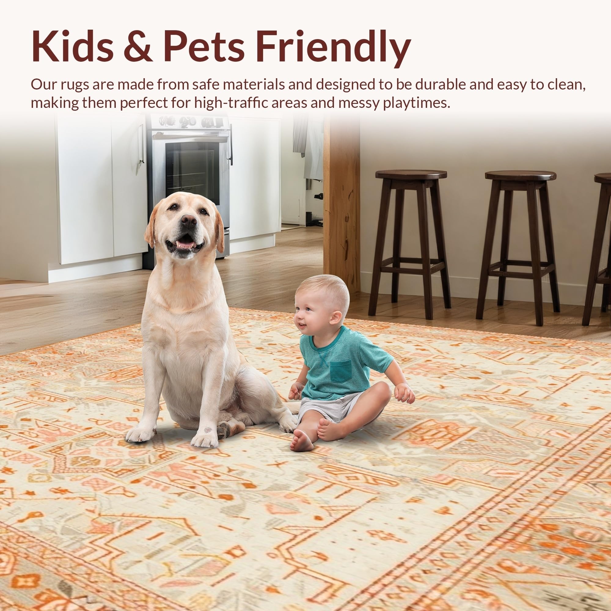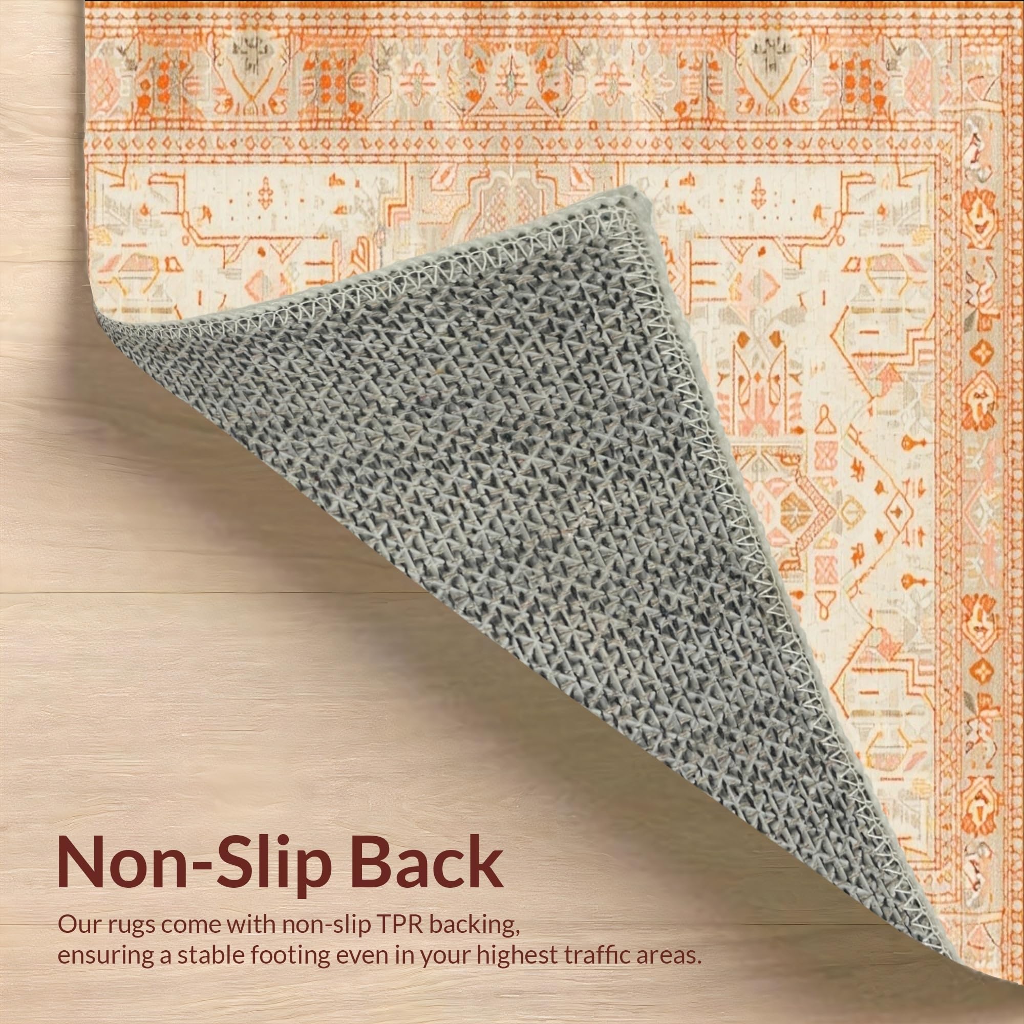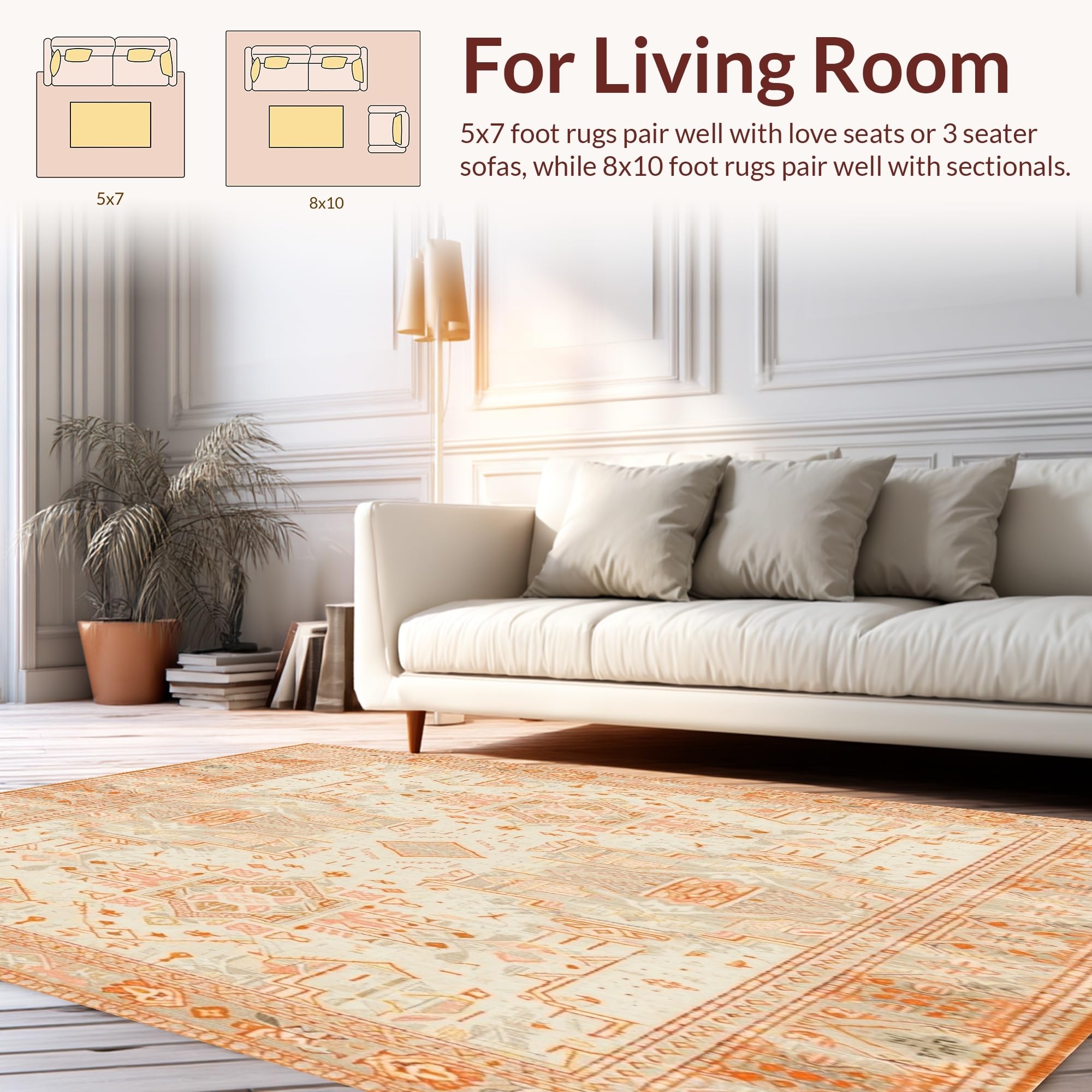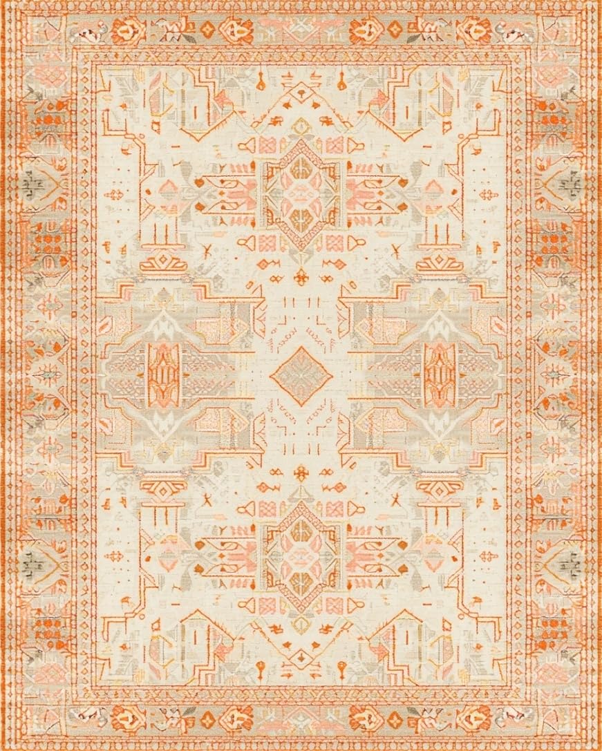 Ultra Soft Area Rug, Non Slip, Stain Resistant, Washable Area Rugs for Living Room, Bedroom, Beige Orange Non Slip Runner with Boho(Ivory) Overview: