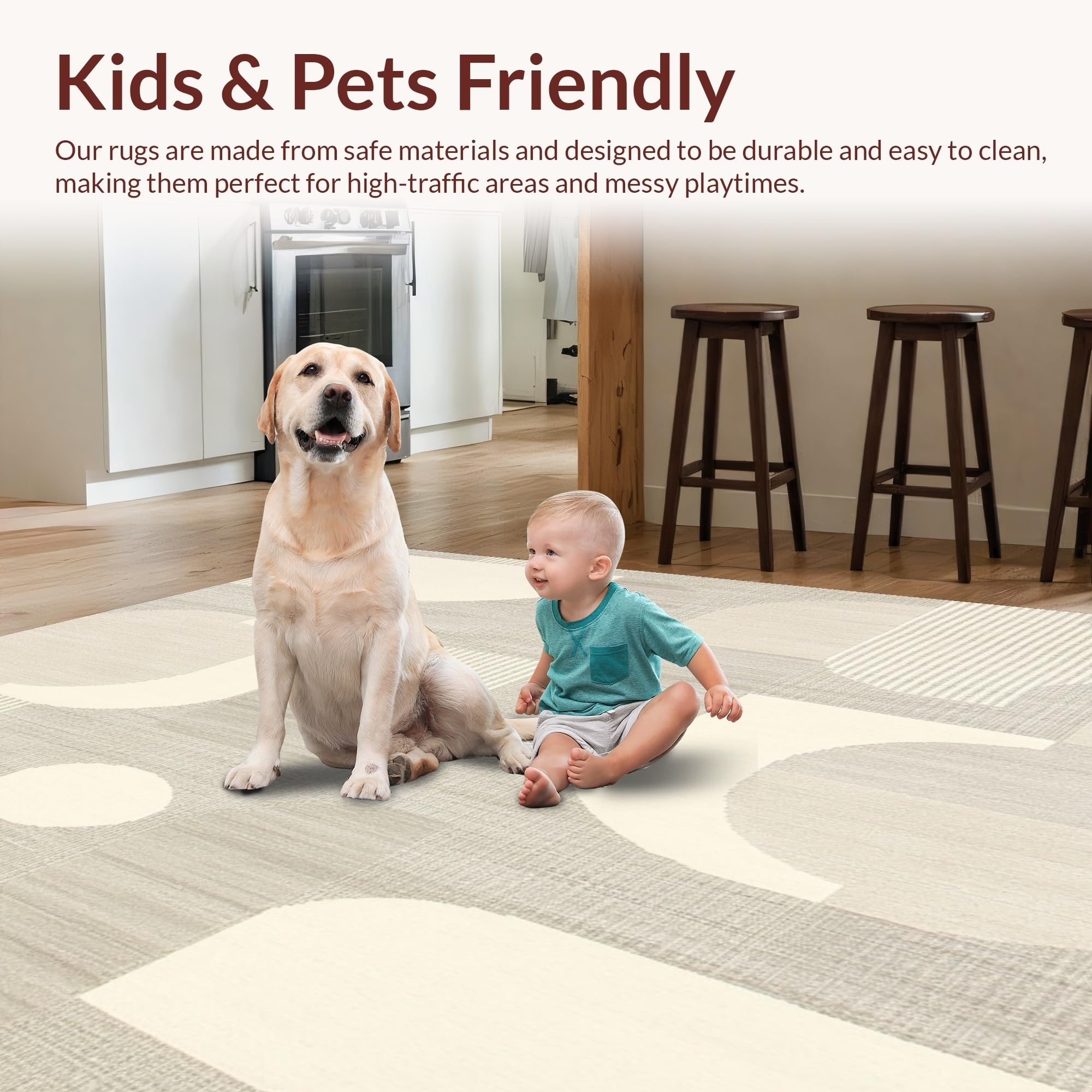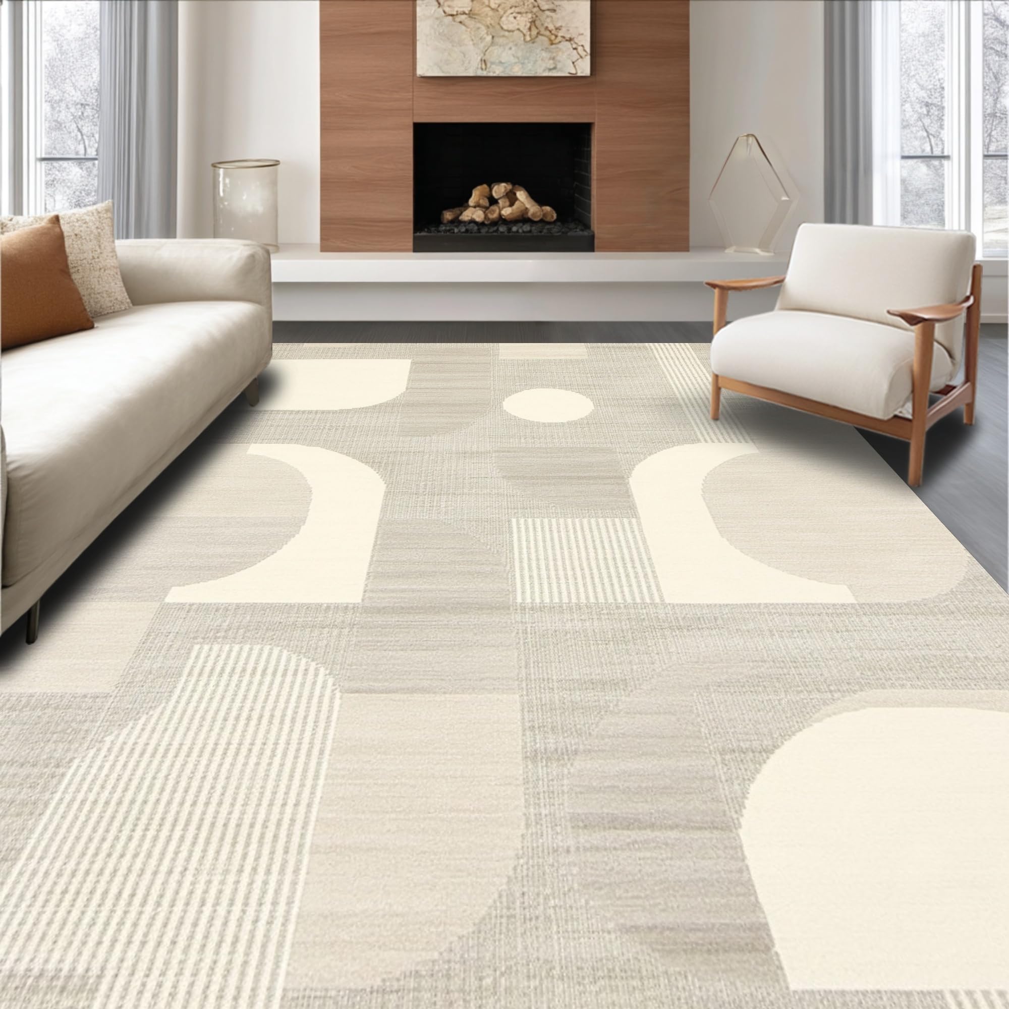 Ultra Soft Area Rug, Non Slip, Stain Resistant, Washable Area Rugs for Living Room, Bedroom, Beige Serenity Area Modern Curved Lines & Natural Aesthetic(Beige) Overview: