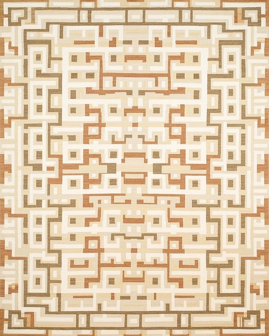Beige & Tan Geometric Area Modern Neutral Hallway(Beige)