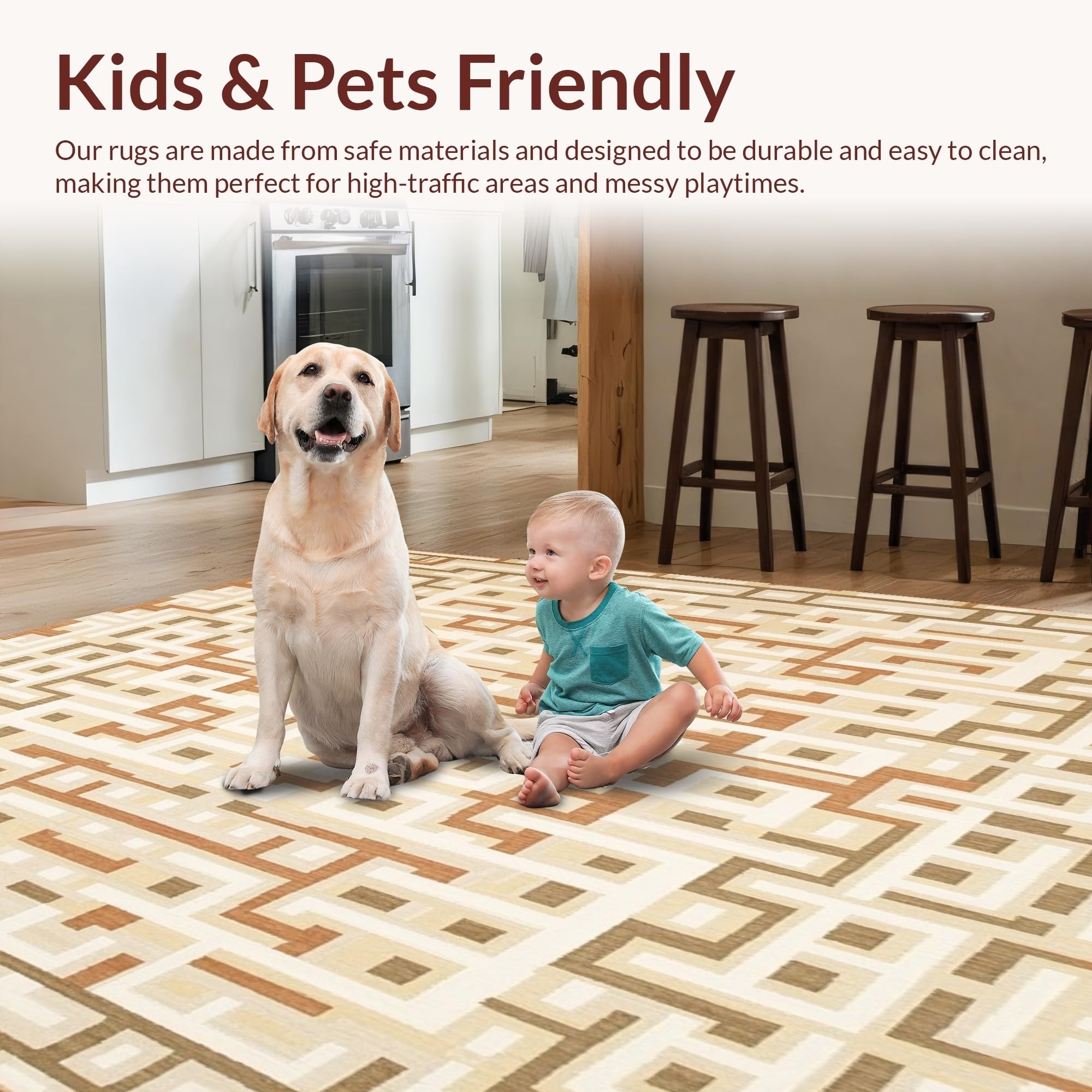 Ultra Soft Area Rug, Non Slip, Stain Resistant, Washable Area Rugs for Living Room, Bedroom, Beige & Tan Geometric Area Modern Neutral Hallway(Beige) Overview: