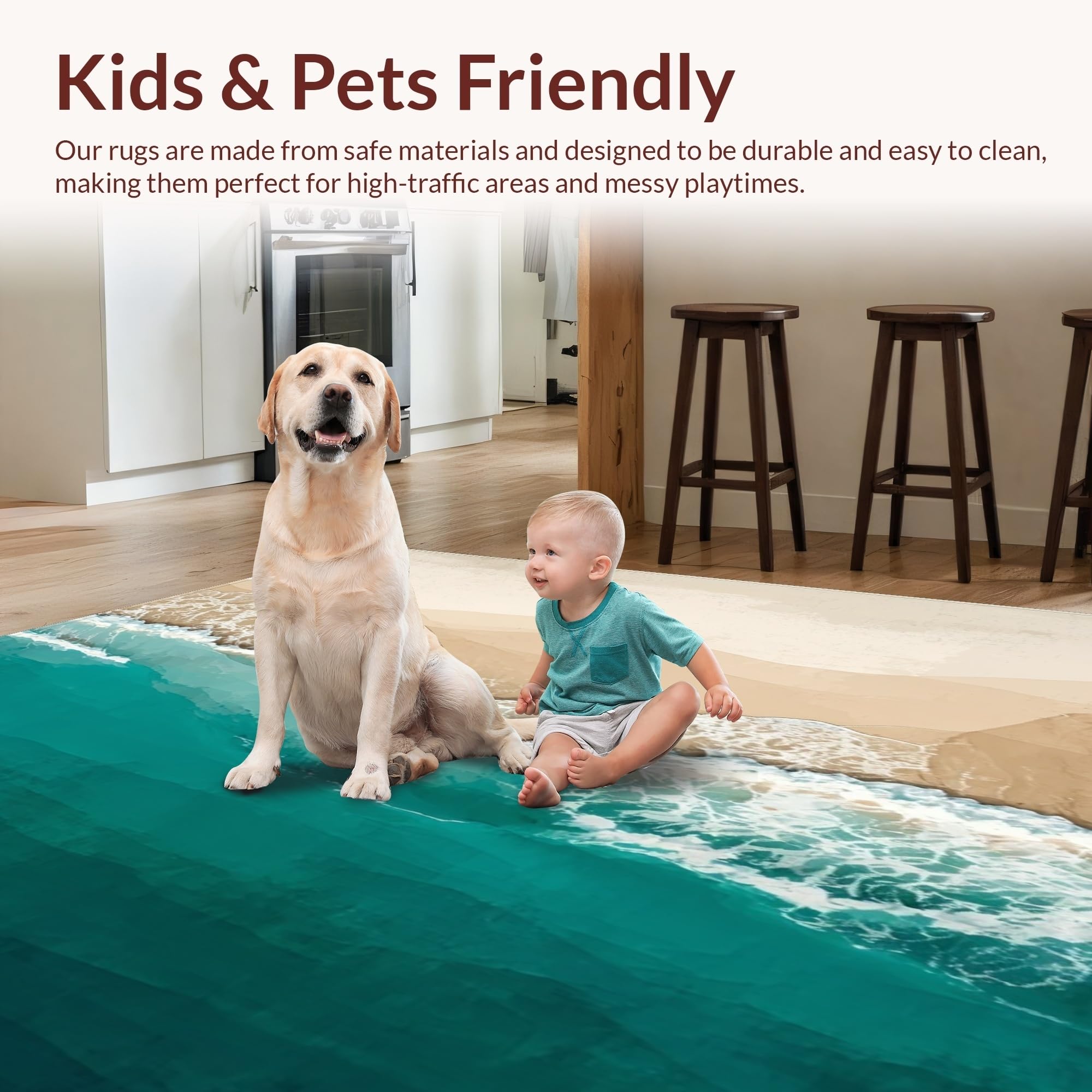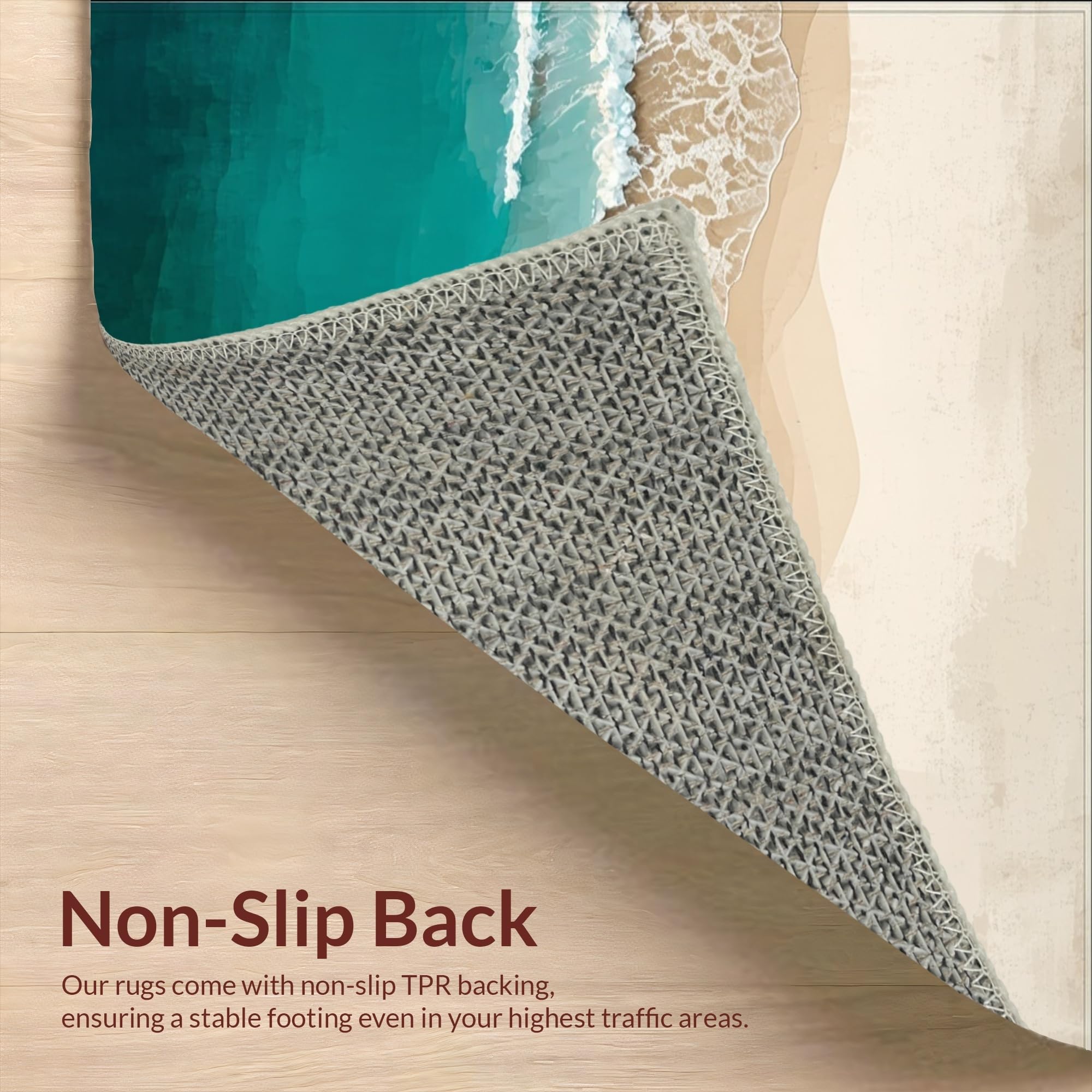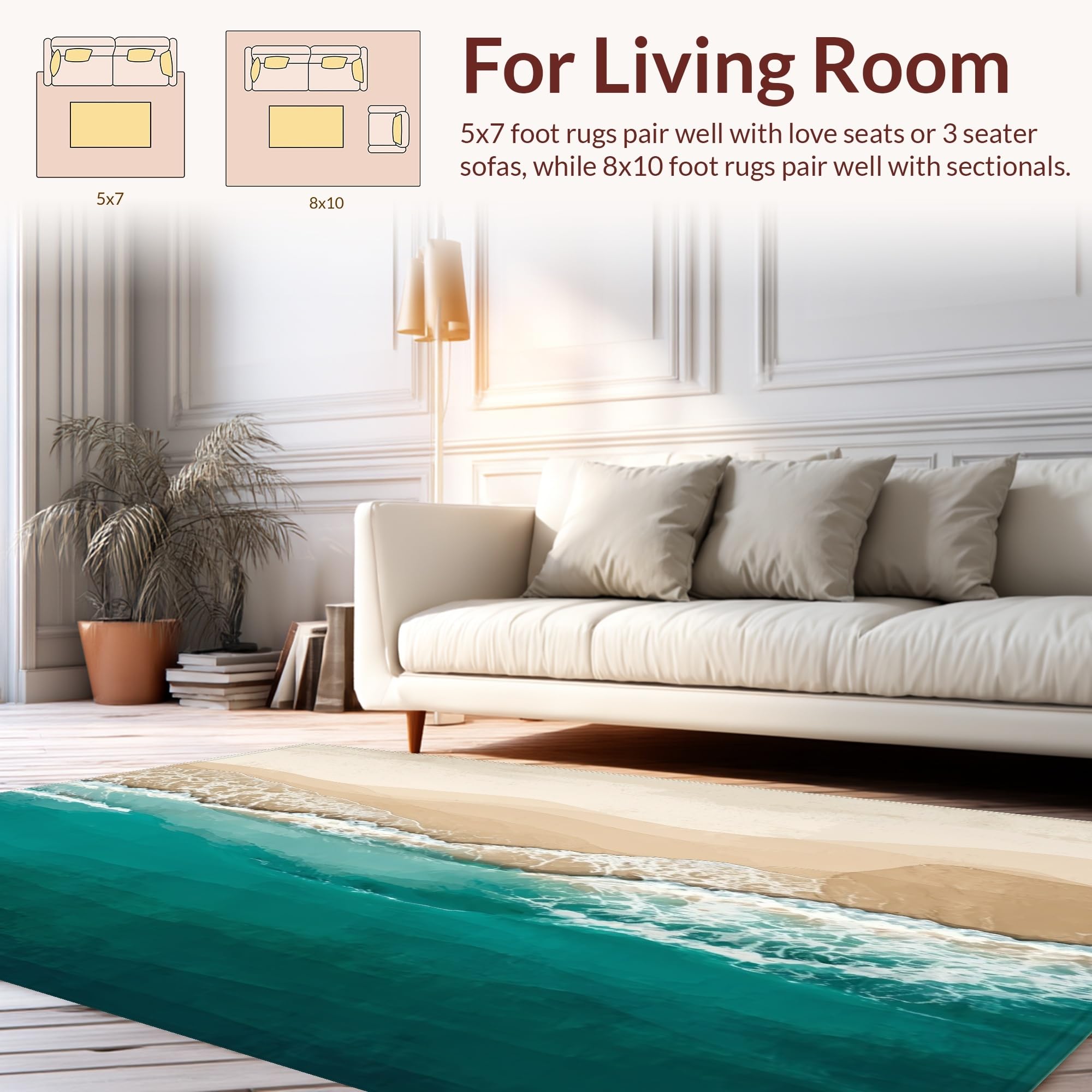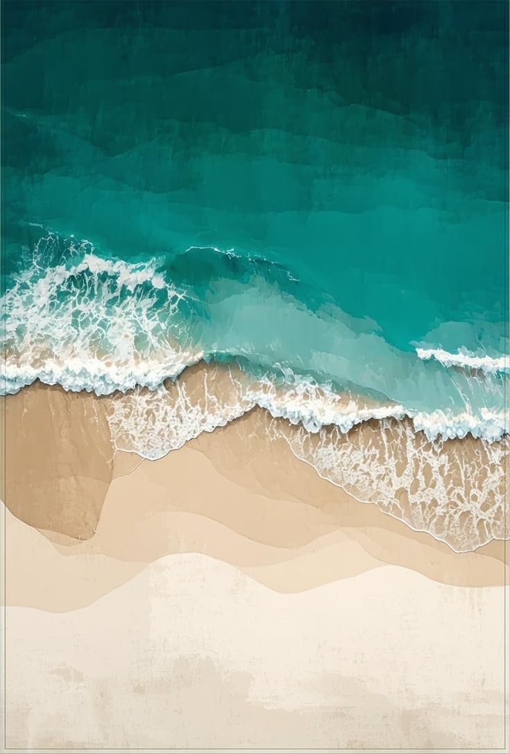 Ultra Soft Area Rug, Non Slip, Stain Resistant, Washable Area Rugs for Living Room, Bedroom, Beige Teal Ocean Scenery Coastal Beach Theme Indoor Floor(Blue) Overview: