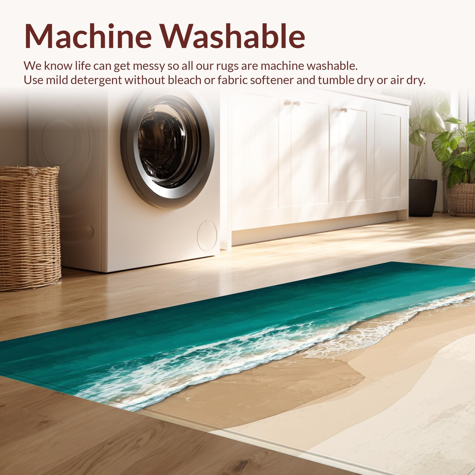 - Machine Washable: Our rugs can be easily thrown in the wash machine.