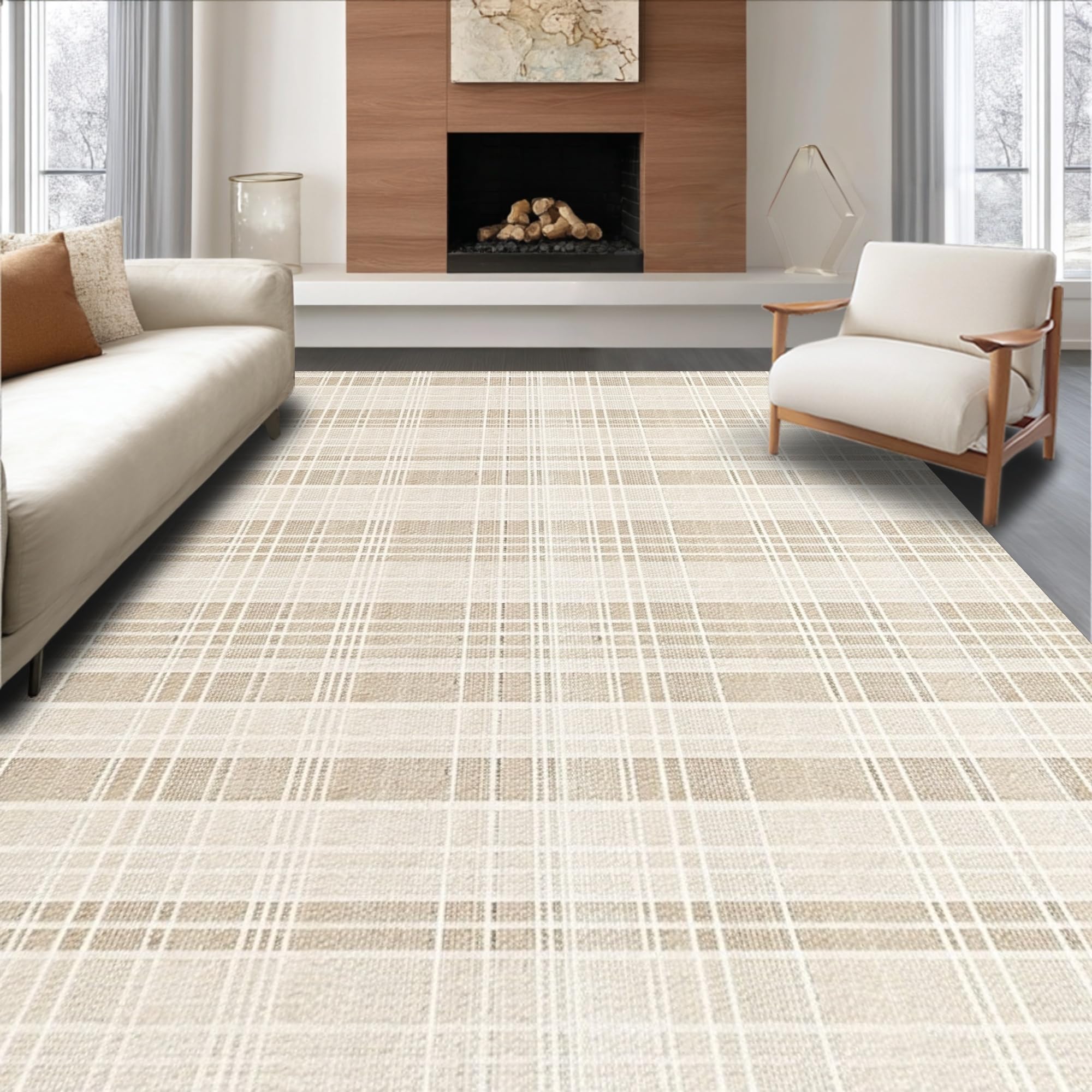 Ultra Soft Area Rug, Non Slip, Stain Resistant, Washable Area Rugs for Living Room, Bedroom, Beige Textured Chevron(Beige) Overview: