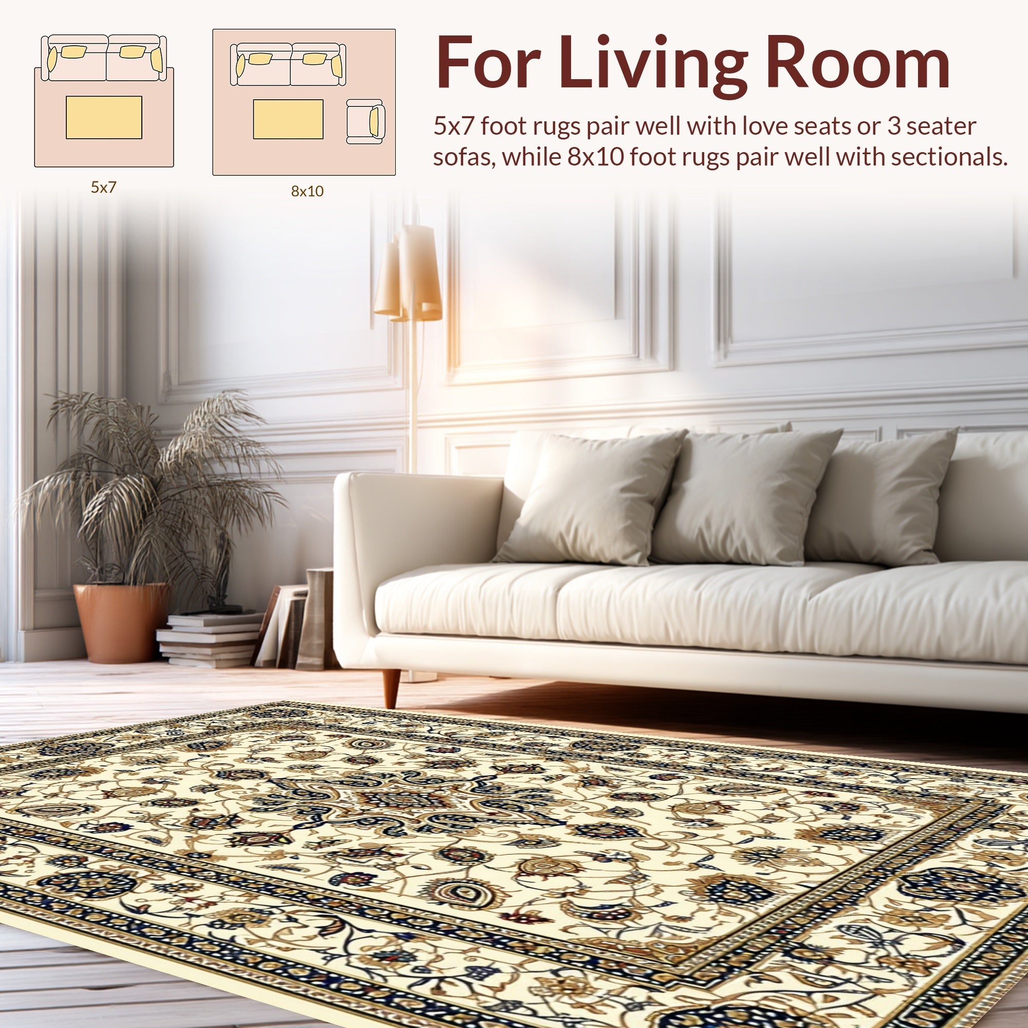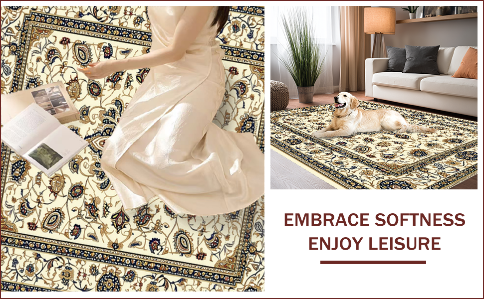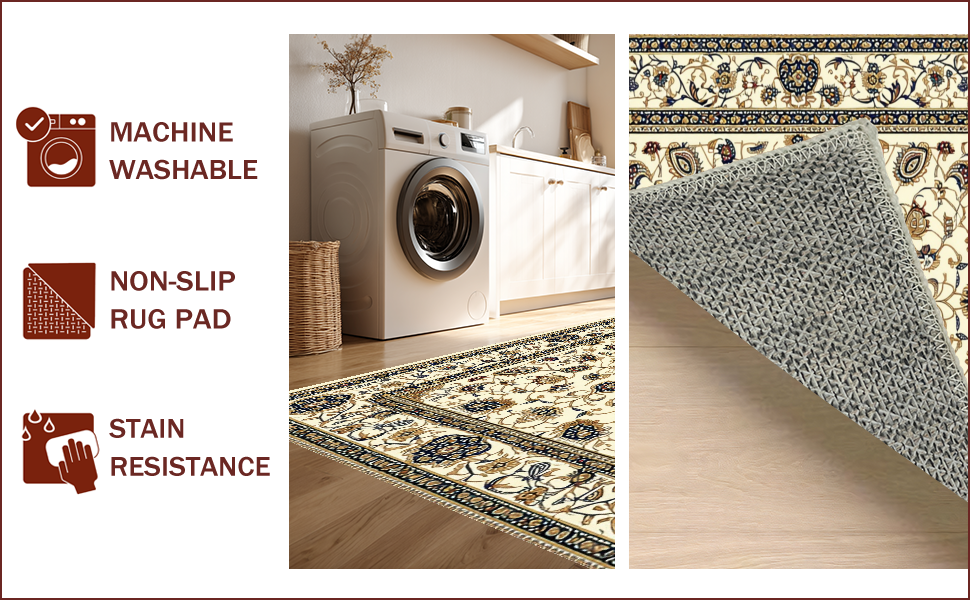 Ultra Soft Area Rug, Non Slip, Stain Resistant, Washable Area Rugs for Living Room, Bedroom, Beige Traditional Non-Slip Living Room Rug(Beige) Overview: