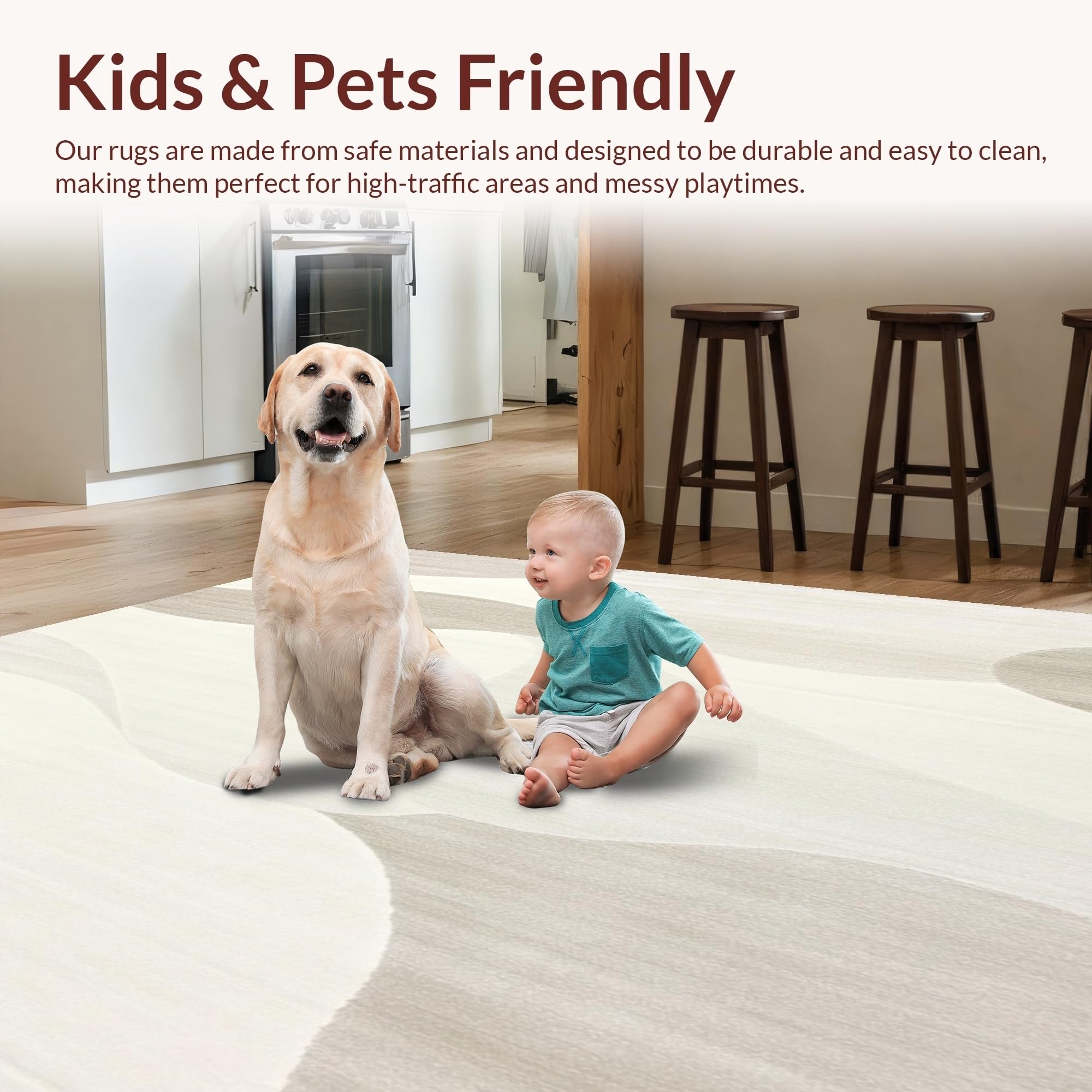 Ultra Soft Area Rug, Non Slip, Stain Resistant, Washable Area Rugs for Living Room, Bedroom, Beige with Ergonomic Cushioning and Non Slip Backing(Beige) Overview: