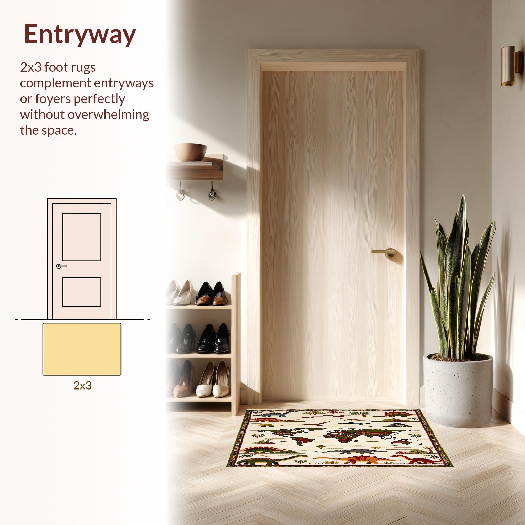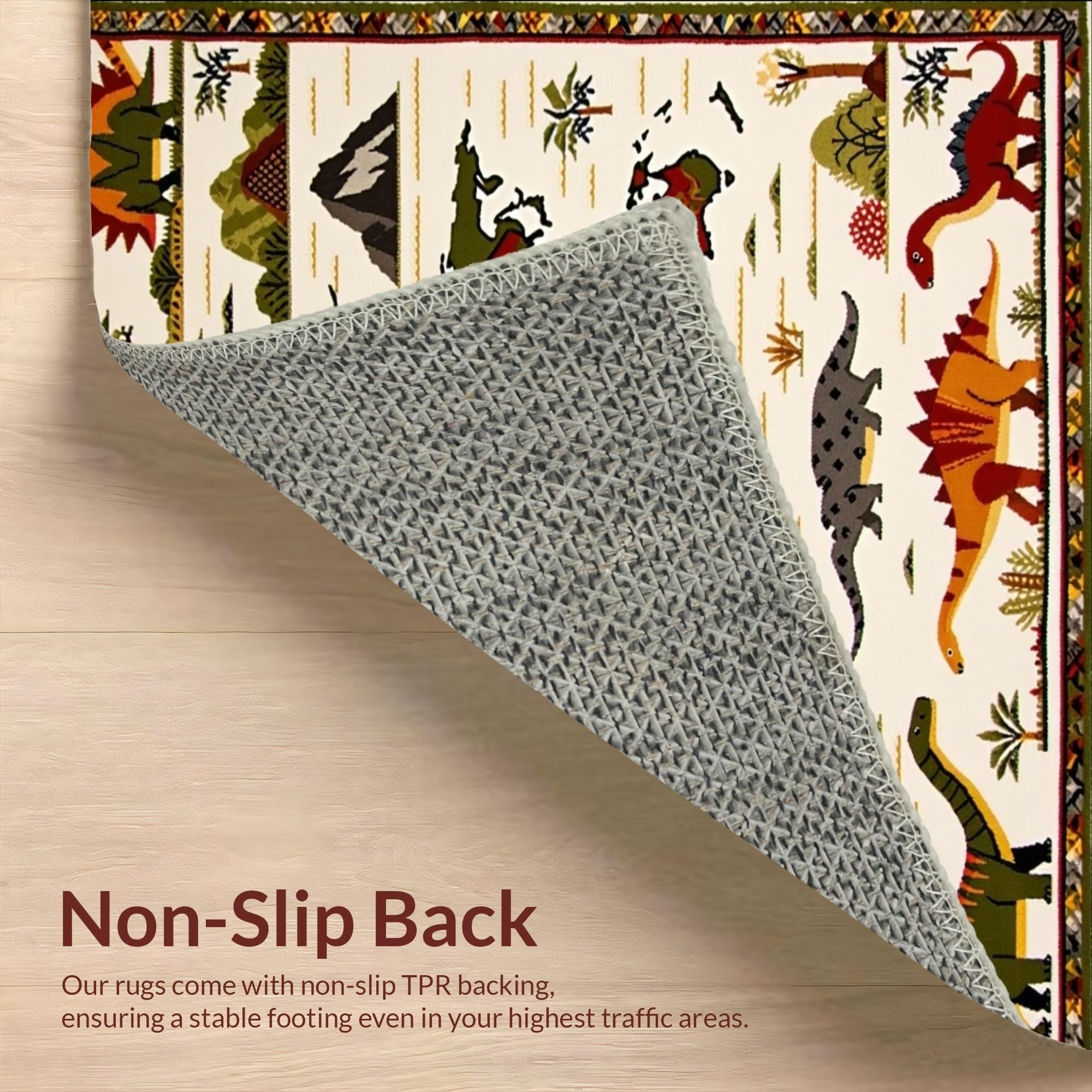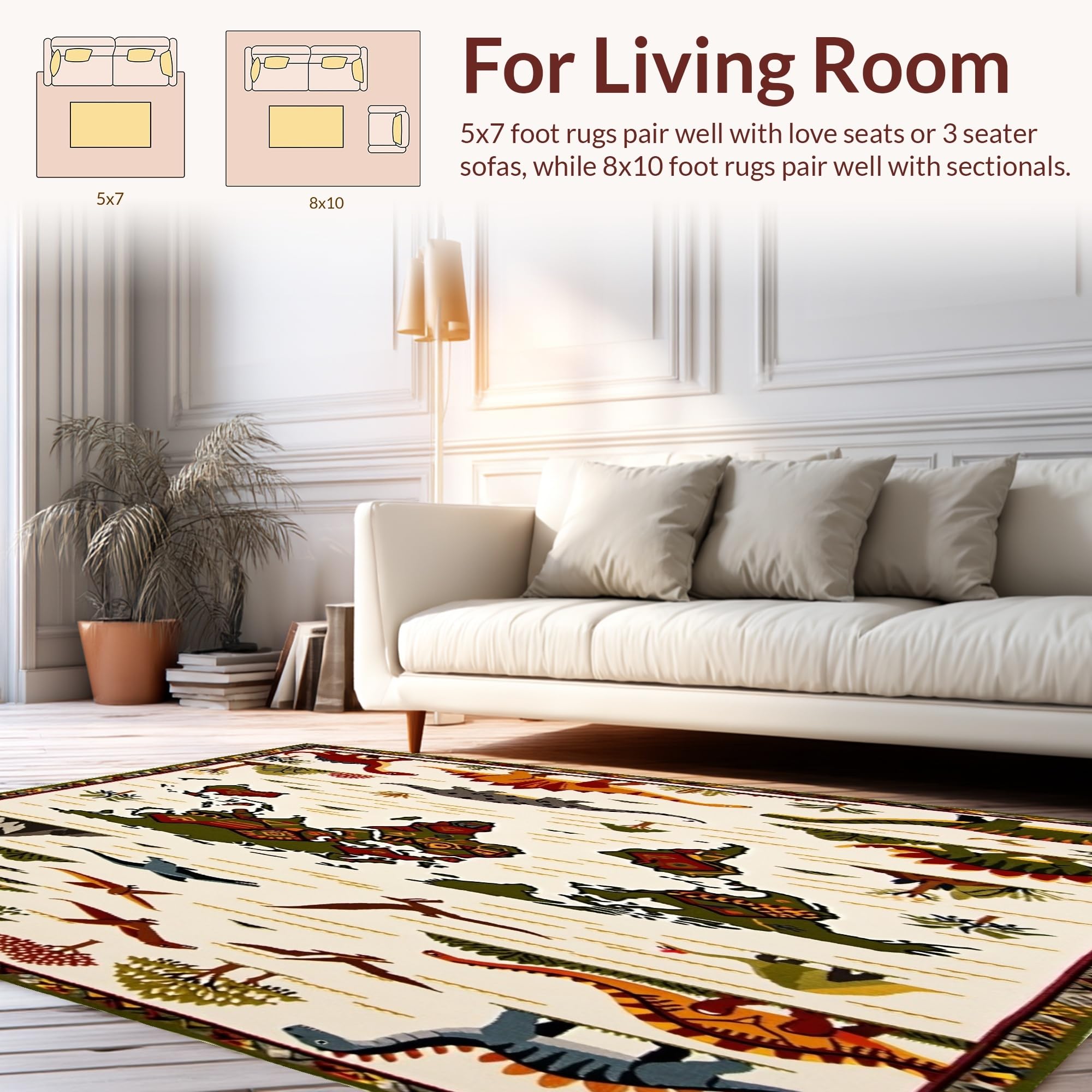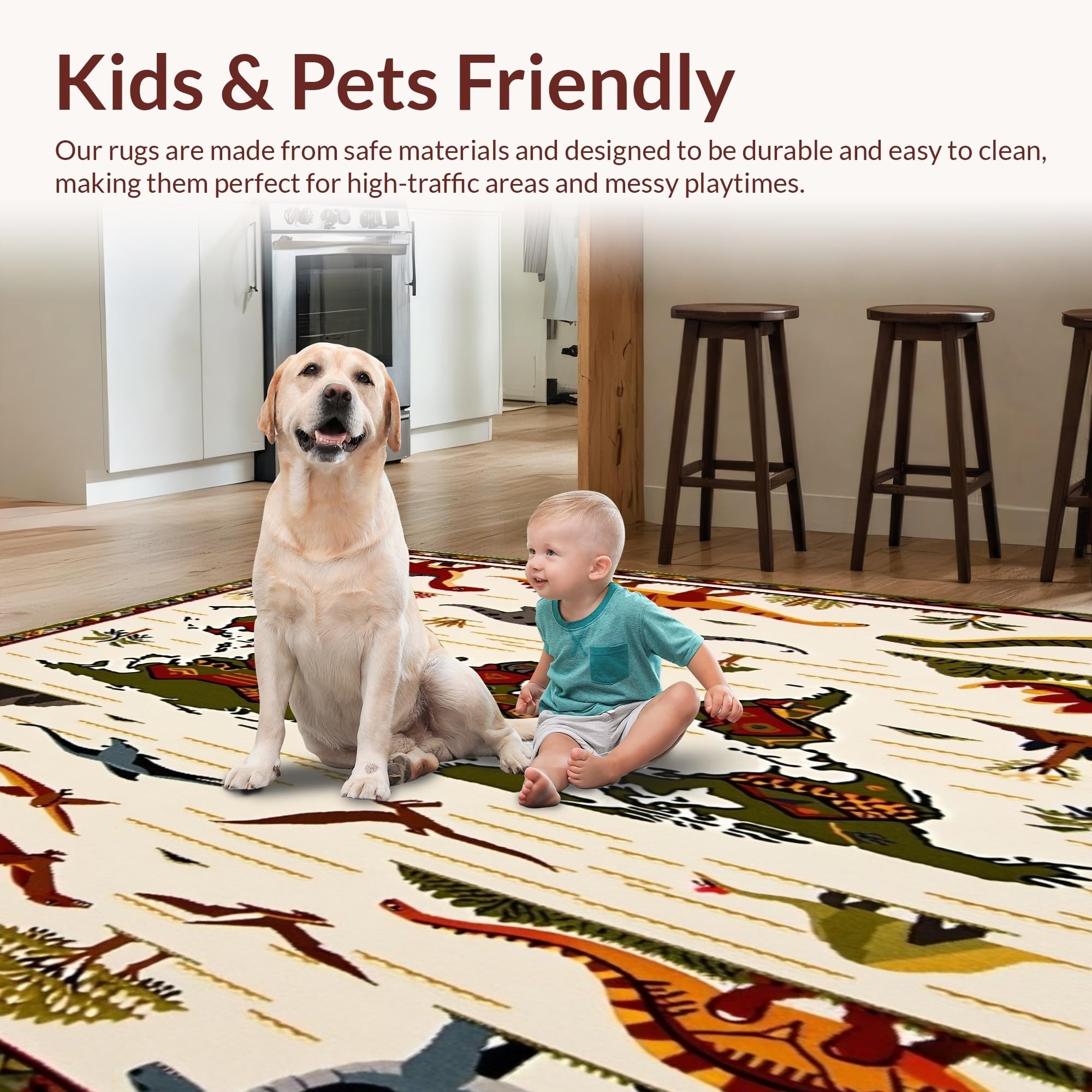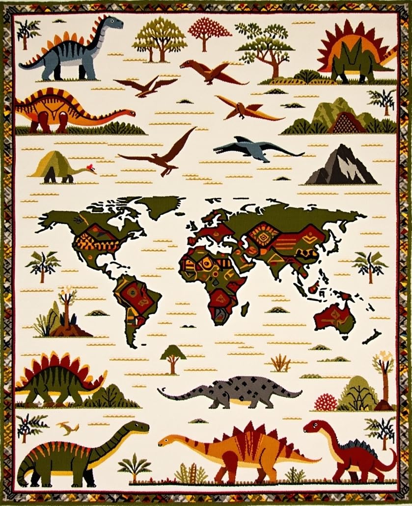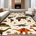 Ultra Soft Area Rug, Non Slip, Stain Resistant, Washable Area Rugs for Living Room, Bedroom, Beige with Fun Dinosaur Motifs and Colorful Global Map(Beige) Overview: