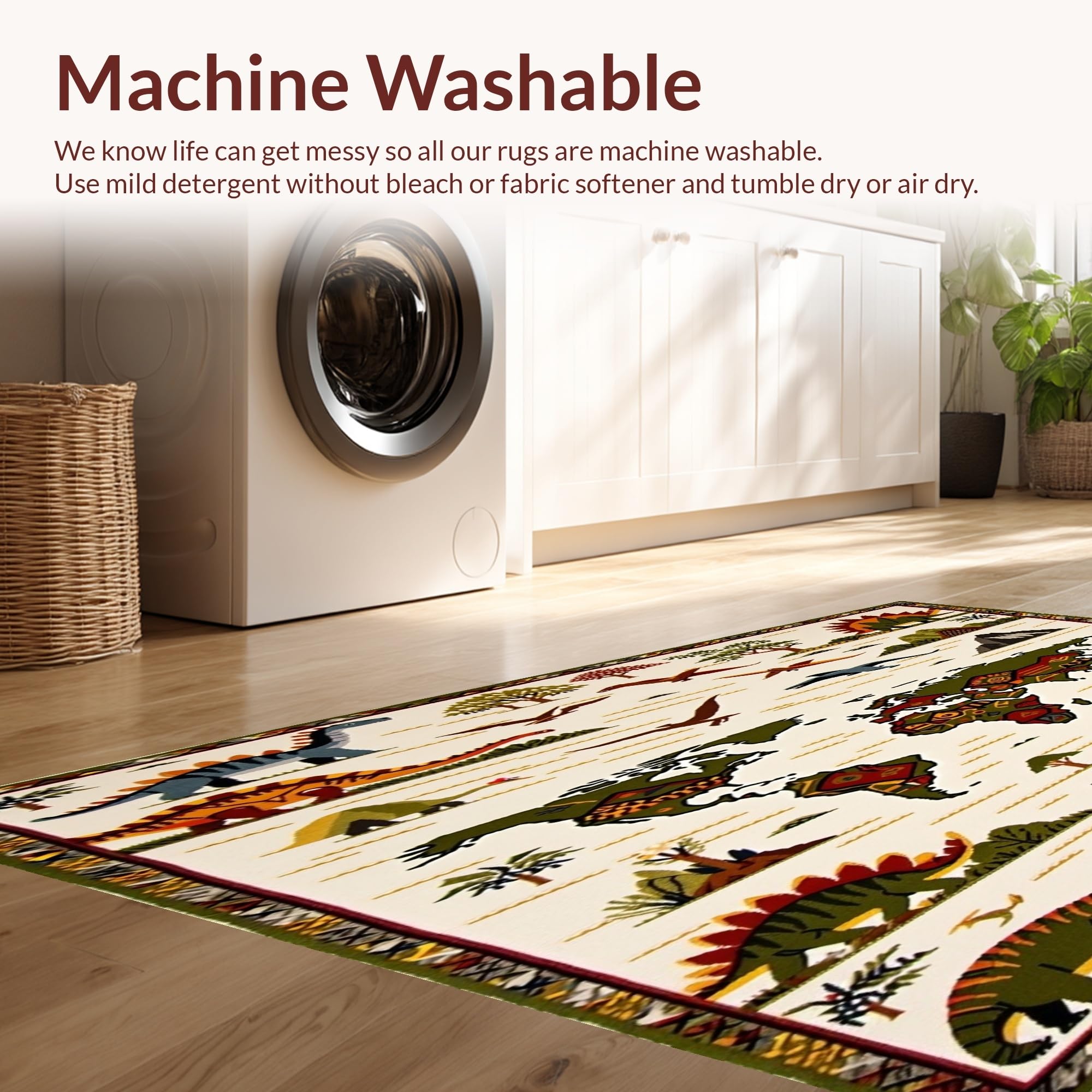 - Machine Washable: Our rugs can be easily thrown in the wash machine.