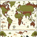 Beige with Retro Dinosaur Prints and Global Cartography(Green)