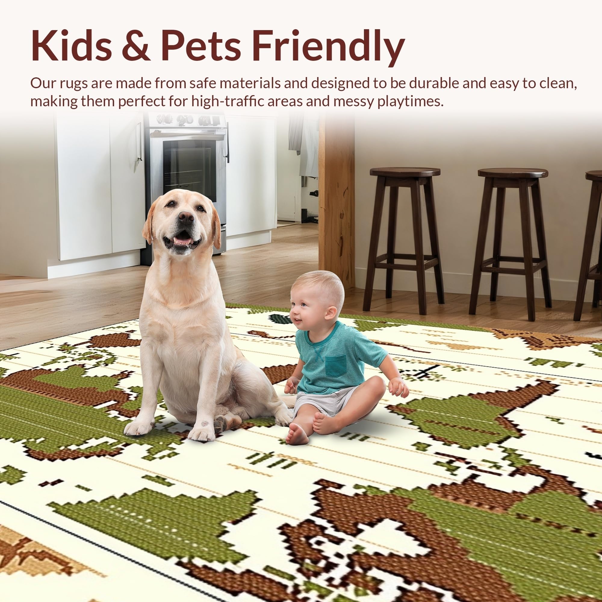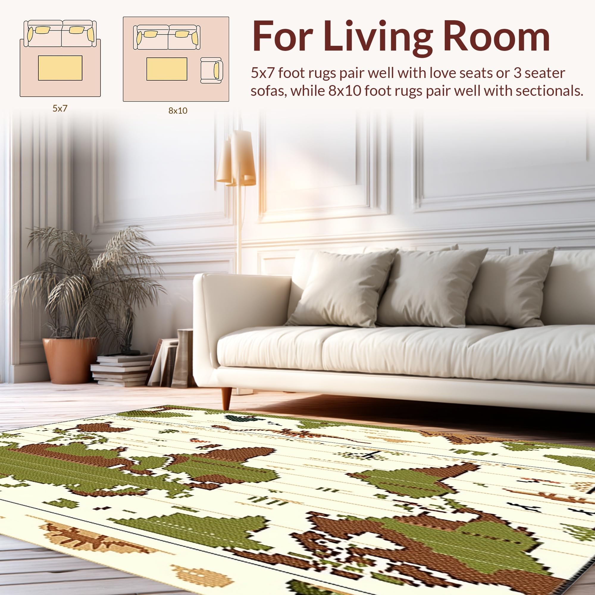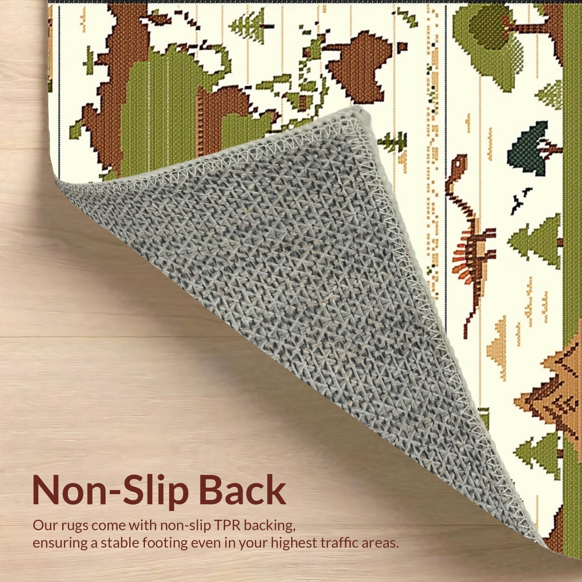 Ultra Soft Area Rug, Non Slip, Stain Resistant, Washable Area Rugs for Living Room, Bedroom, Beige with Retro Dinosaur Prints and Global Cartography(Green) Overview: