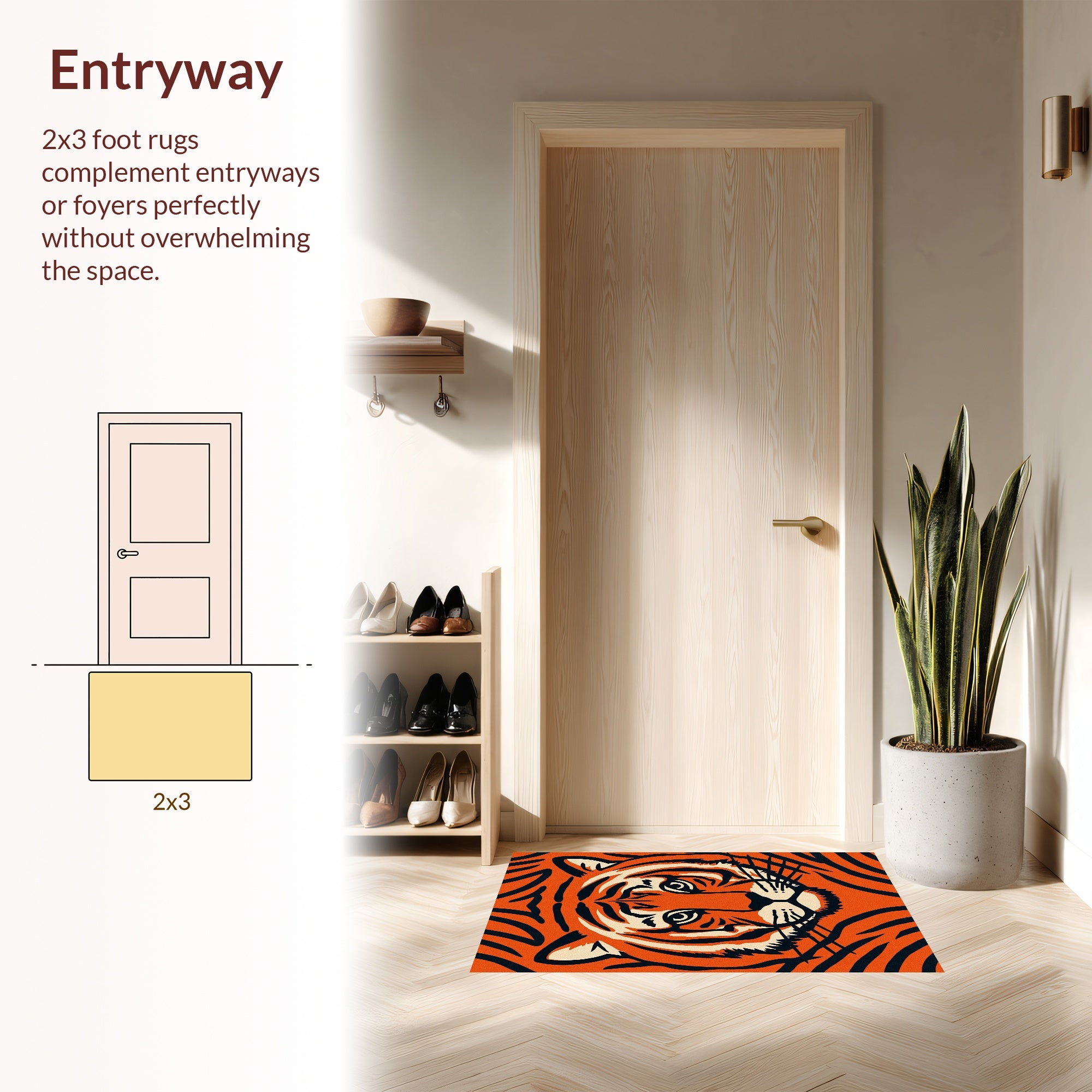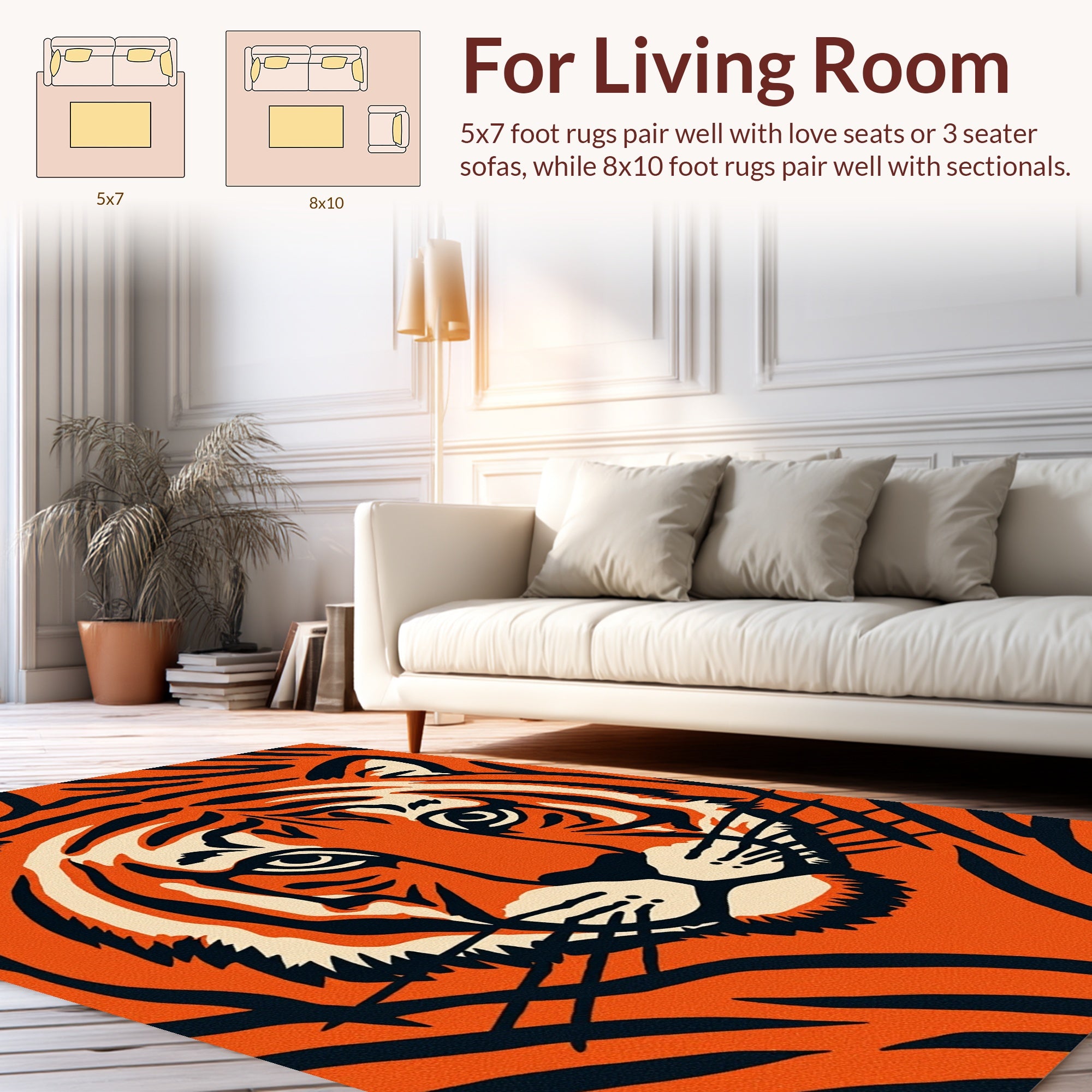 Ultra Soft Area Rug, Non Slip, Stain Resistant, Washable Area Rugs for Living Room, Bedroom, Bengal Tiger Inspired Artistic Design(Orange) Overview: