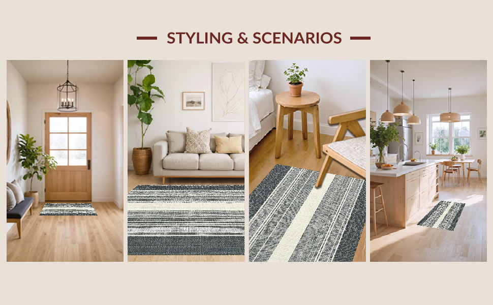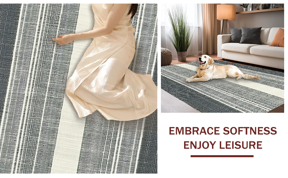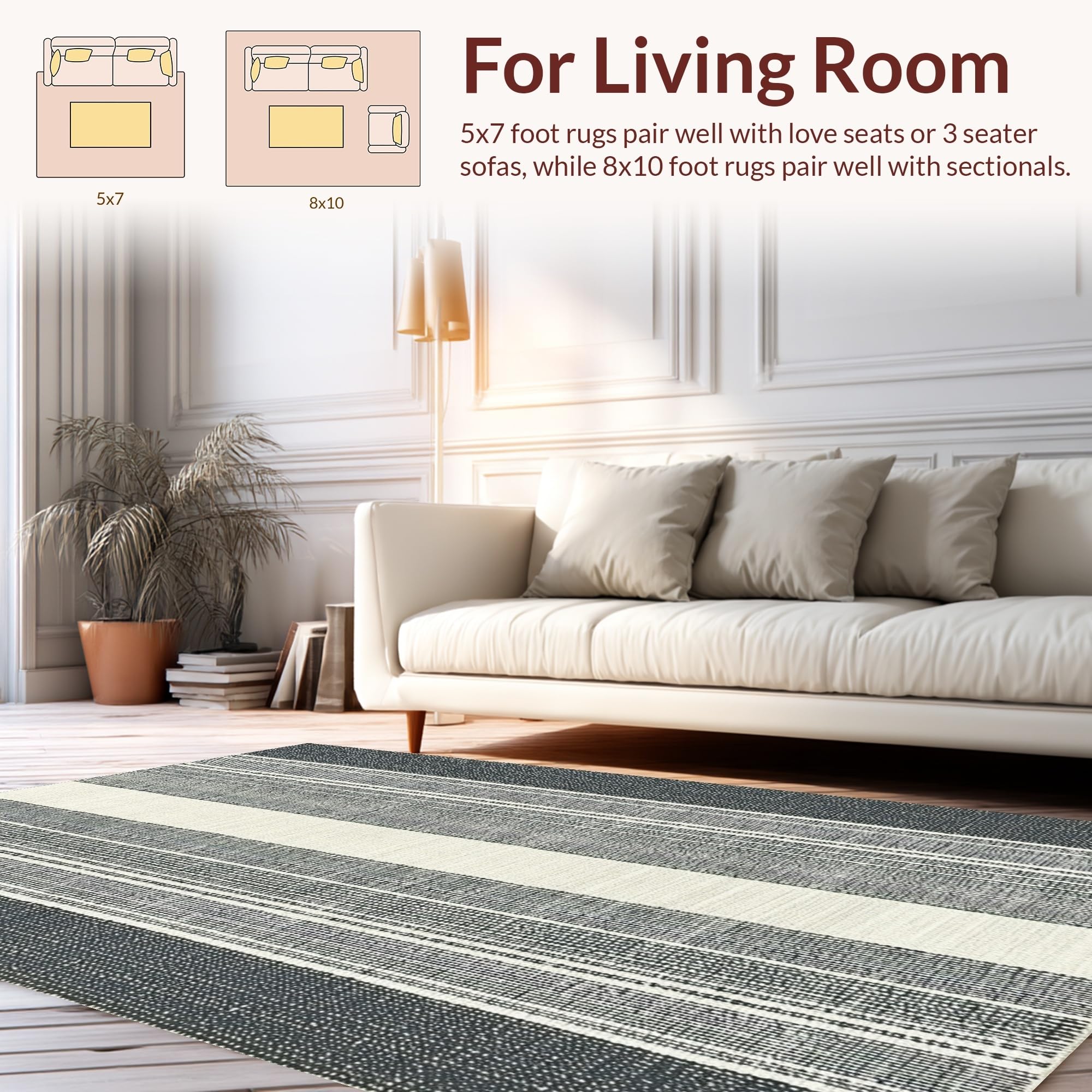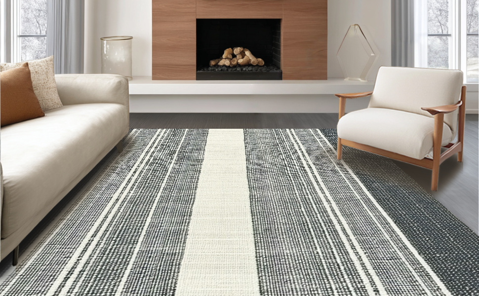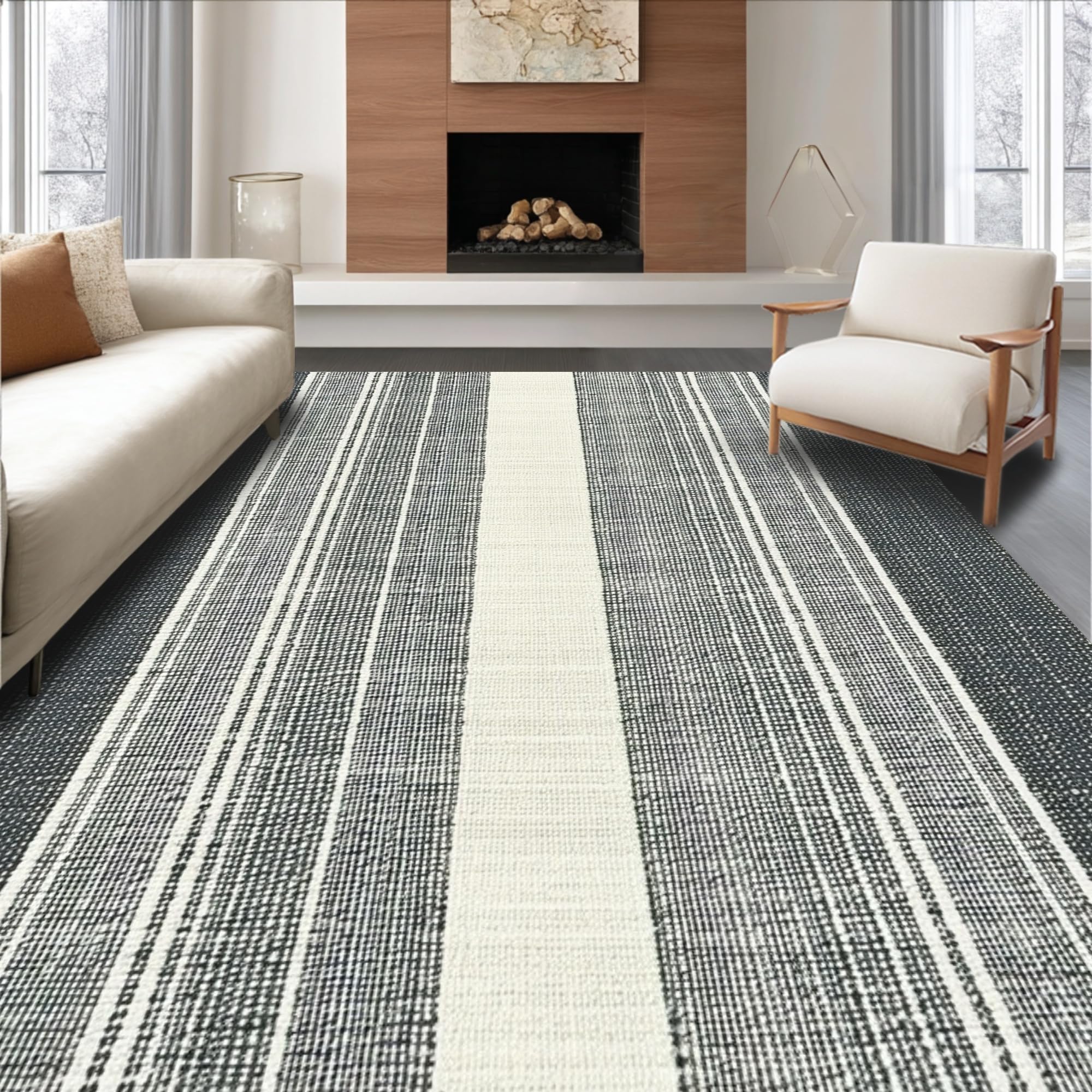 Ultra Soft Area Rug, Non Slip, Stain Resistant, Washable Area Rugs for Living Room, Bedroom, Black and White Striped Handcrafted Woven Design(White) Overview:
