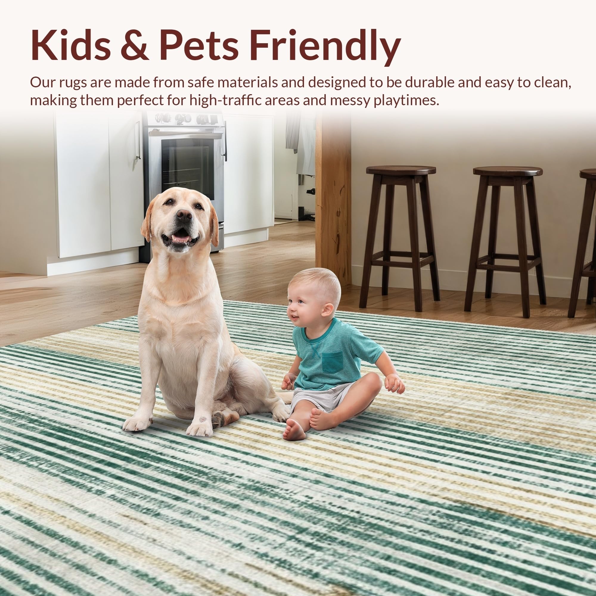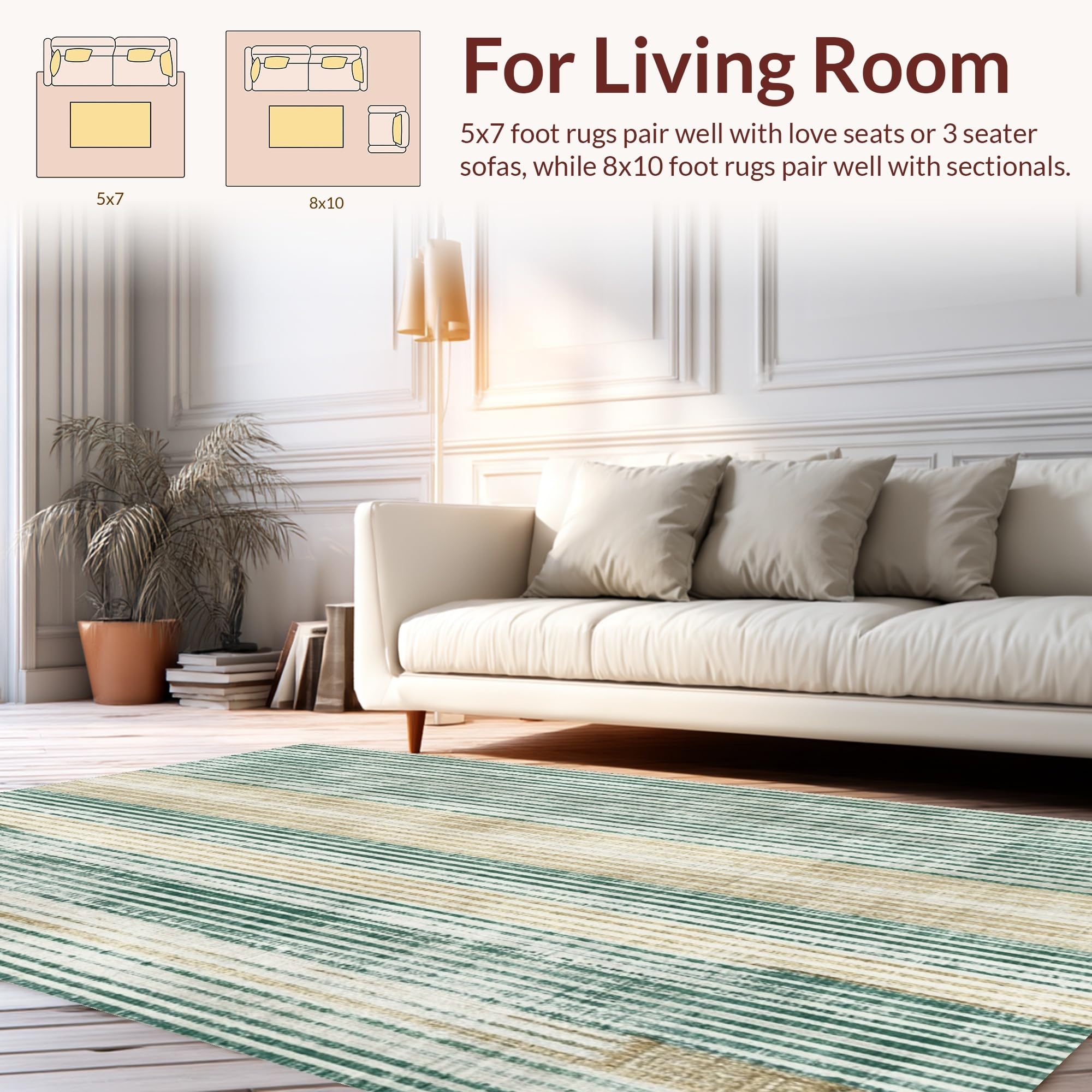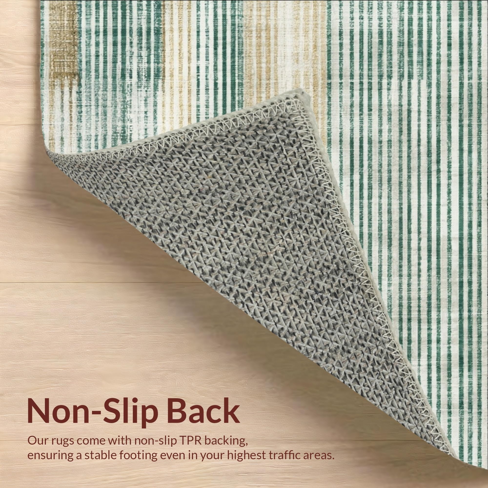 Ultra Soft Area Rug, Non Slip, Stain Resistant, Washable Area Rugs for Living Room, Bedroom, Black and White Striped Rug Machine Washable Digital Print(Beige) Overview: