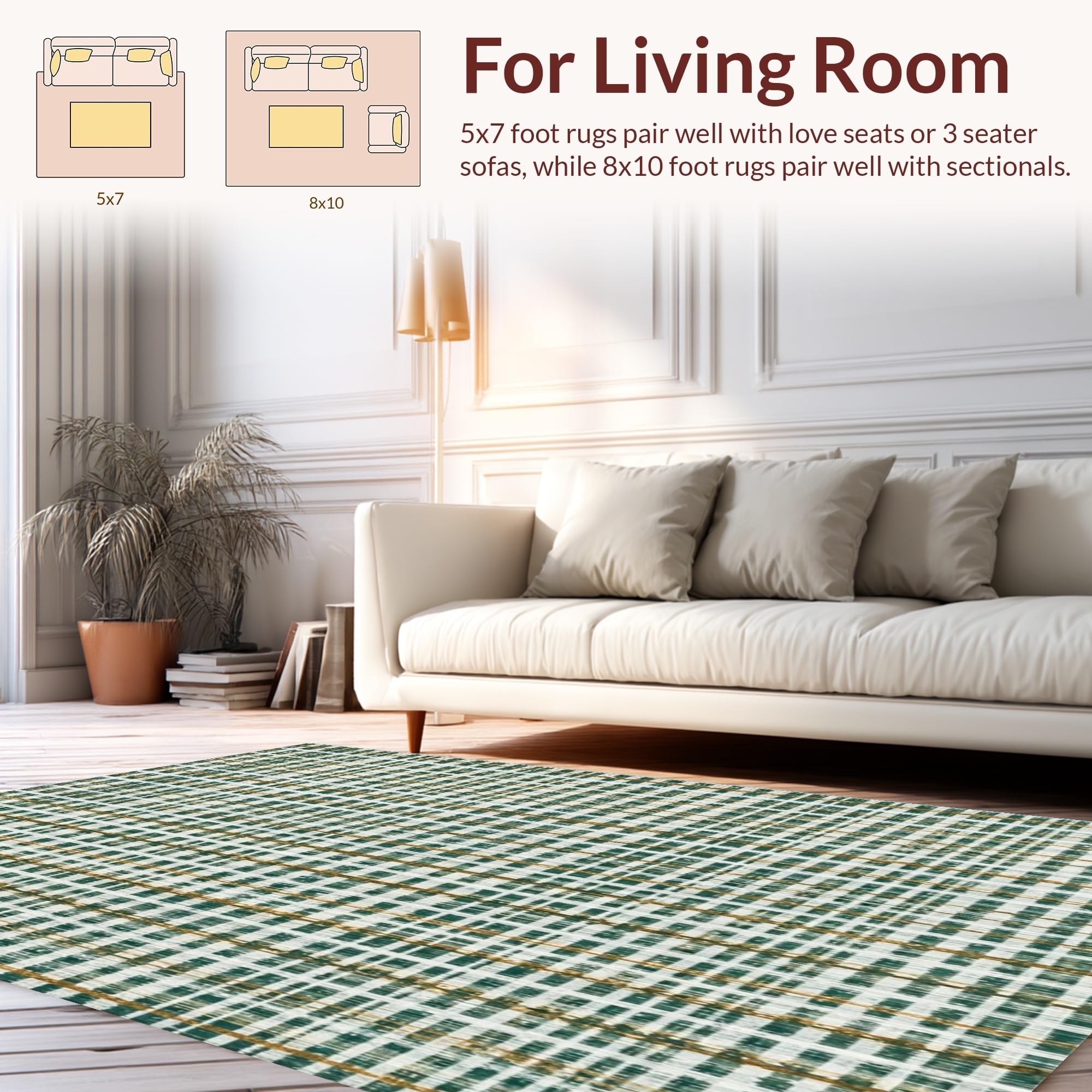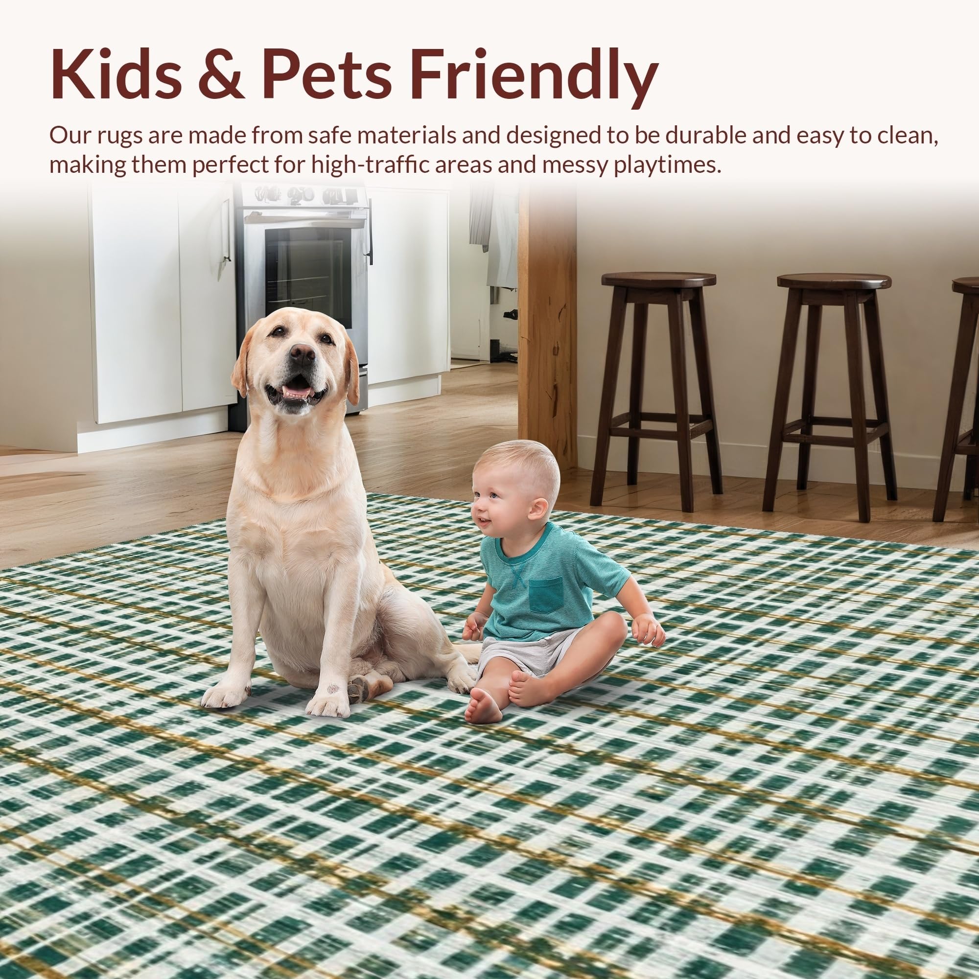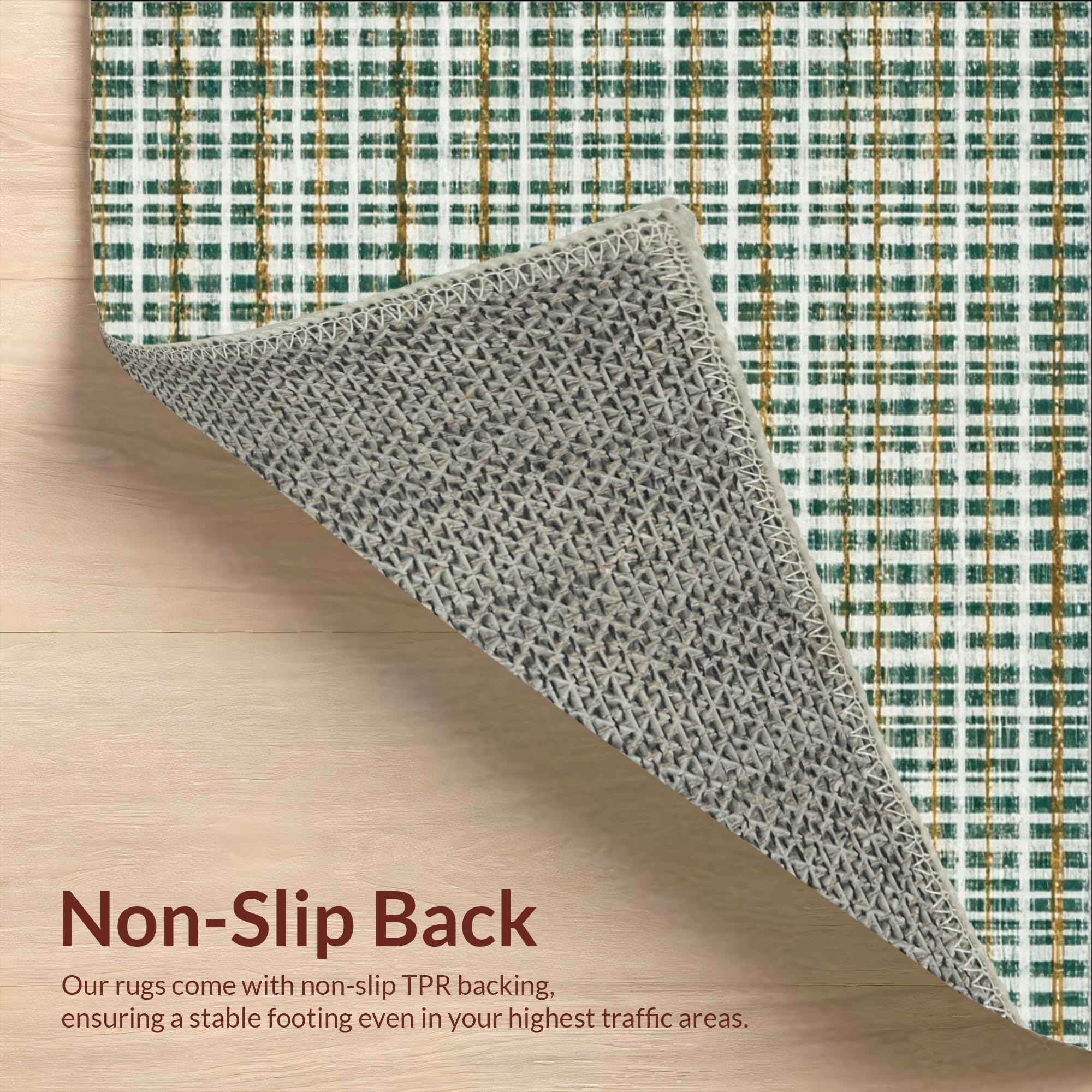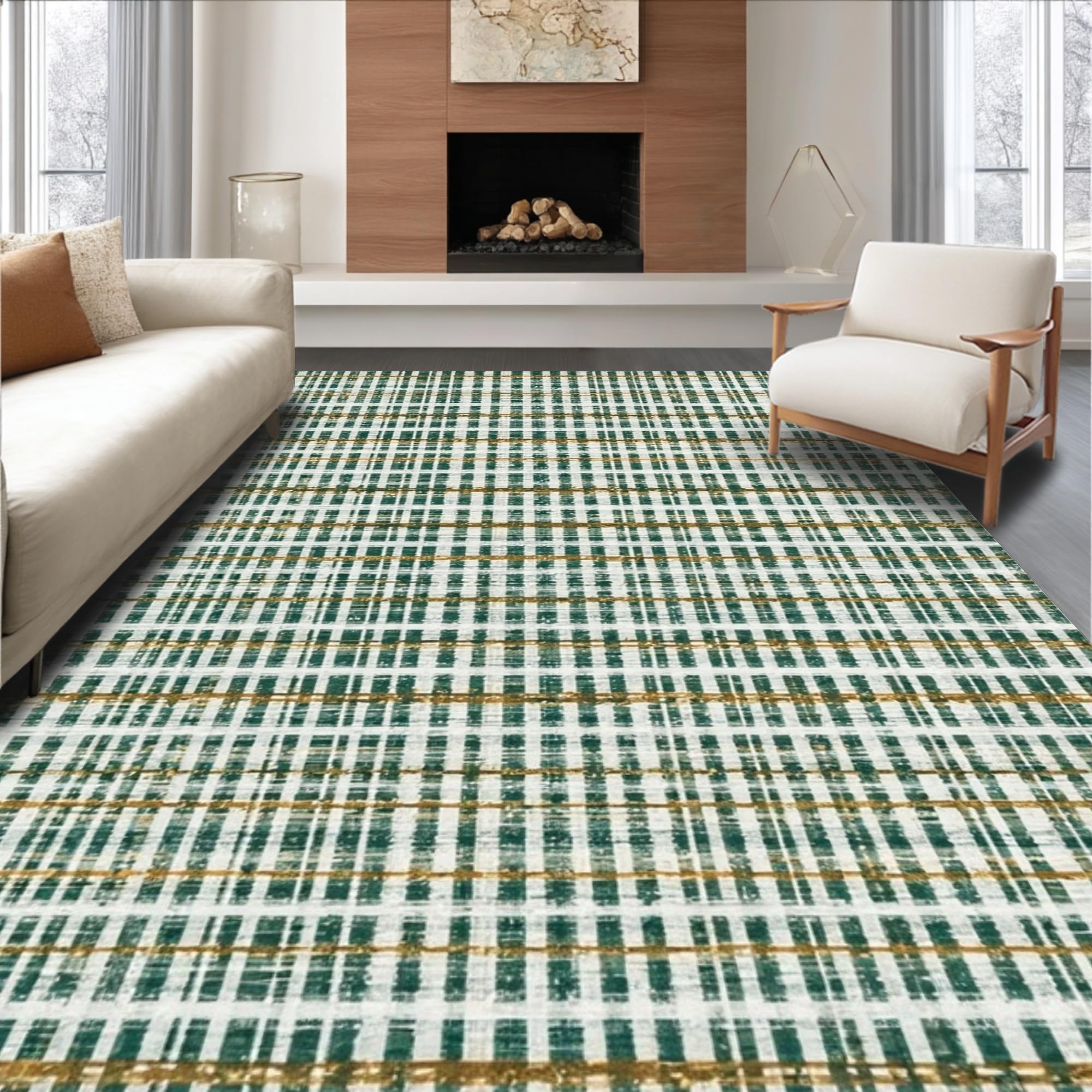 Ultra Soft Area Rug, Non Slip, Stain Resistant, Washable Area Rugs for Living Room, Bedroom, Black and White Striped Rug Machine Washable Symmetrical Geometric Design(Green) Overview: