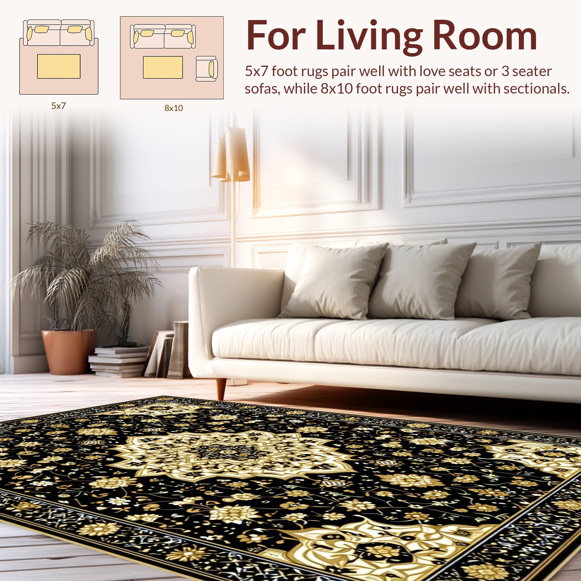 Ultra Soft Area Rug, Non Slip, Stain Resistant, Washable Area Rugs for Living Room, Bedroom, Black Gold Flannel Area Rug for Comfort(Black) Overview:
