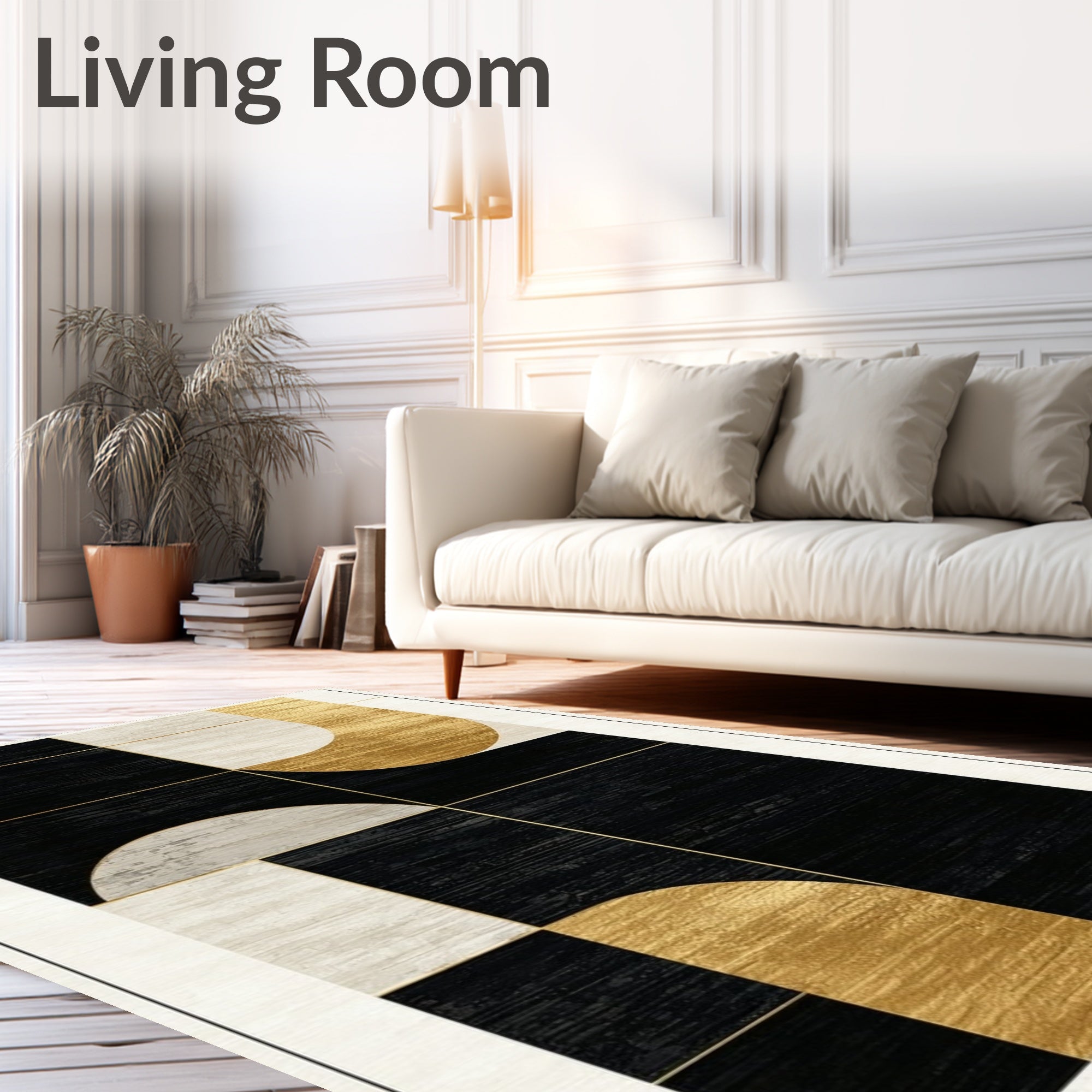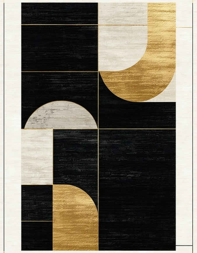 Black & Gold Luxury Textured Indoor Rug(Black)