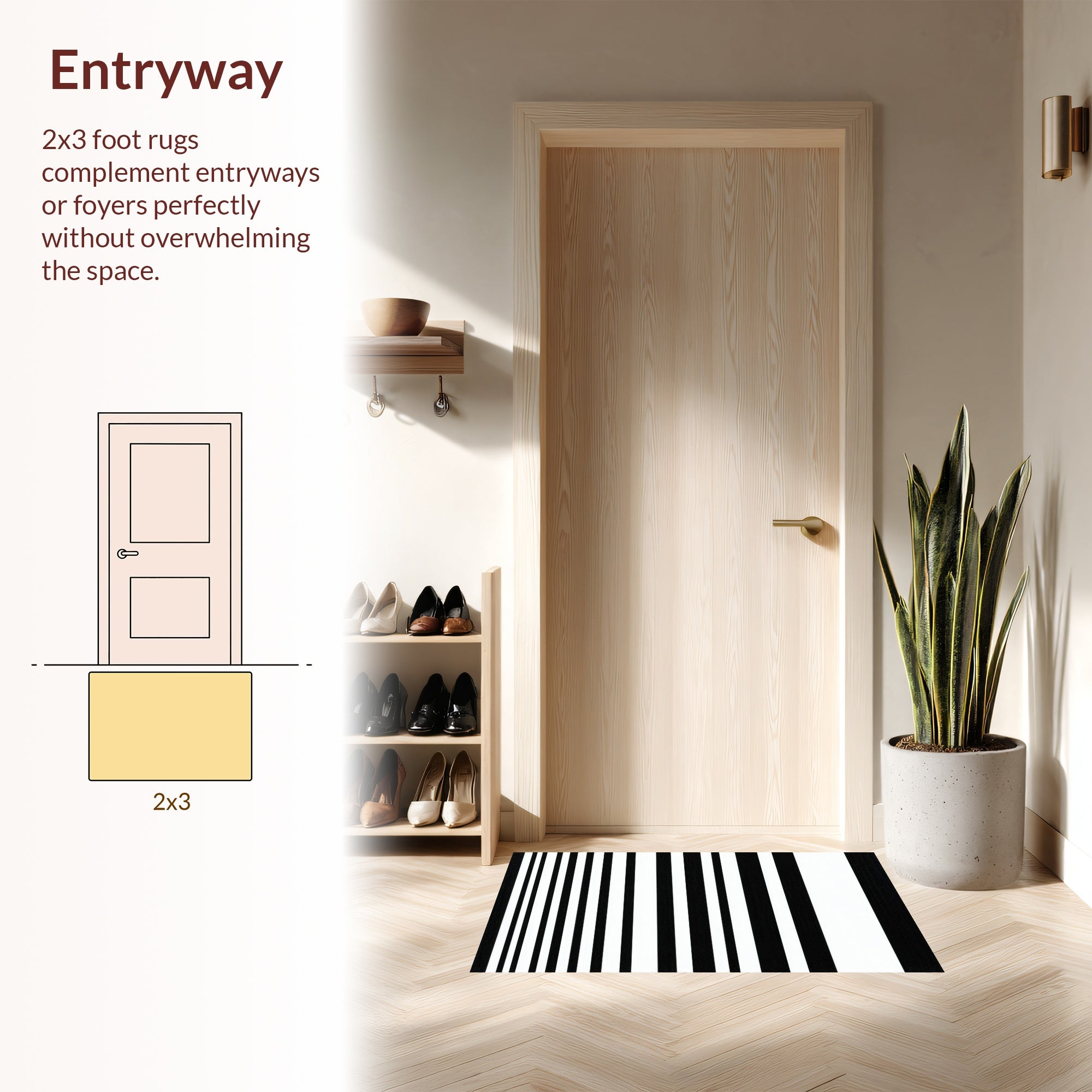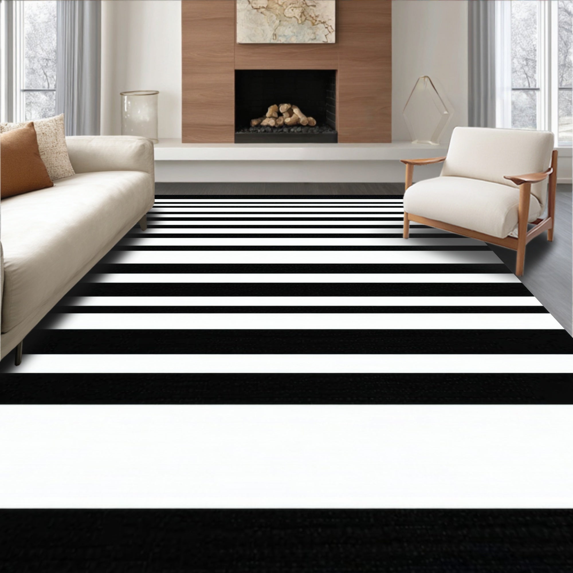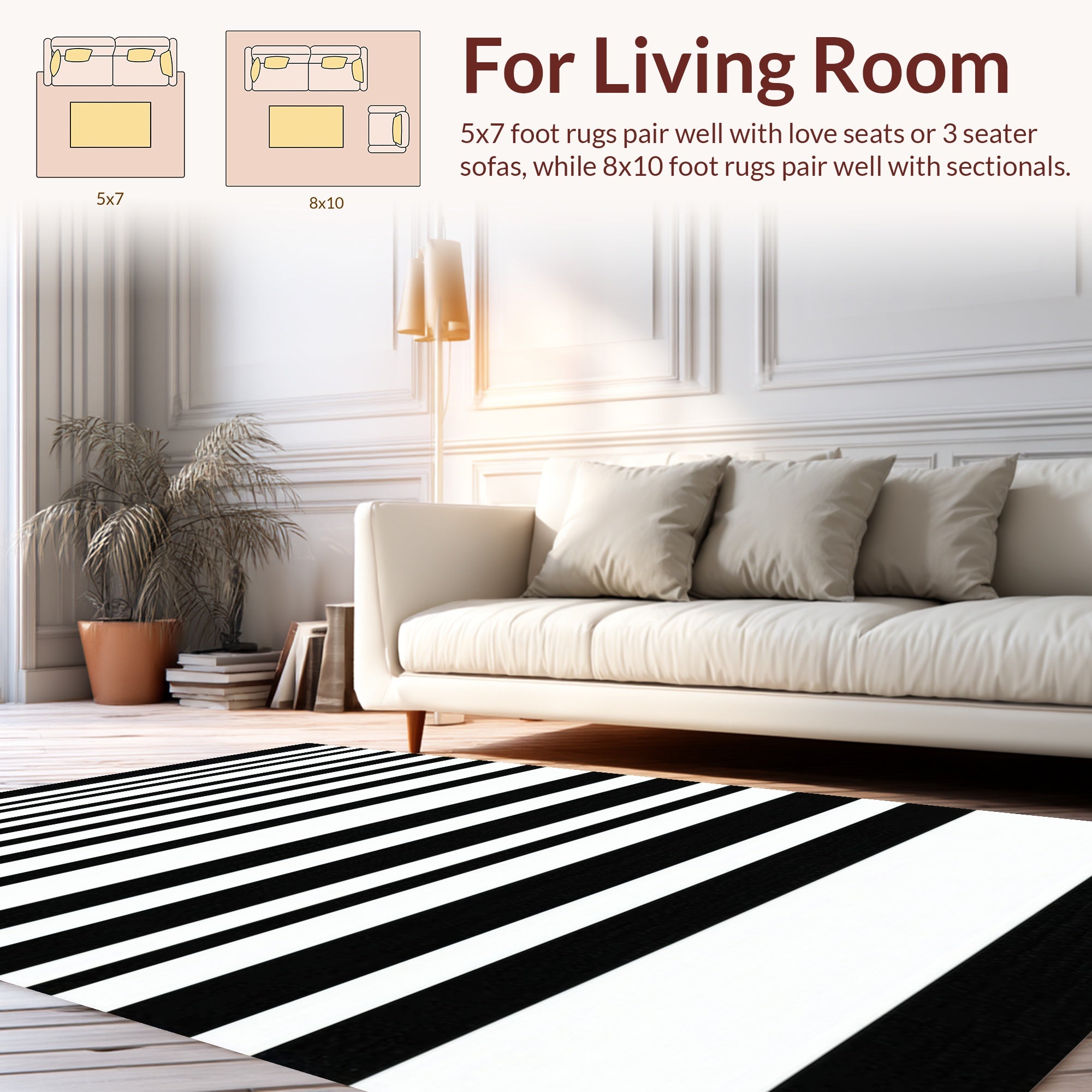 Flatwoven High Traffic Area Rug, Black Stripe Floor, Non Slip, Stain Resistant, Washable Area Rugs for Living Room, Bedroom (Black) Overview: