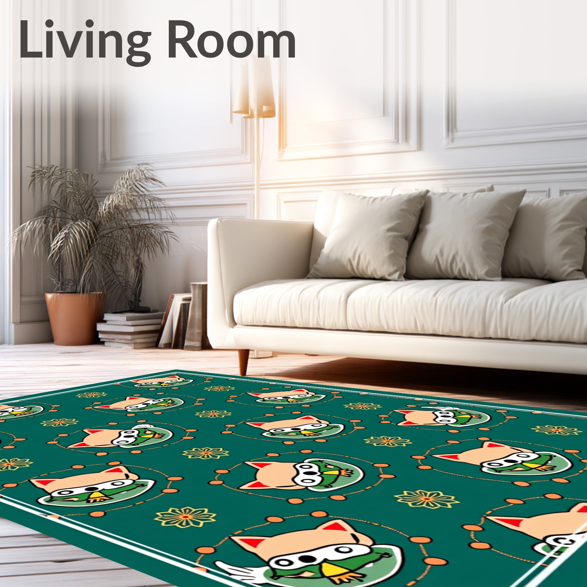 Ultra Soft Area Rug, Non Slip, Stain Resistant, Washable Area Rugs for Living Room, Bedroom, Blinking Hungry Kitten Gathering Humorous Seasonal(Teal) Overview:
