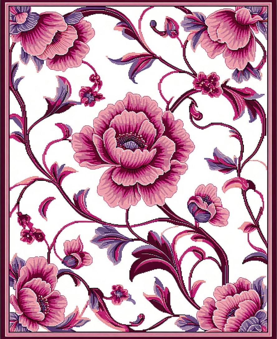 Blooming Carnation Scroll with Layered Petal Motifs and Flourishing Vines(Mauve)