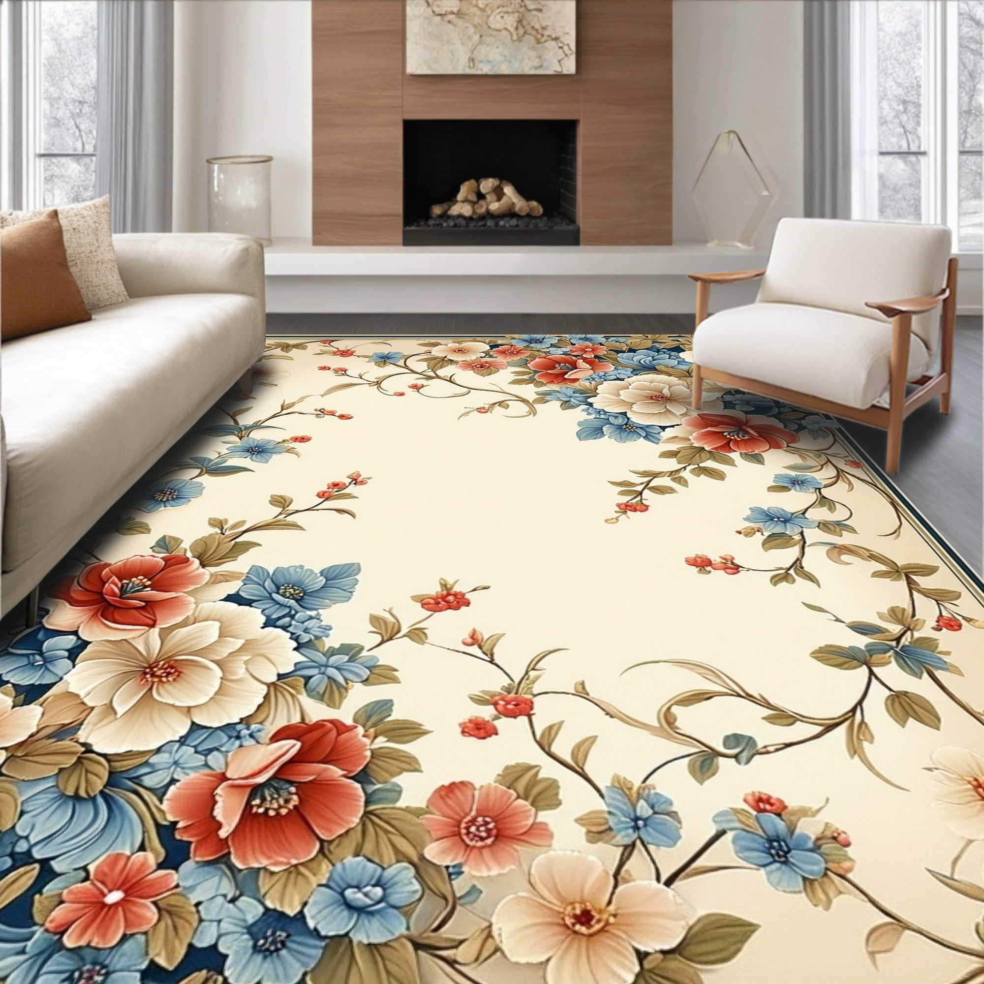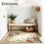 Flatwoven High Traffic Area Rug, Blossom Cascade with Artistic Petal Swirls and Dynamic Modern Floral, Non Slip, Stain Resistant, Washable Area Rugs for Living Room, Bedroom (Beige) Overview: