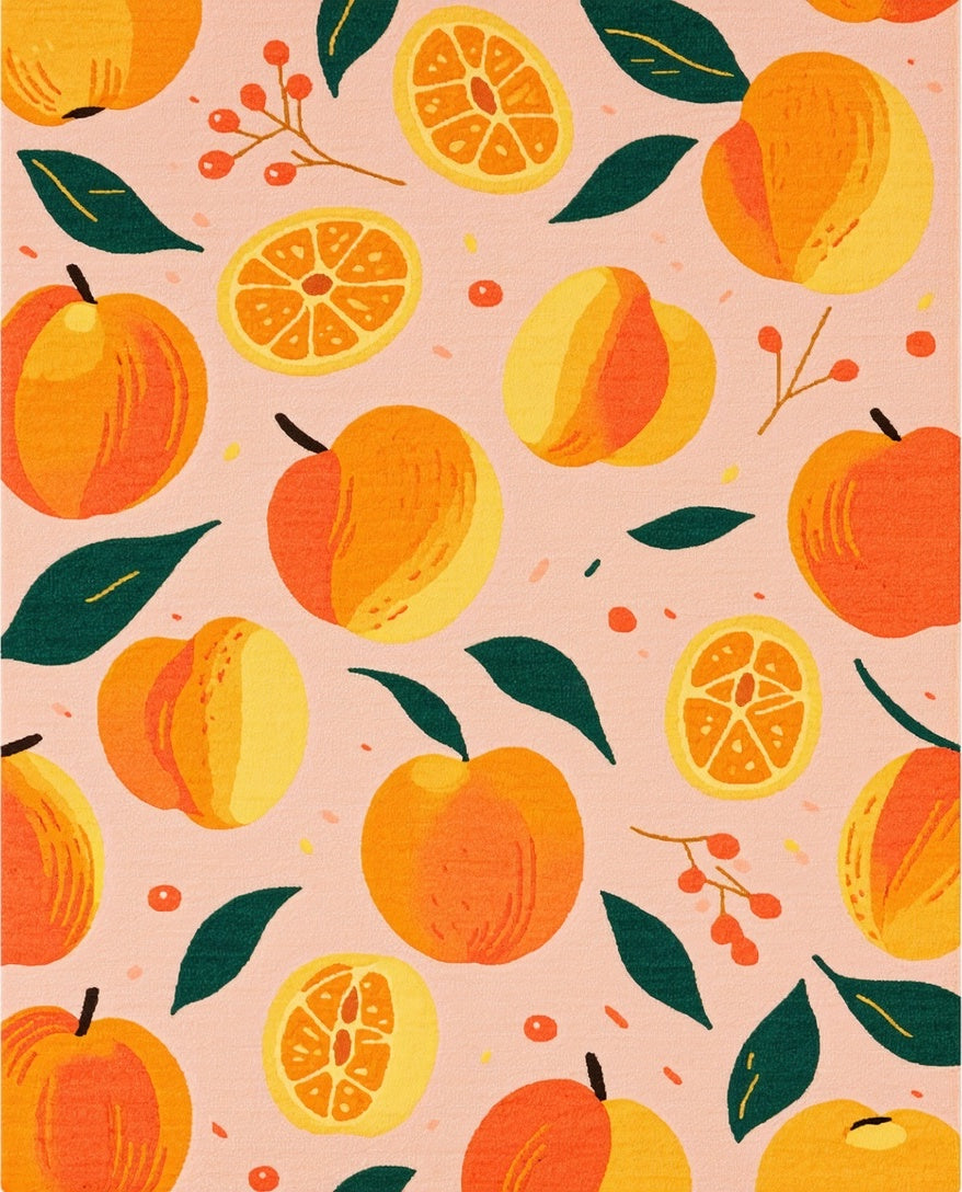 Flatwoven High Traffic Area Rug, Blush Featuring Bright Peach and Vivid Green, Non Slip, Stain Resistant, Washable Area Rugs for Living Room, Bedroom (Orange) Overview: