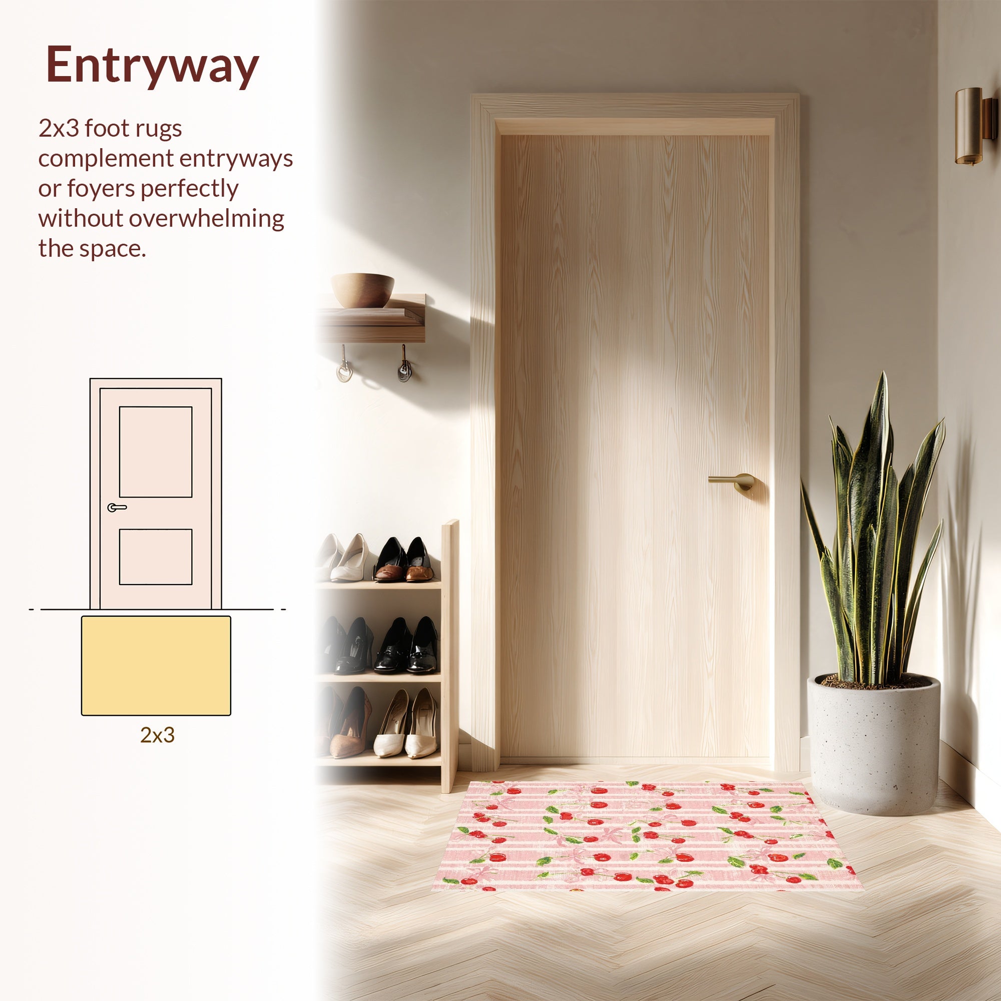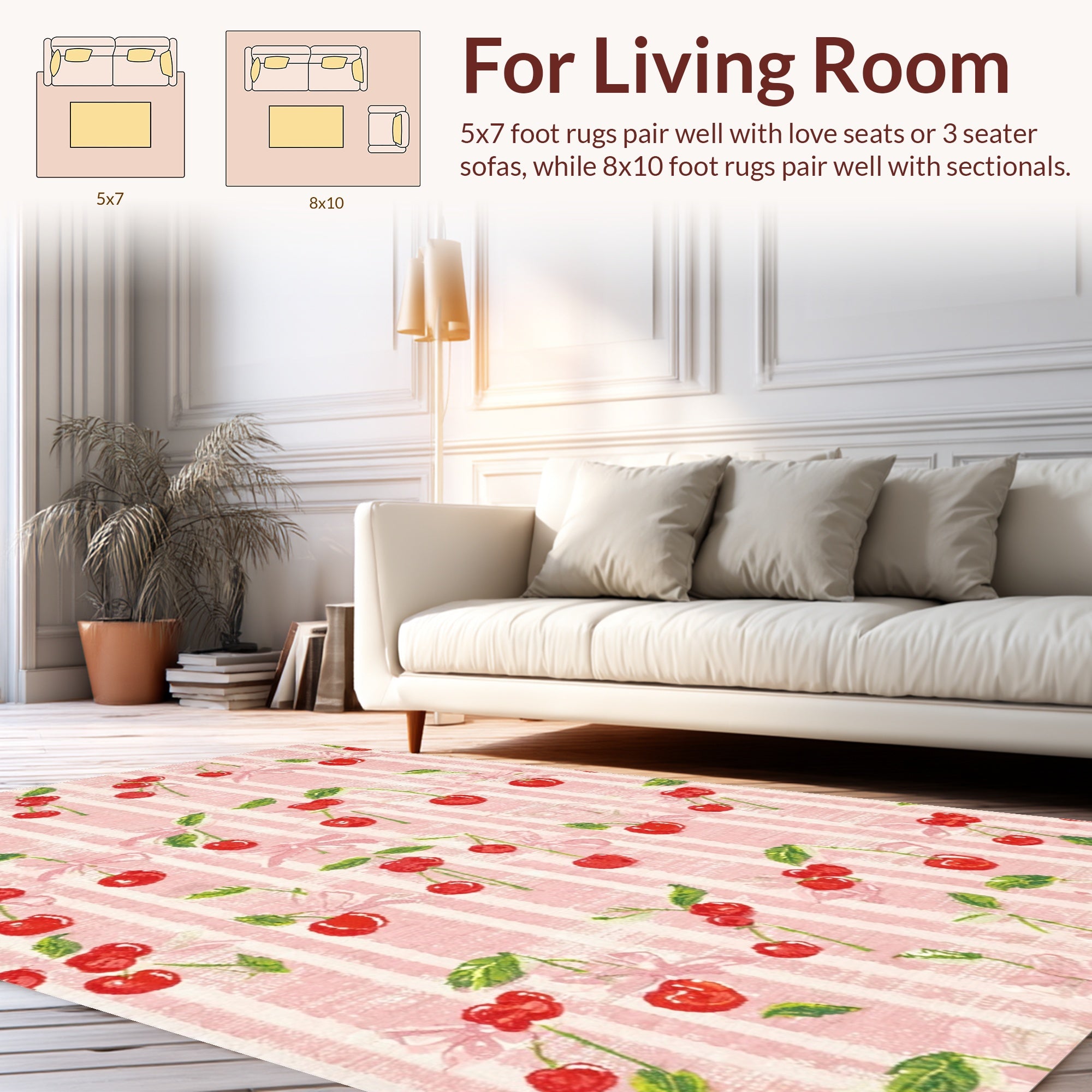Ultra Soft Area Rug, Non Slip, Stain Resistant, Washable Area Rugs for Living Room, Bedroom, Blush Bow Tie and Cherry Cluster Washable Runner Mat(Pink) Overview: