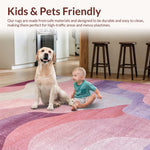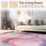 Ultra Soft Area Rug, Non Slip, Stain Resistant, Washable Area Rugs for Living Room, Bedroom, Blush Mirage Soft Pattern Rug with Pastel Mauve Waves and Rose Pink Accents(Pink) Overview: