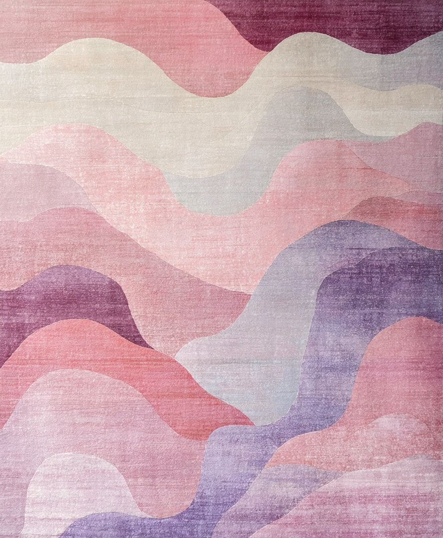 Flatwoven High Traffic Area Rug, Blush Mirage with Pastel Mauve Waves and Rose Pink Accents, Non Slip, Stain Resistant, Washable Area Rugs for Living Room, Bedroom (Pink) Overview: