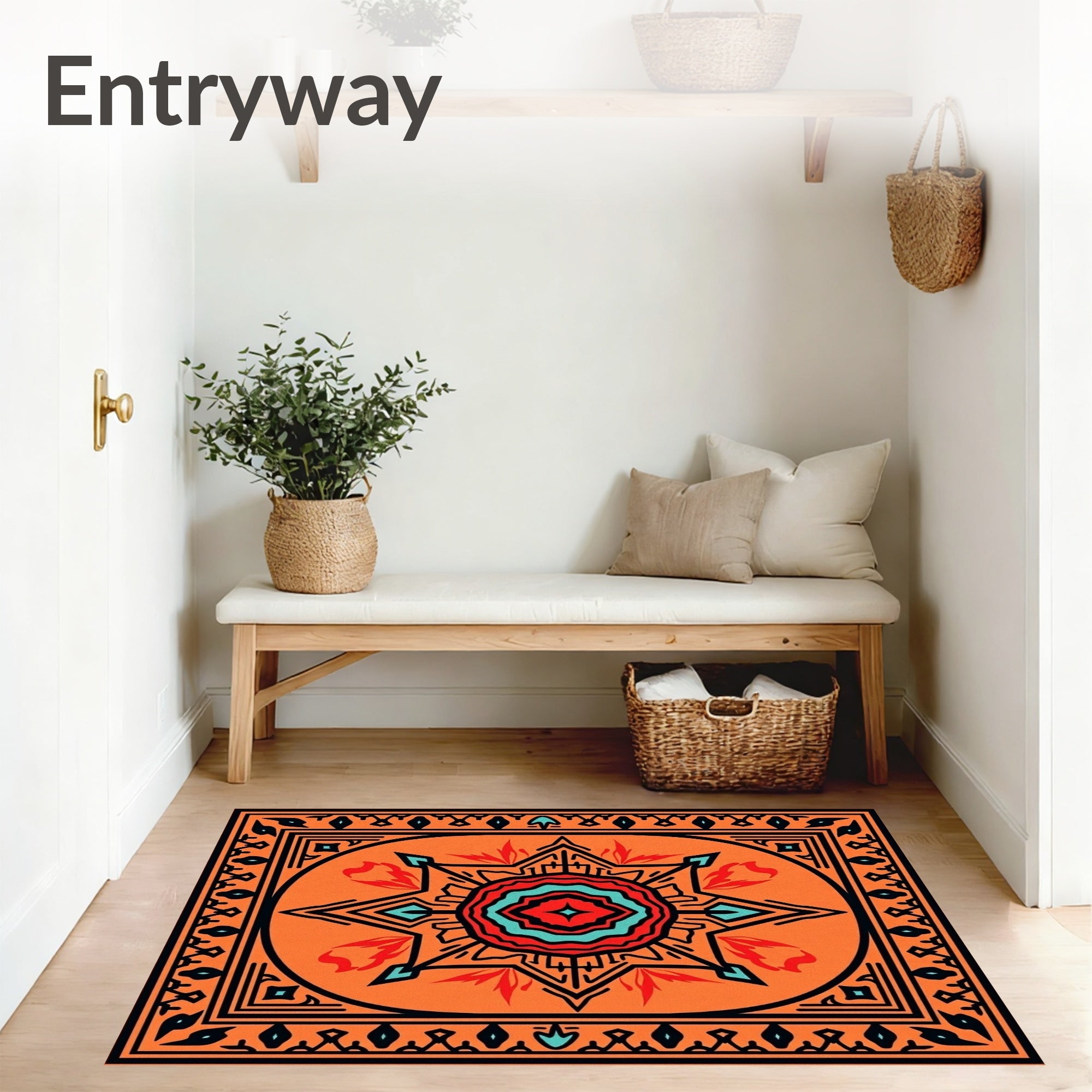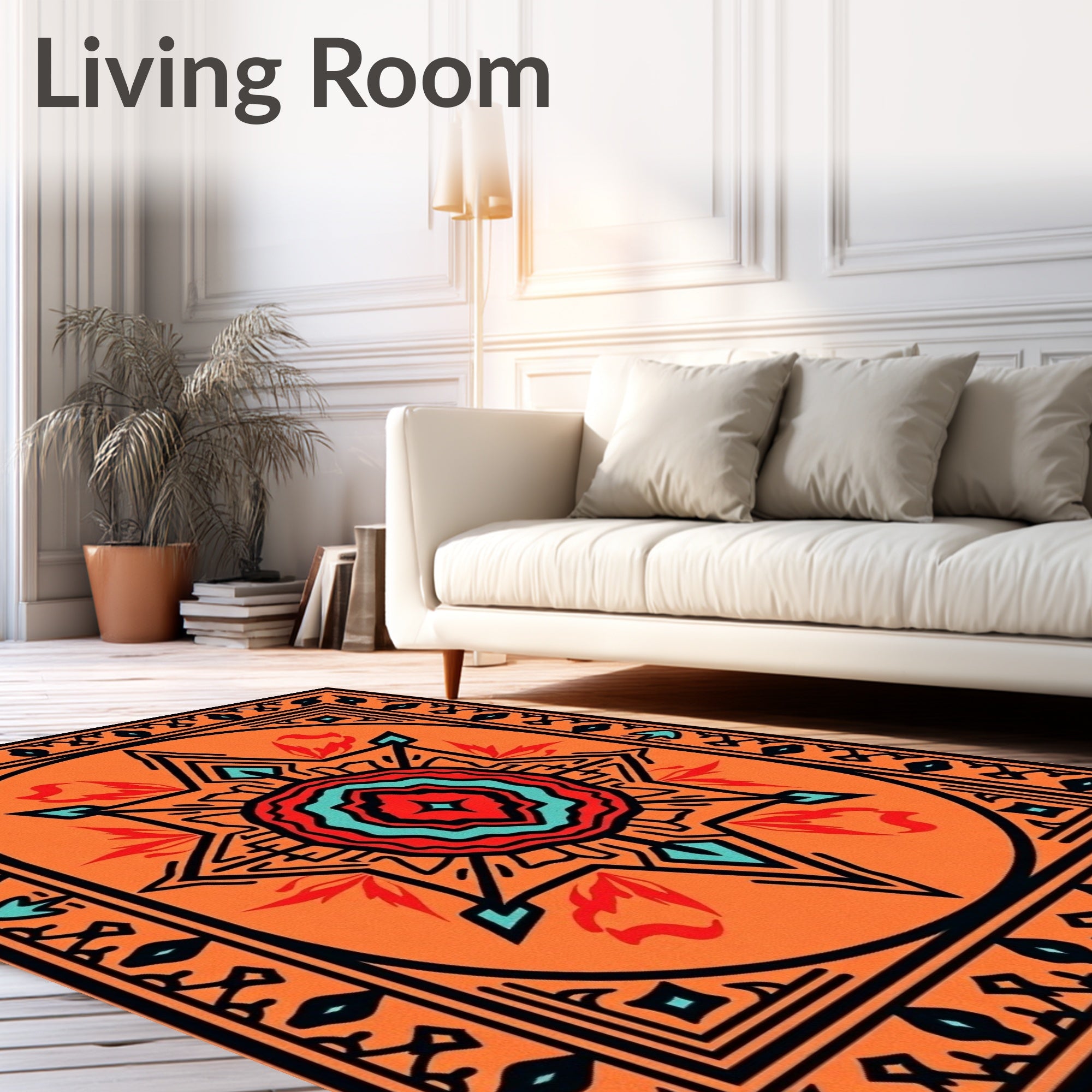 Ultra Soft Area Rug, Non Slip, Stain Resistant, Washable Area Rugs for Living Room, Bedroom, Boho Aztec Medallion Southwestern Artisan(Orange) Overview: