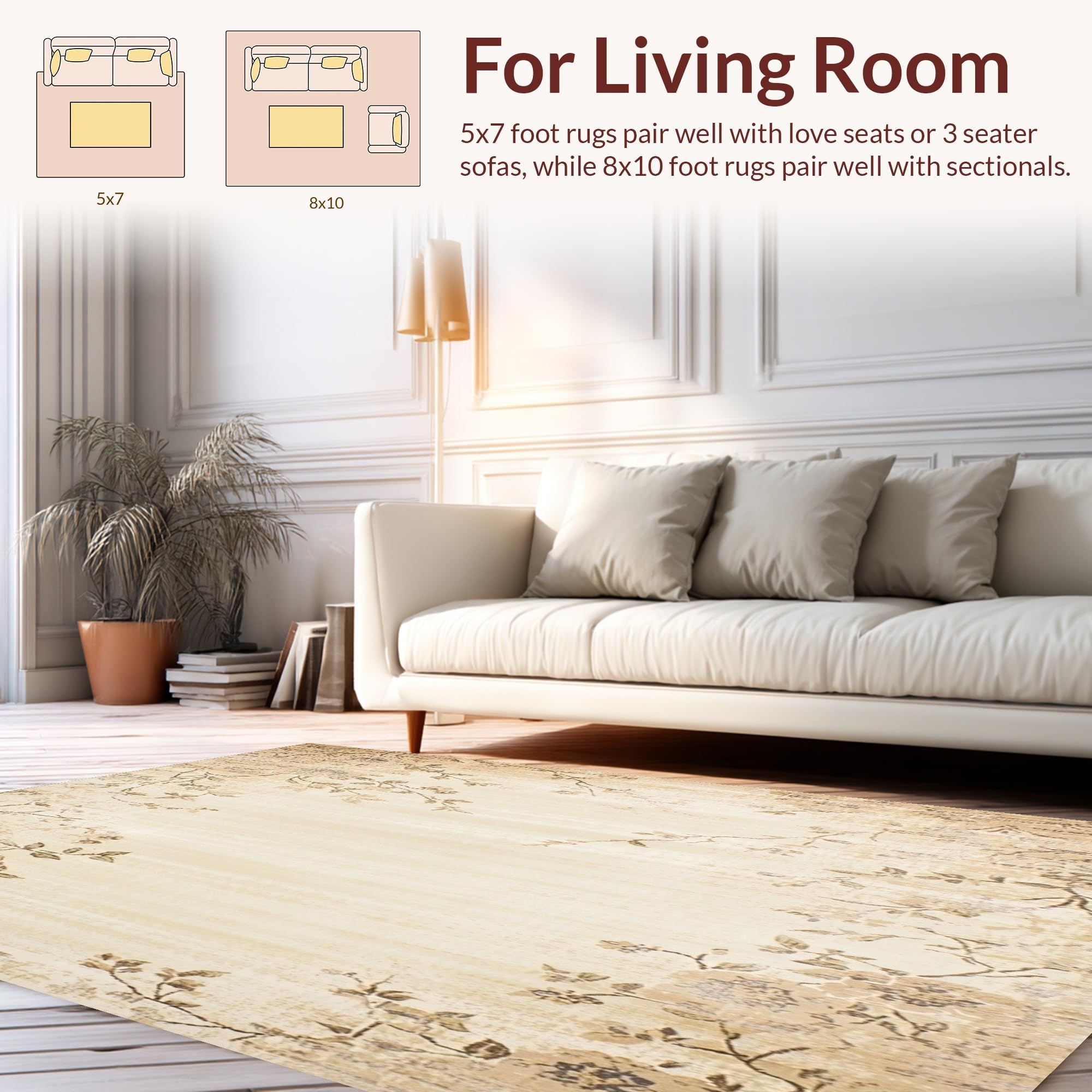 Ultra Soft Area Rug, Non Slip, Stain Resistant, Washable Area Rugs for Living Room, Bedroom, Boho Beige Runner Floral Long Entryway Mat(Beige) Overview:
