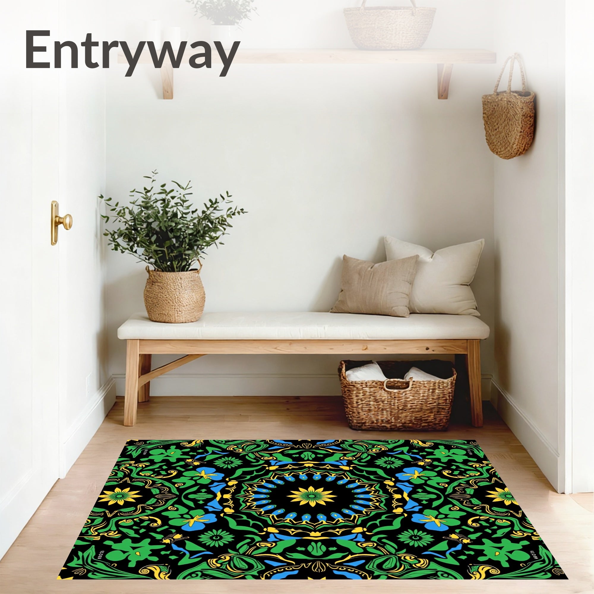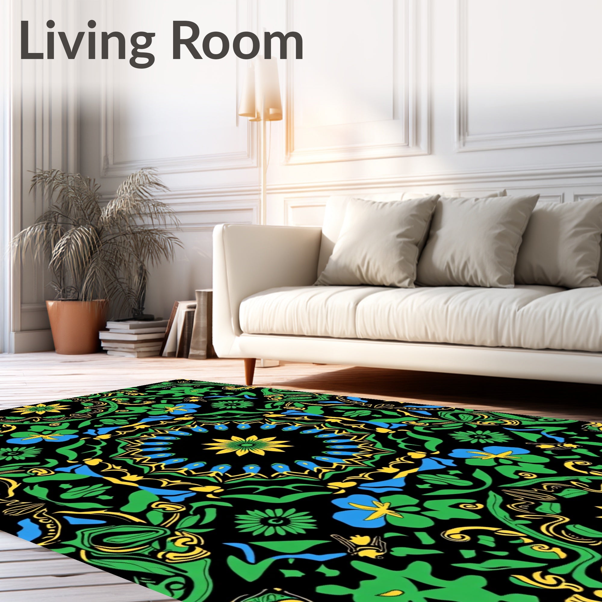 Ultra Soft Area Rug, Non Slip, Stain Resistant, Washable Area Rugs for Living Room, Bedroom, Boho Chic Abstract Floral Motifs with Forest Green and Black Contrast(Black) Overview: