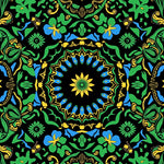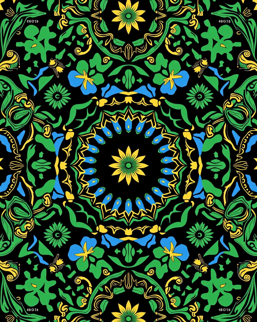 Boho Chic Abstract Floral Motifs with Forest Green and Black Contrast(Black)
