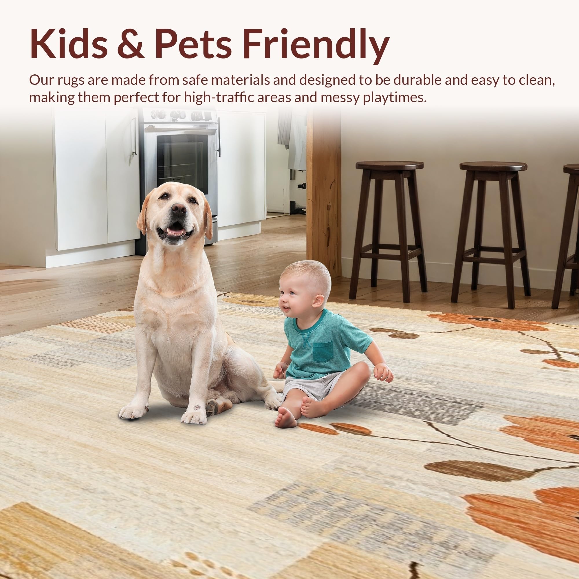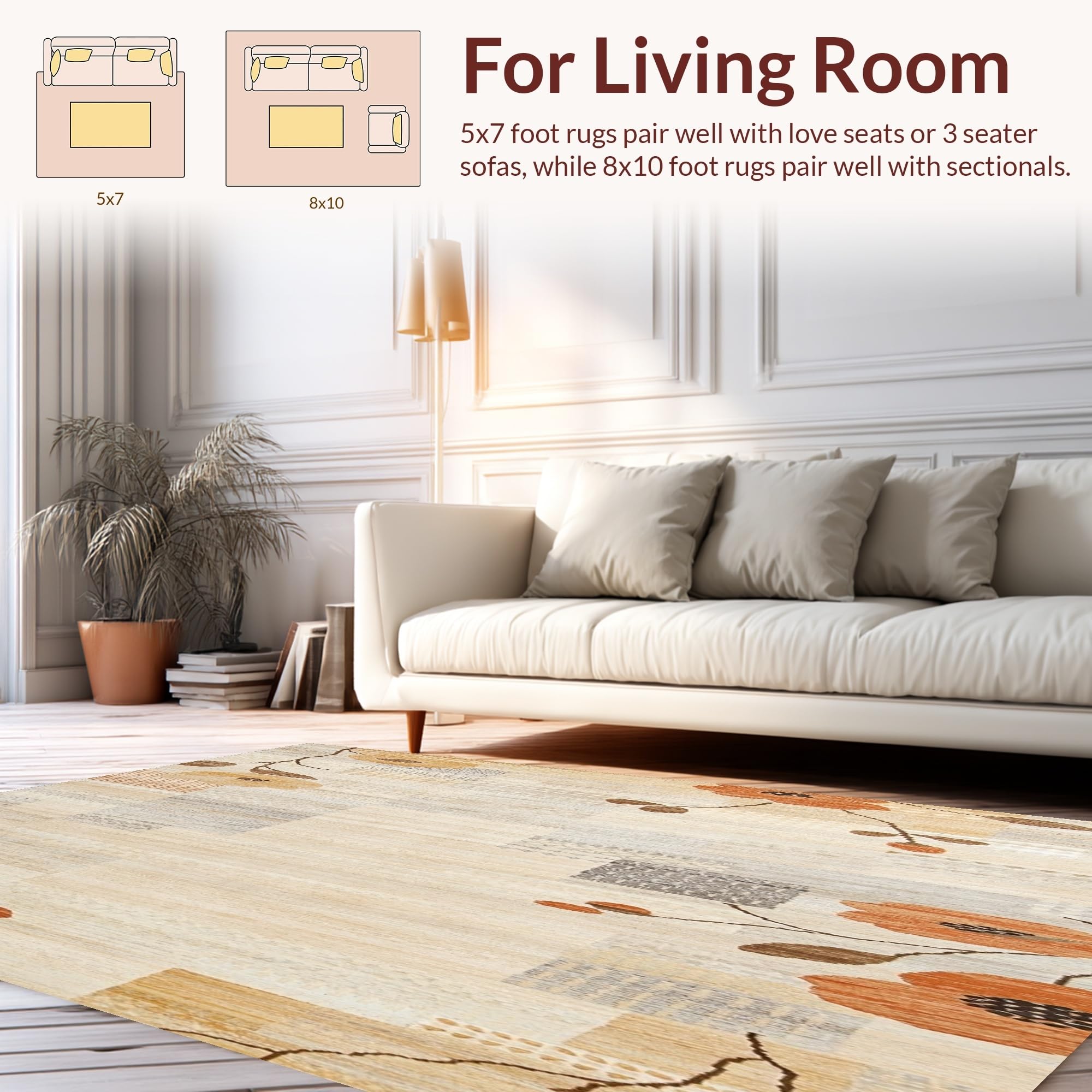 Ultra Soft Area Rug, Non Slip, Stain Resistant, Washable Area Rugs for Living Room, Bedroom, Boho Chic Area Beige and Brown Abstract Floral Modern Geometric Pa(Beige) Overview: