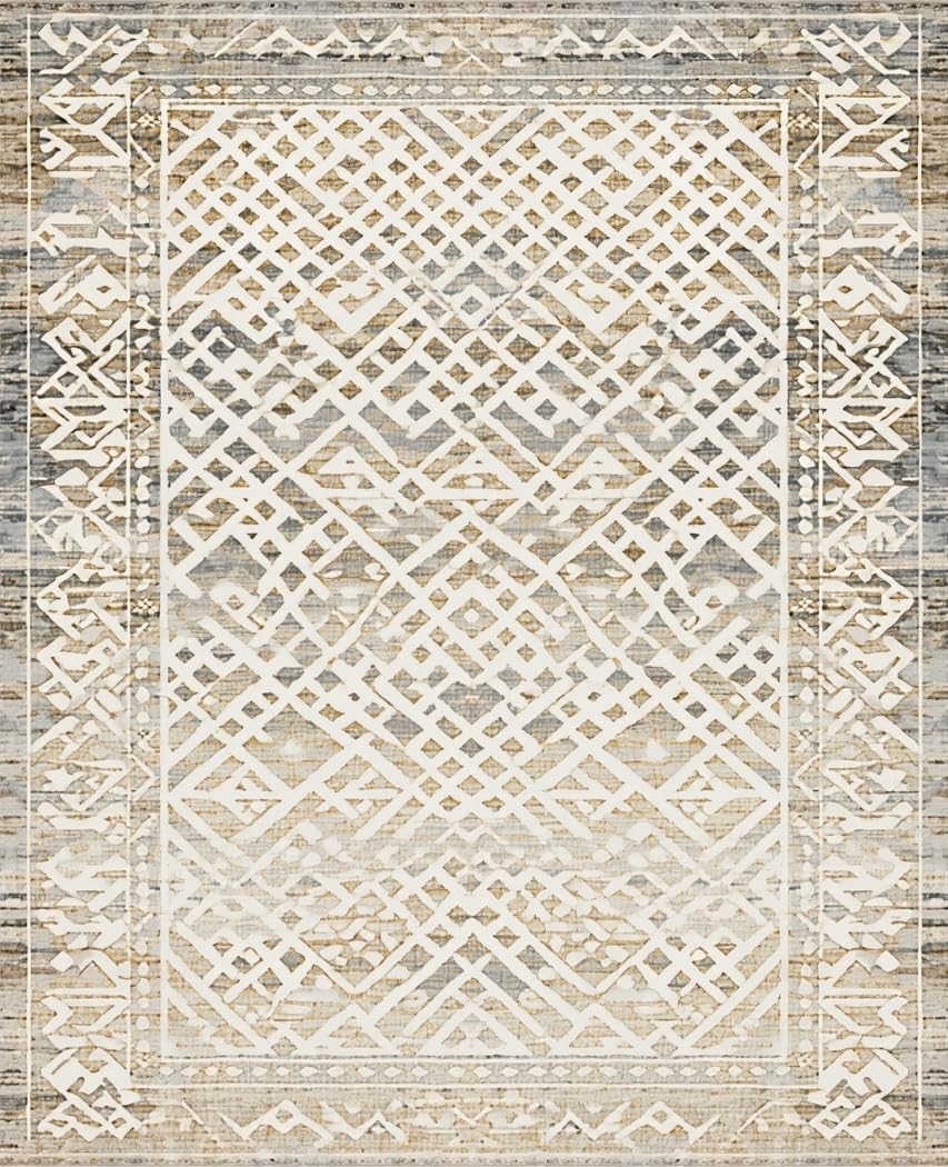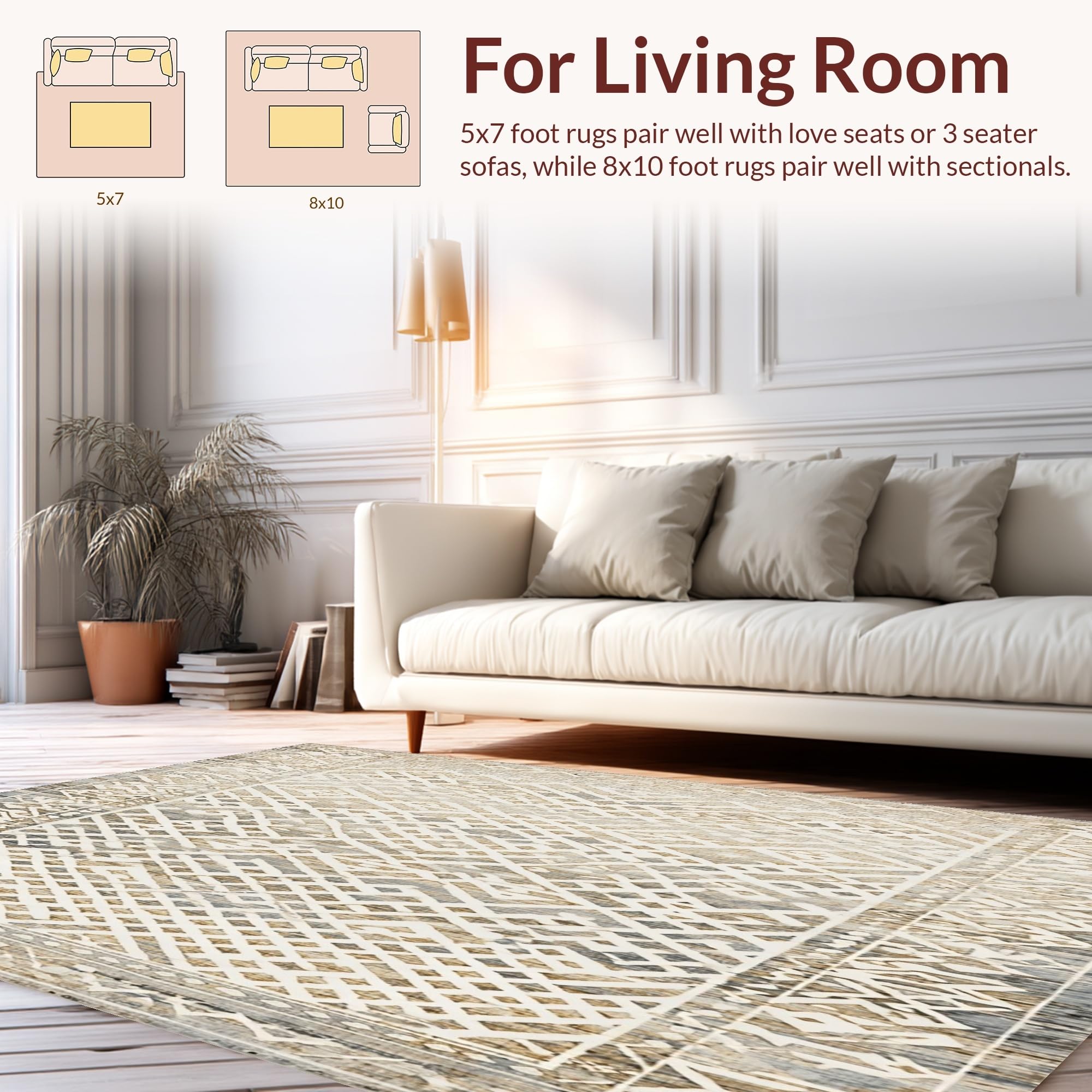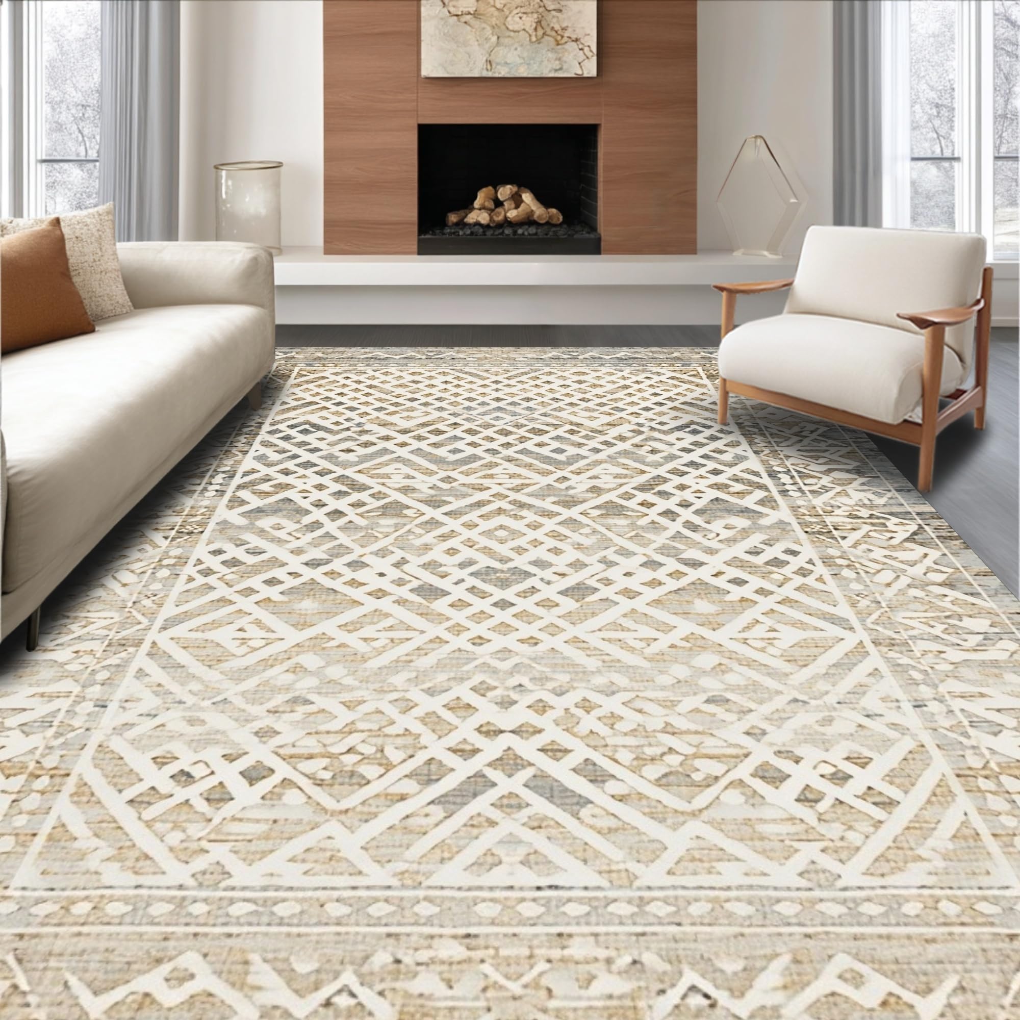 Ultra Soft Area Rug, Non Slip, Stain Resistant, Washable Area Rugs for Living Room, Bedroom, Boho Chic Area Featuring Abstract Diamond Lattice and Faded Tribal(Beige) Overview: