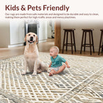 - Soft and Fluffy Comfort: This low pile rug is made from a faux cashmere texture, offering a smooth, soft touch that elevates any room. Ideal for areas where comfort matters without compromising on easy maintenance.