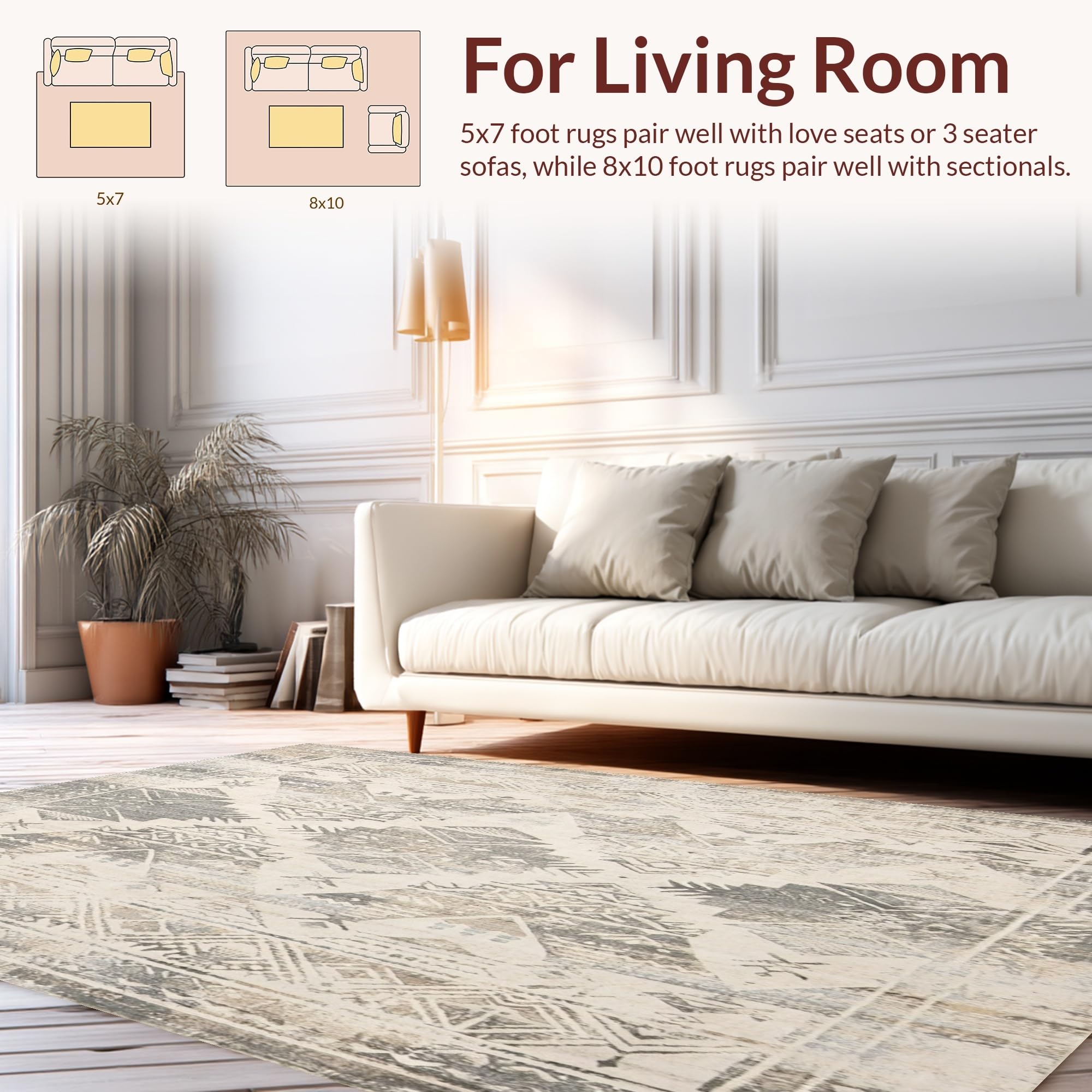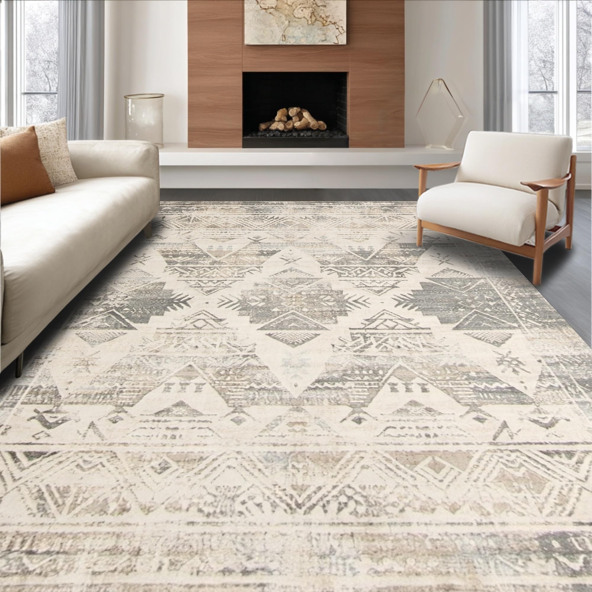 Ultra Soft Area Rug, Non Slip, Stain Resistant, Washable Area Rugs for Living Room, Bedroom, Boho Chic Area Non Slip Distressed Look Beige(Gray) Overview: